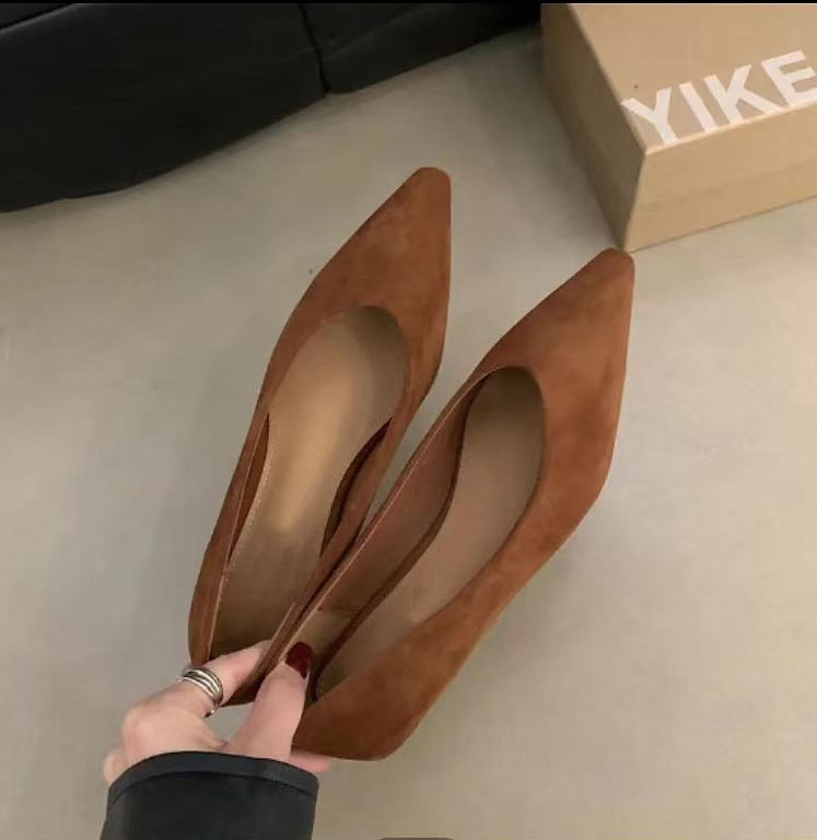 2025년 신상 여성용 슬립온 슈즈, 다재다능한 봄 여름 스퀘어 토 브라운 통기성 키튼 힐, 여성용 로우힐, 고급형스토어 가기