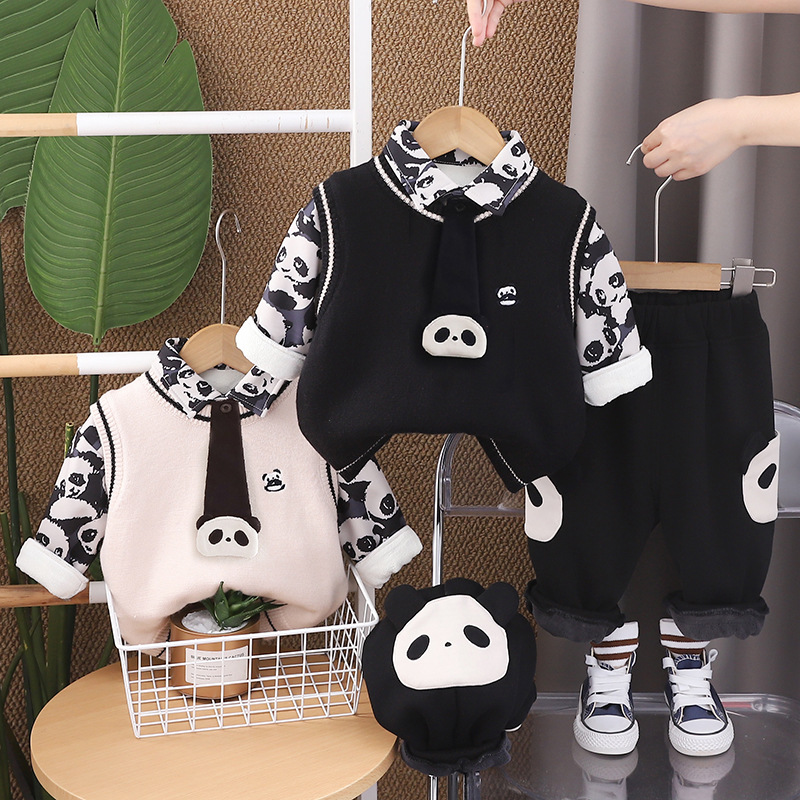 남학생 겨울복 기모 아카데미 스타일 세트 2024 잘 생긴 어린이 아기의 가을과 겨울 니트 조끼 3 조각 유행 세트스토어 가기