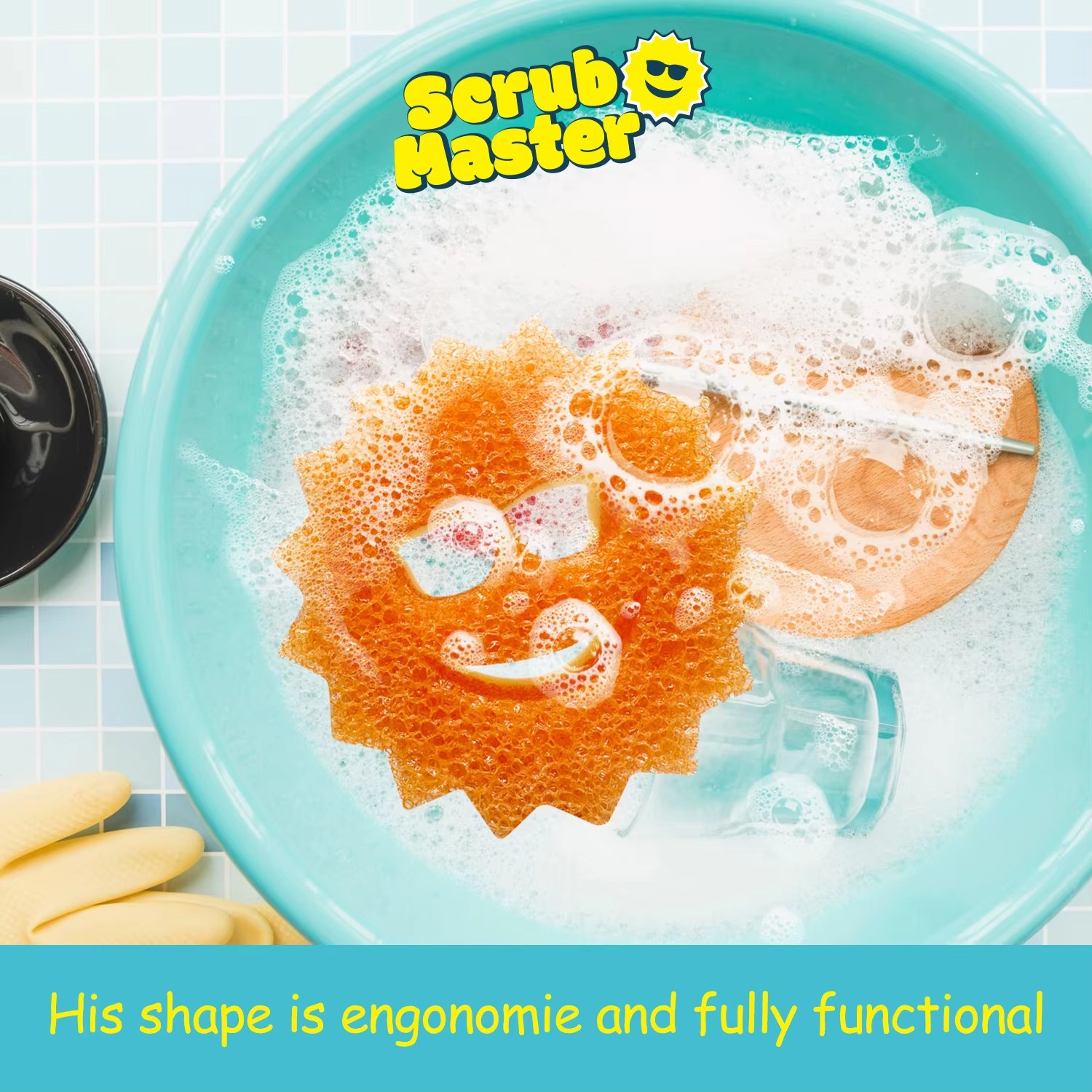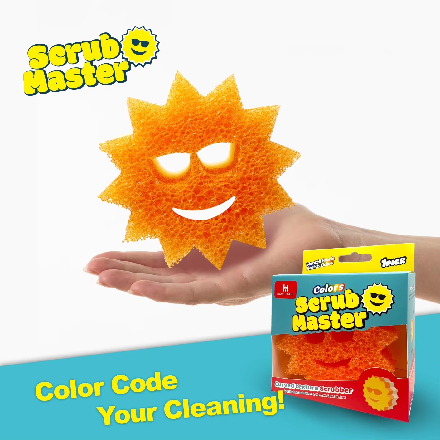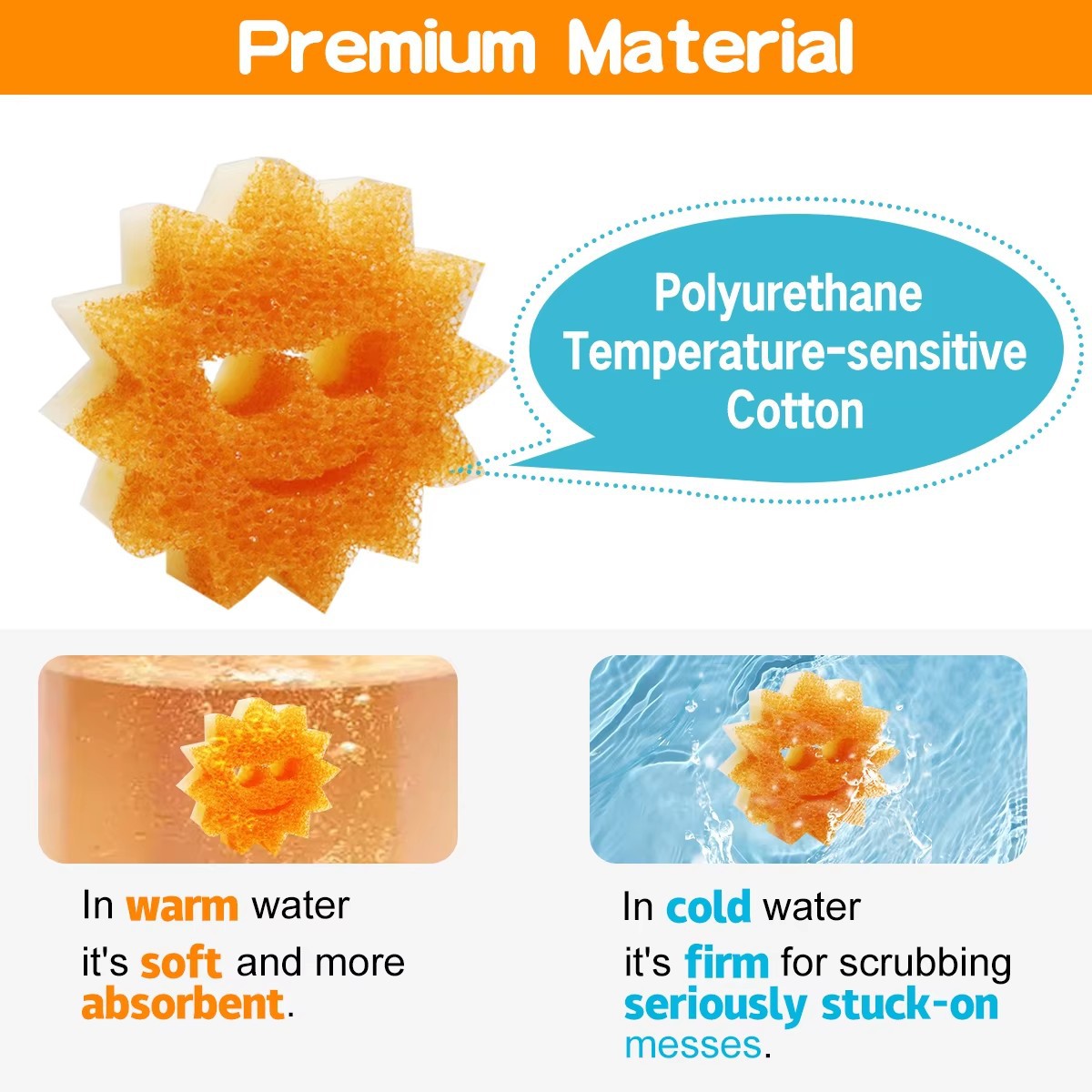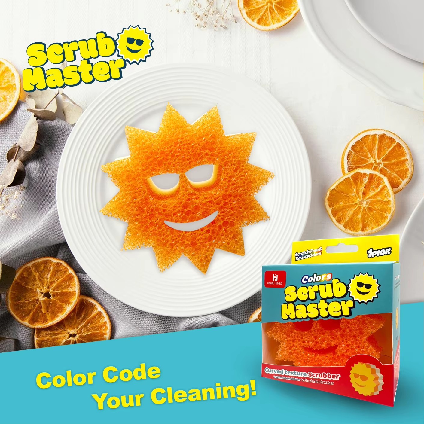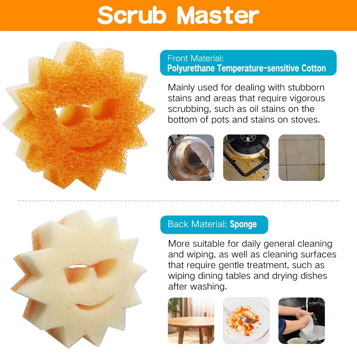 HOMETIMES 주방 식기 세척 스펀지, 반투명 웃는 얼굴 스펀지, 가정용 긁힘 방지 국경 간스토어 가기