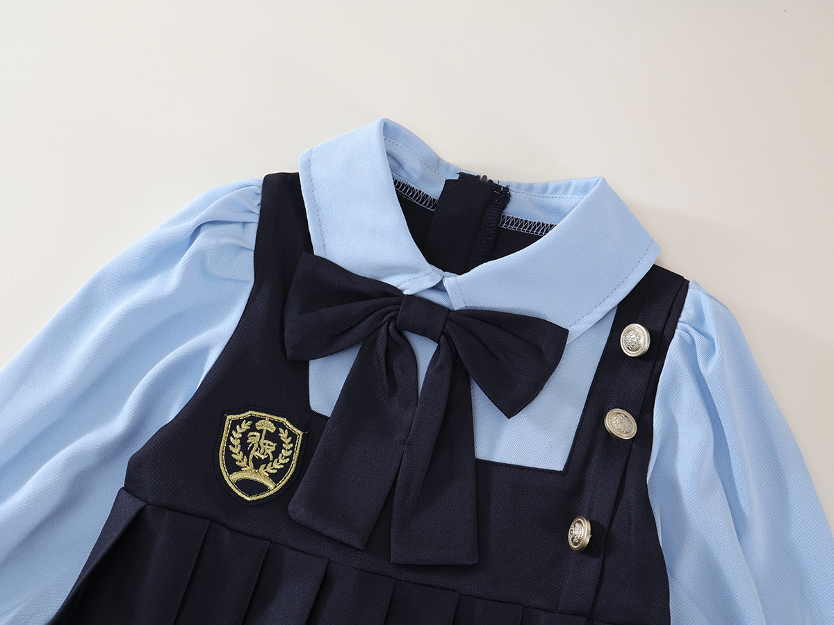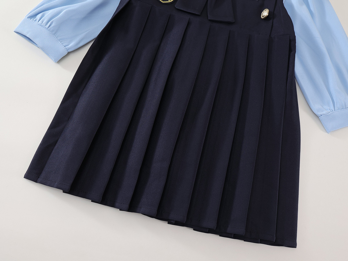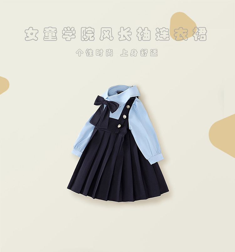 여아용 컬리지 스타일 투피스 긴팔 원피스 2025 가을 신상 아동용 한국 스타일 리본 주름 원피스 11