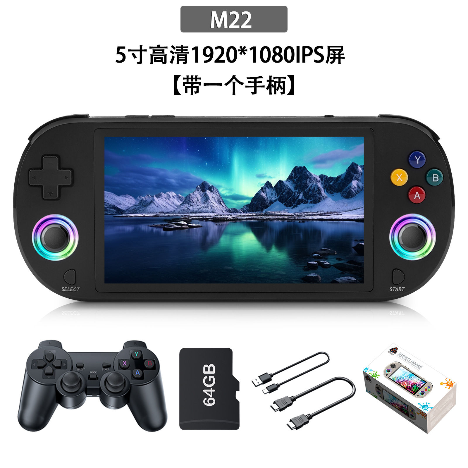국경 간 M22pro 휴대용 게임 콘솔 5inch 휴대용 레트로 PSP 아케이드 HD TV 게임 핸들 1 배치