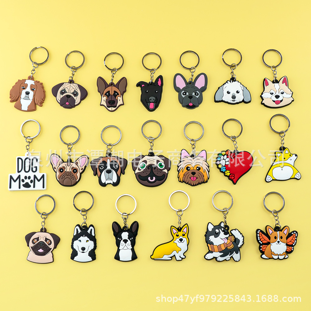 국경을 넘어 인기 있는 PVC 소프트 키체인 만화 강아지 스타일 키링 자동차 키홀더 장식품
