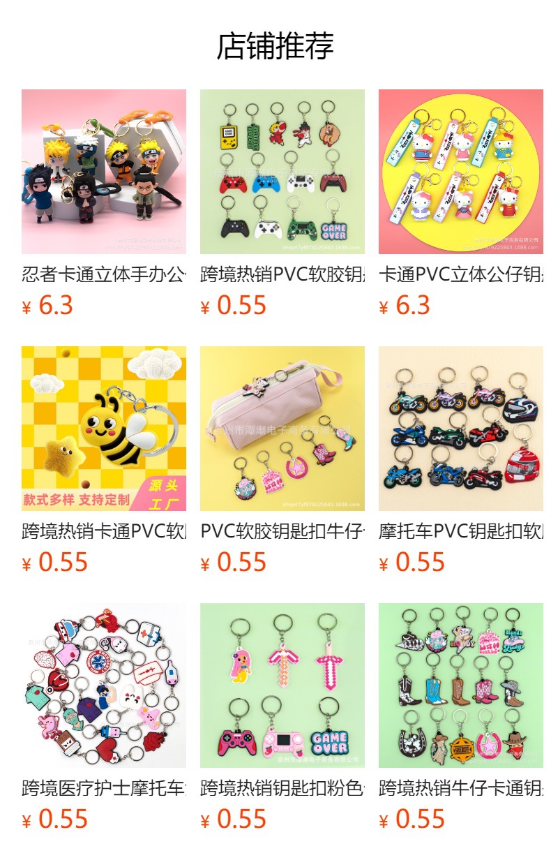 국경을 넘어 인기 있는 PVC 소프트 키체인 만화 강아지 스타일 키링 자동차 키홀더 장식품스토어 가기