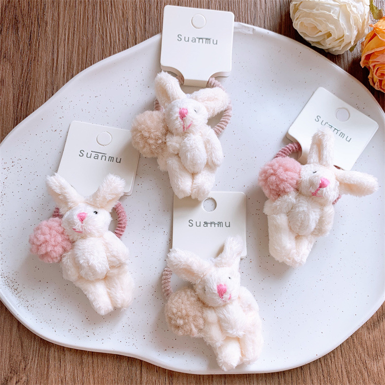 새로운 어린이 귀여운 봉제 토끼 머리 반지 달콤한 소녀 머리 공 만화 머리 밧줄 넥타이 머리 고무 텐트 머리 밧줄스토어 가기