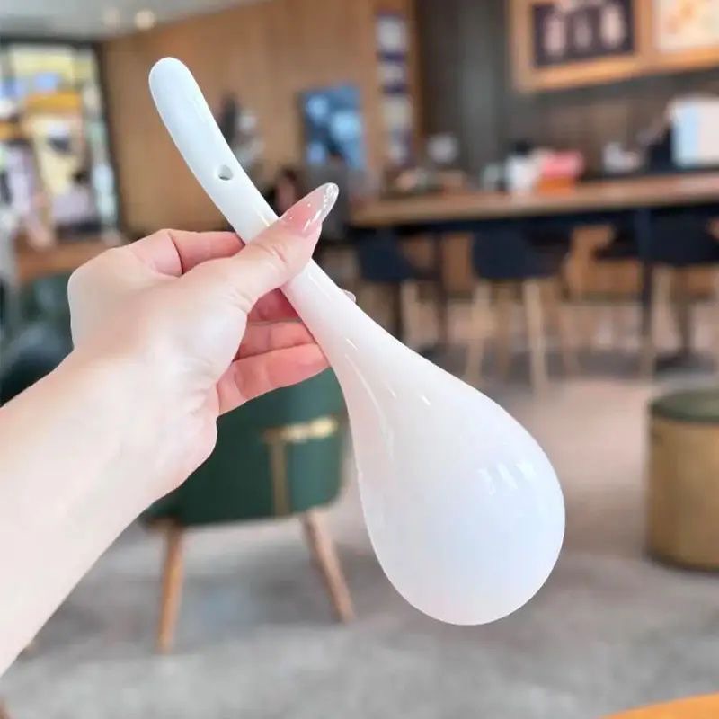 세라믹 큰 수프 스푼 가정용 수프 스푼 큰 음료 수프 스푼 순수한 흰색 긴 손잡이 숟가락 죽 숟가락스토어 가기
