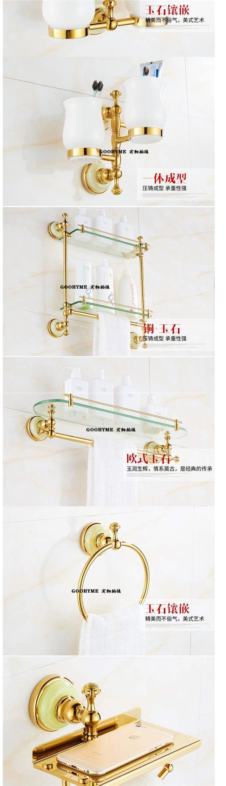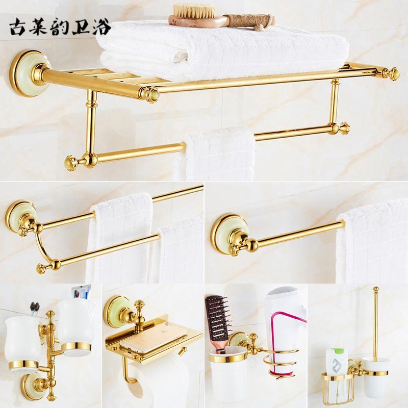 유럽 스타일 모든 구리 목욕 타월 랙 화장실 걸이 세트 욕실 저장 랙 욕실 하드웨어 옥 황금 수건 랙
