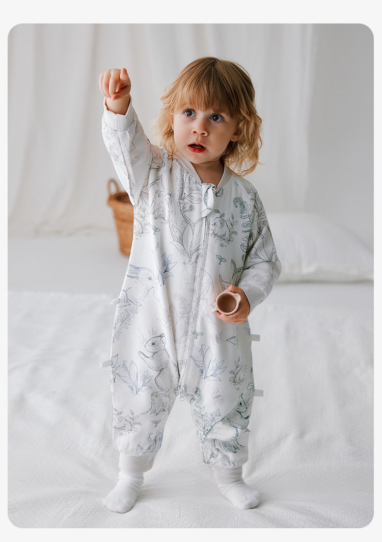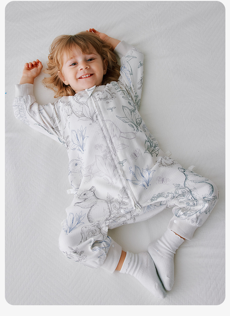 Muaqiaqia 소년과 소녀 슬리핑 백 아기 킥 방지 퀼트 대나무 코튼 거즈 가을 어린이 다리 분할 슬리핑 백 4YXS077