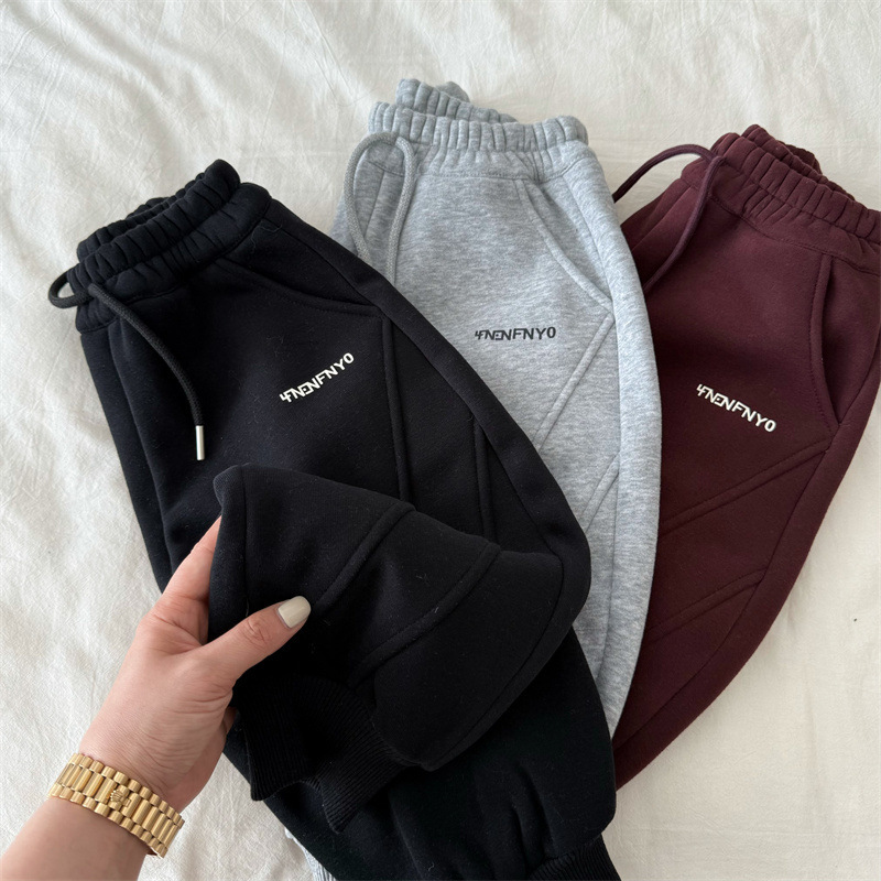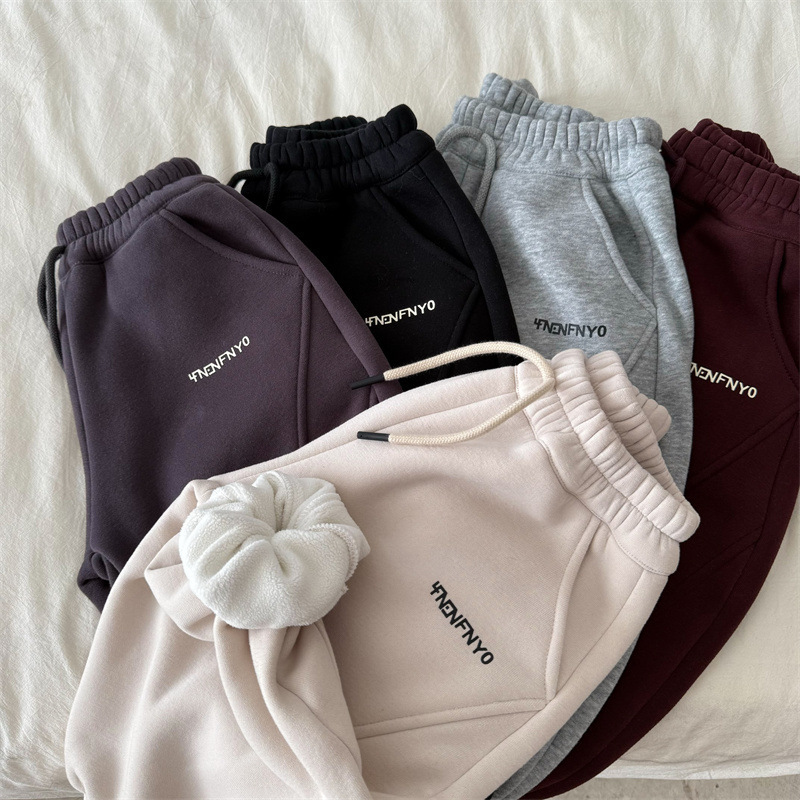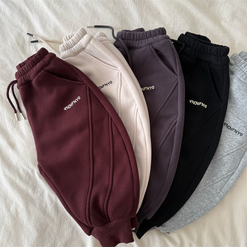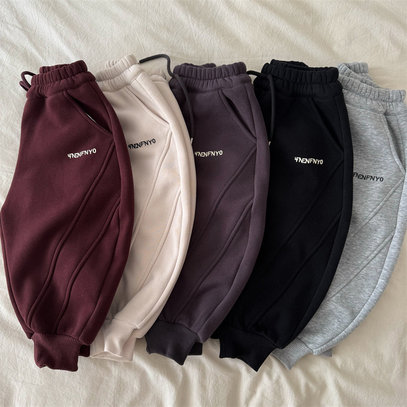 어린이 바지 2024 겨울 새 소년 소녀 편지 단색 기모 캐주얼 바지 아기의 원피스 벨벳 땀 바지스토어 가기