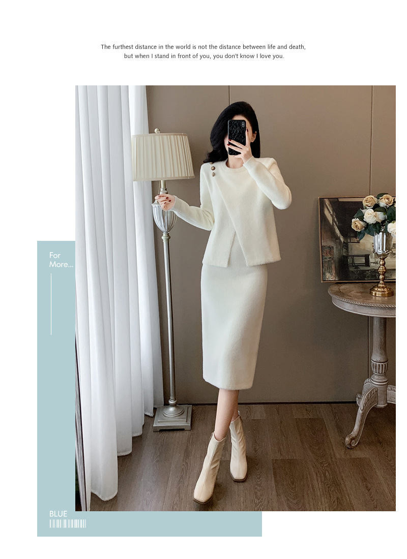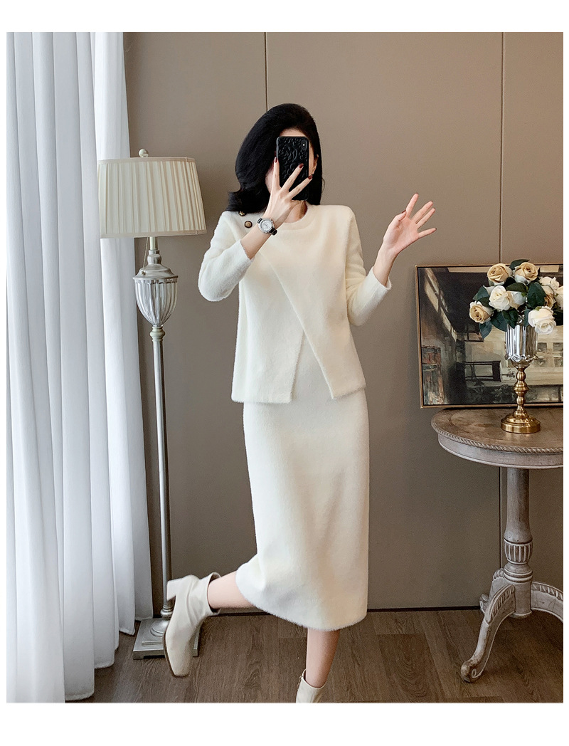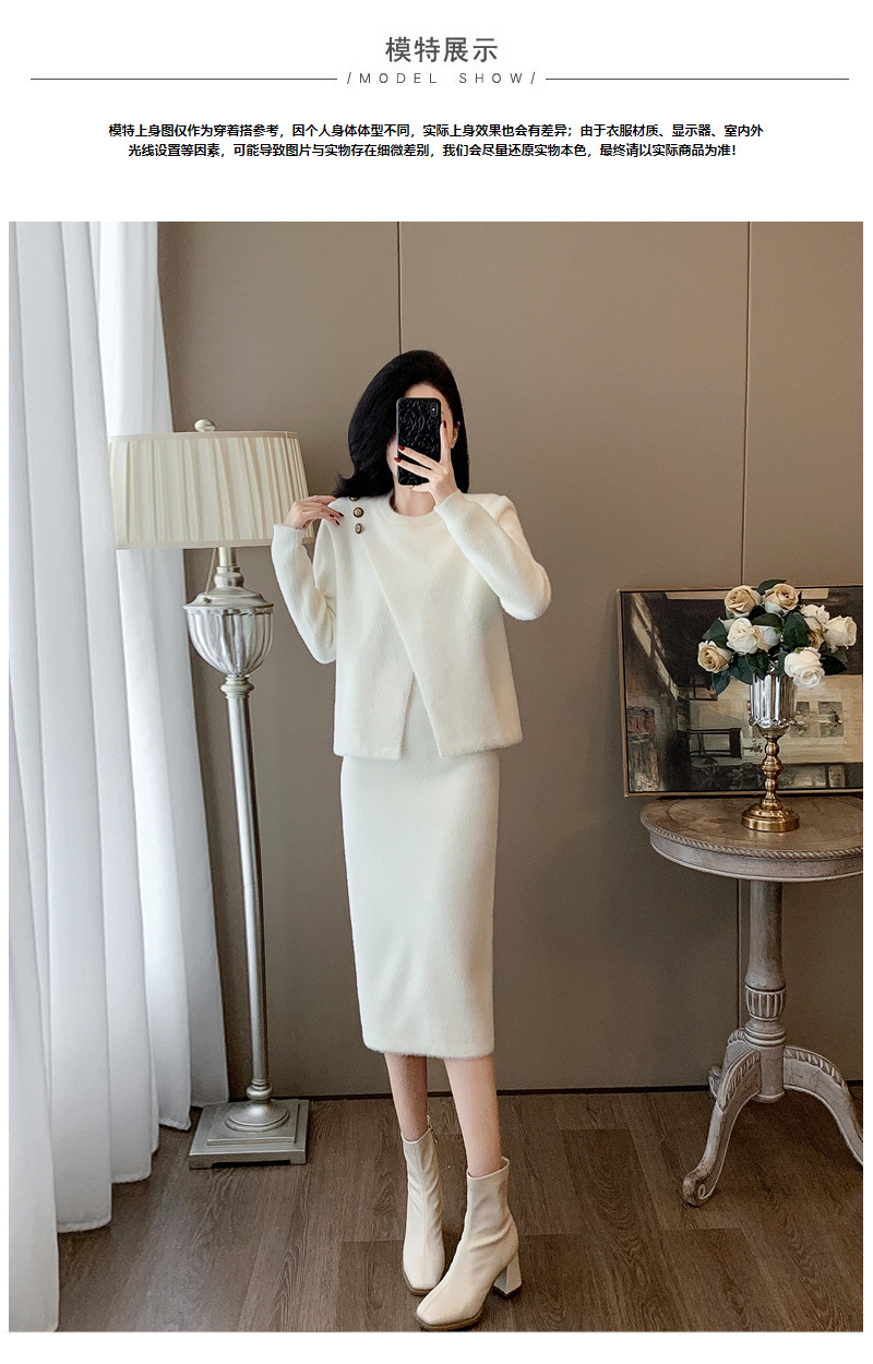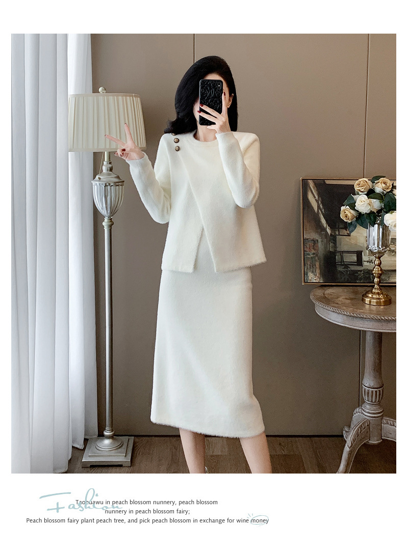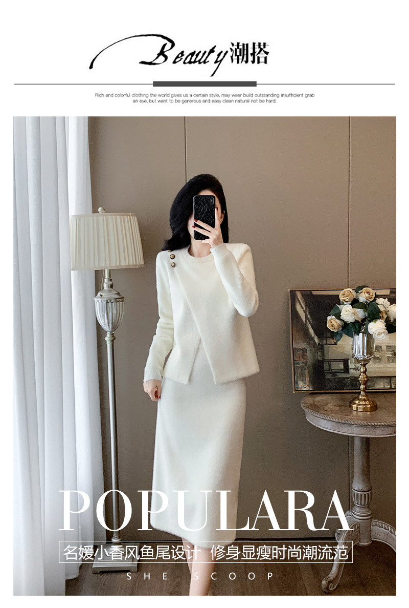 우아한 사교계 샤넬 스타일 패션 캐주얼 세트 여성 가을 모조 밍크 탑 힙합 스커트 니트 투피스 원피스스토어 가기