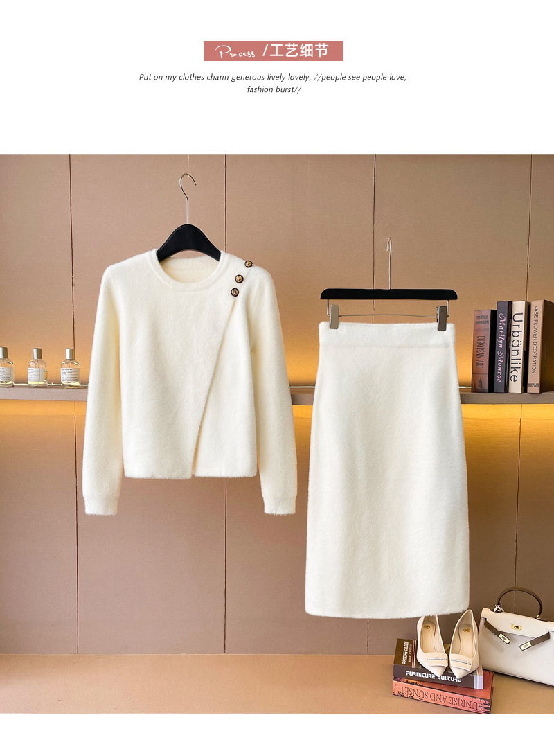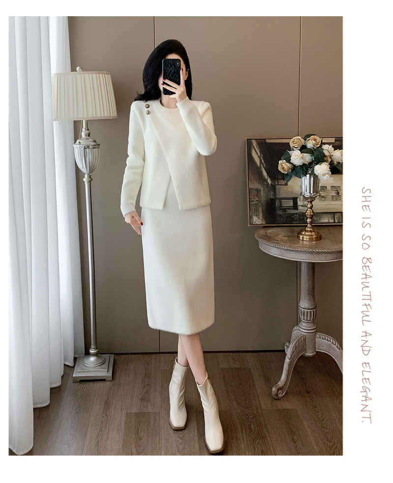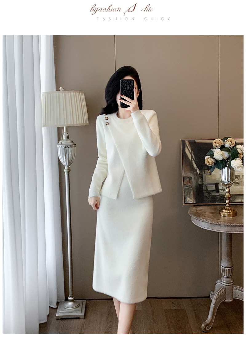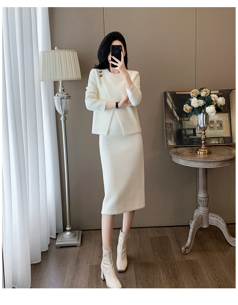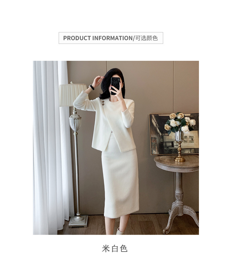우아한 사교계 샤넬 스타일 패션 캐주얼 세트 여성 가을 모조 밍크 탑 힙합 스커트 니트 투피스 원피스스토어 가기
