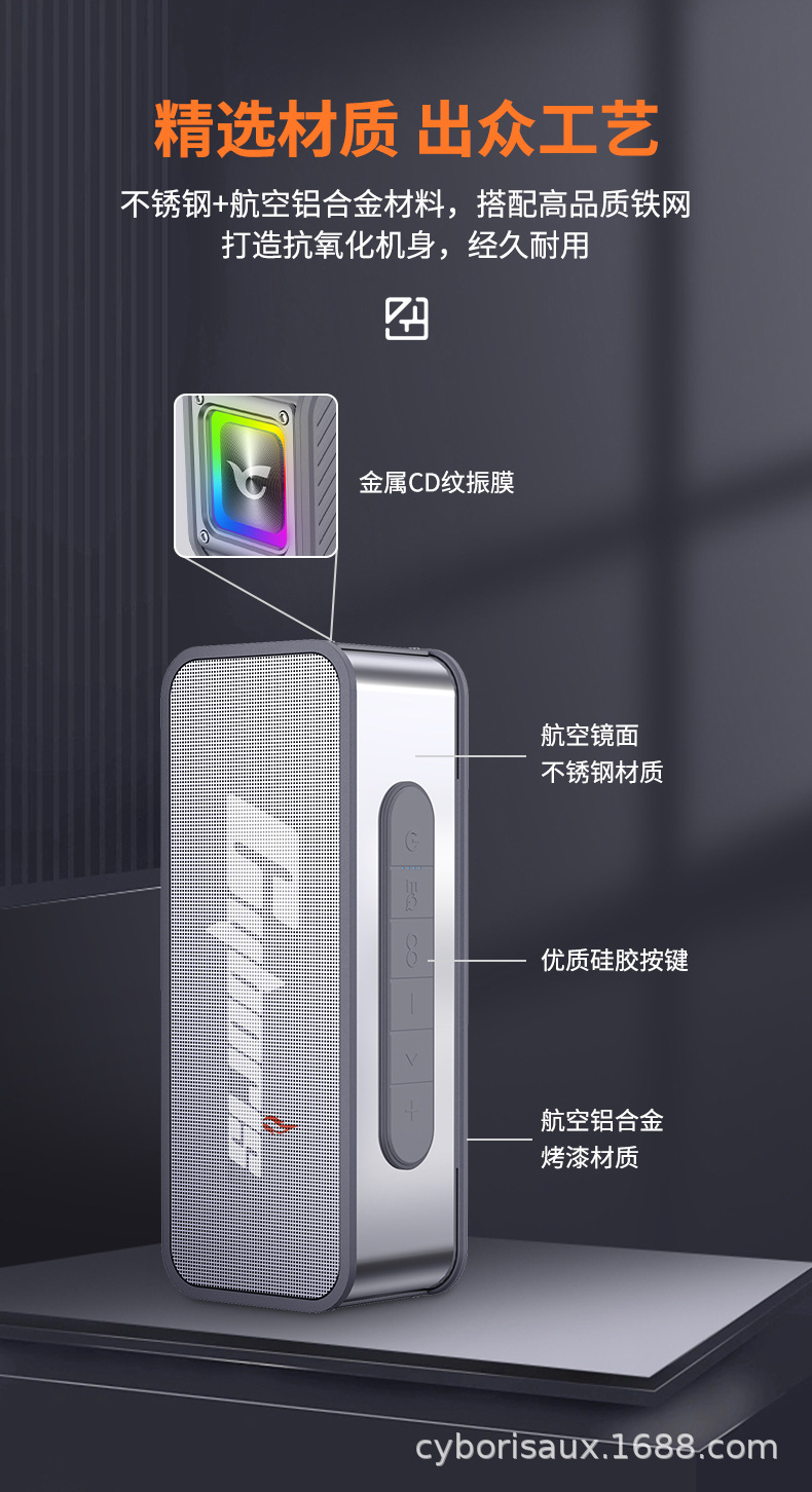하이 엔드 데스크탑 야외 블루투스 스피커 서브 우퍼 스테인레스 스틸 바디 무선 홈 오디오 카드 USB 재생