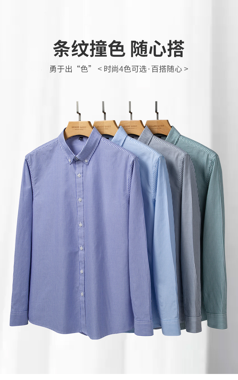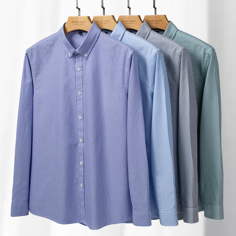 도매 사계절 100 면 긴 소매 셔츠 남자의 줄무늬 가을 사업 원피스 하이 엔드 센스 셔츠 남성복