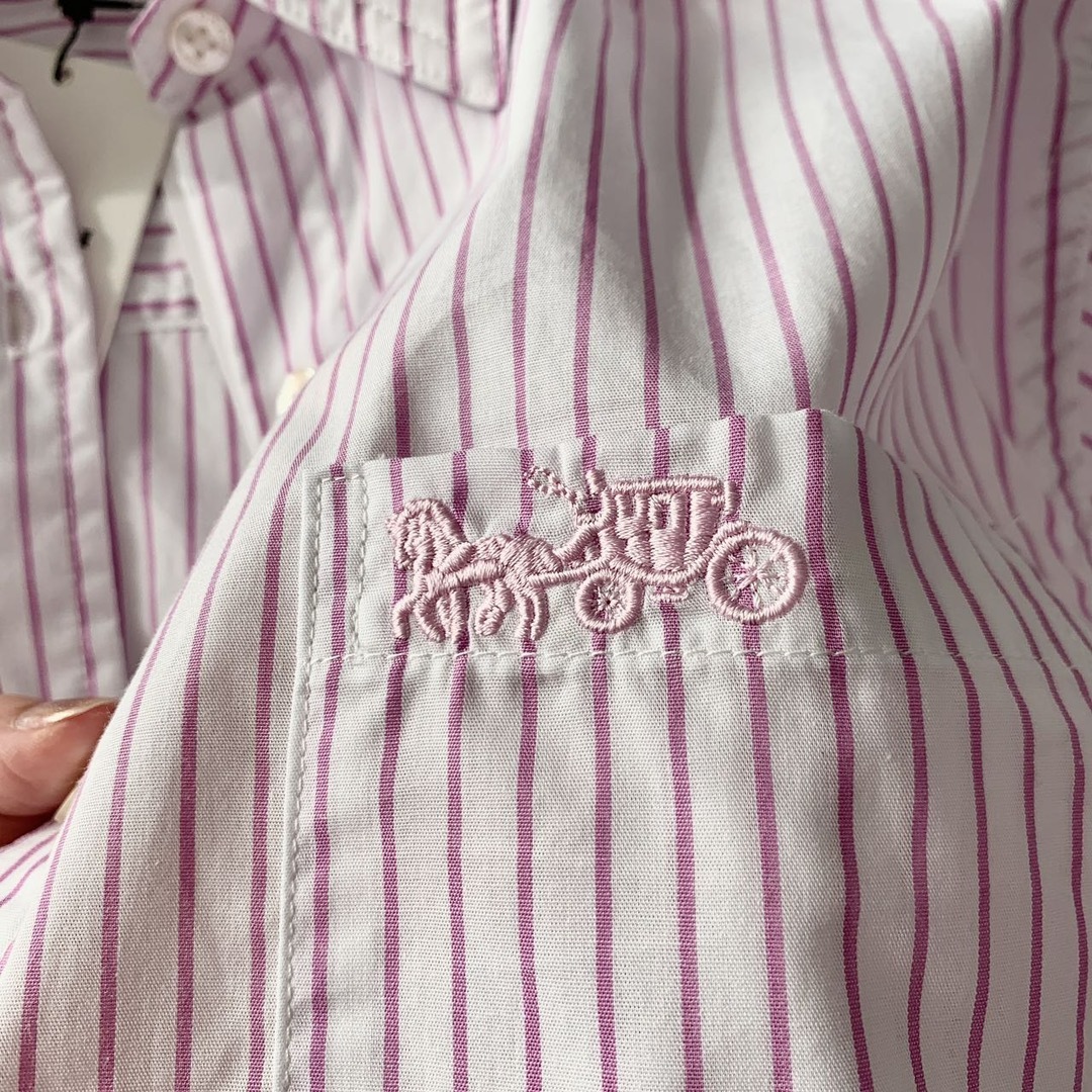 1027ch Kojia 봄과 가을 새로운 자수 라벨 핑크 줄무늬 느슨한 슬리밍 올 매치 여자 셔츠 반바지 세트스토어 가기