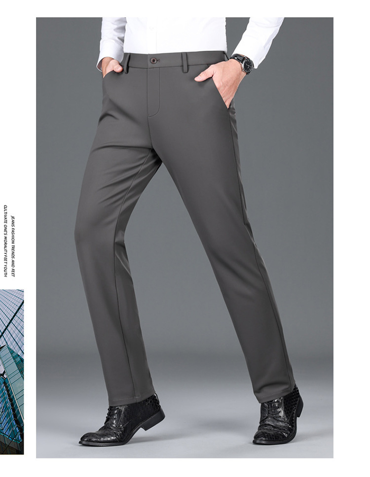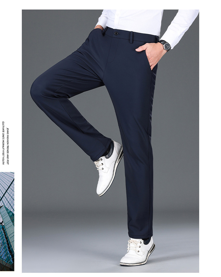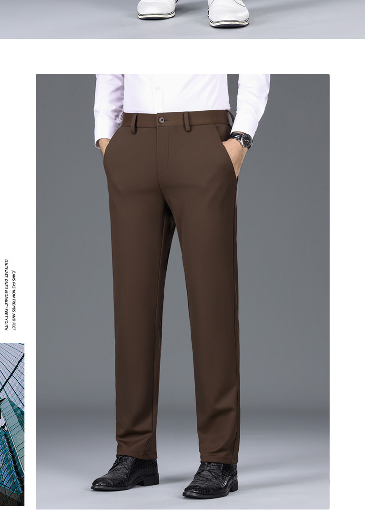 跨境商务休闲裤男春秋季新款纯色中腰长裤中年直筒弹力抗皱西裤潮