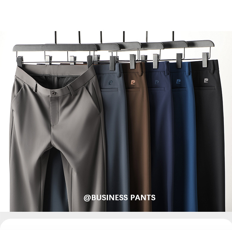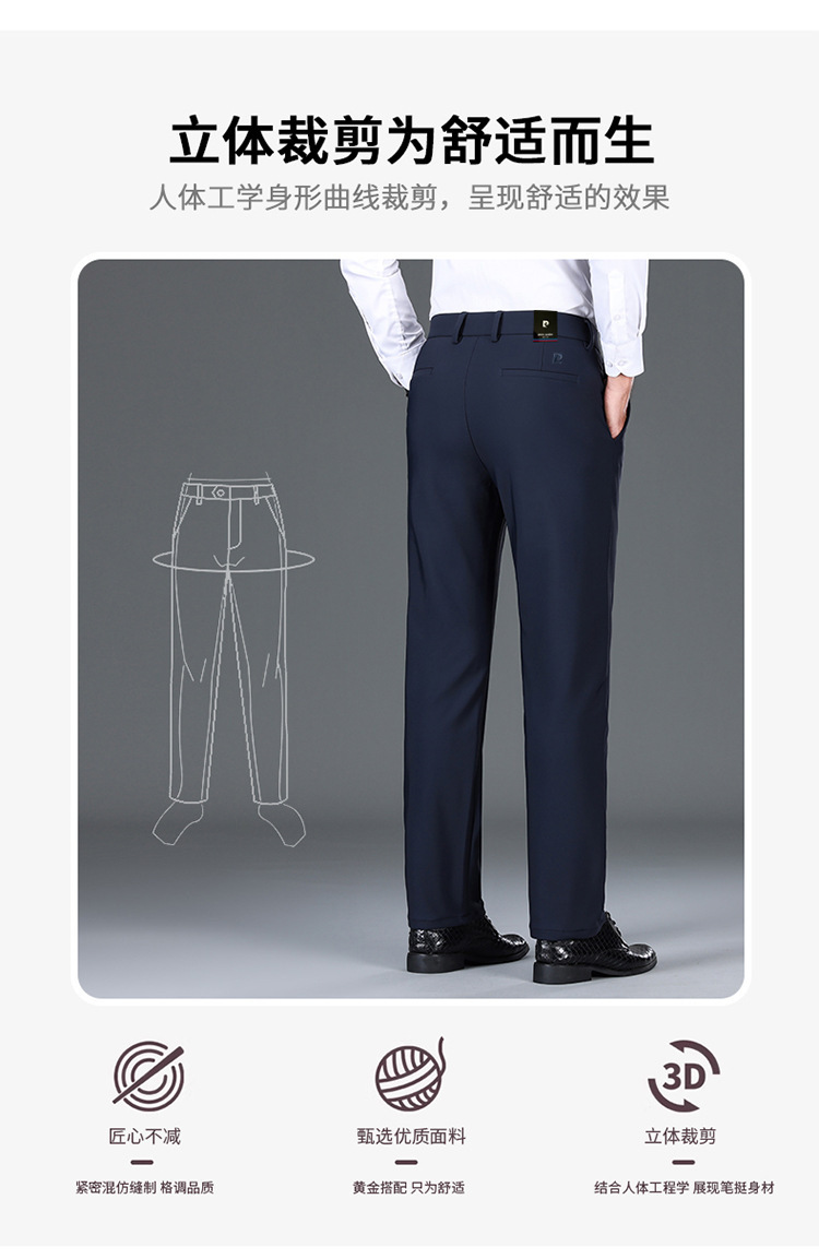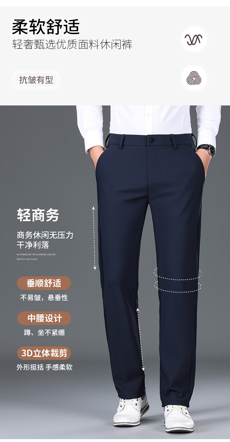 국경 간 비즈니스 캐주얼 바지 남자의 봄과 가을 새로운 단색 중간 허리 바지 중년 스트레이트 스트레치 주름 방지 트렌디 바지스토어 가기