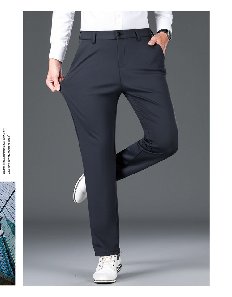 국경 간 비즈니스 캐주얼 바지 남자의 봄과 가을 새로운 단색 중간 허리 바지 중년 스트레이트 스트레치 주름 방지 트렌디 바지