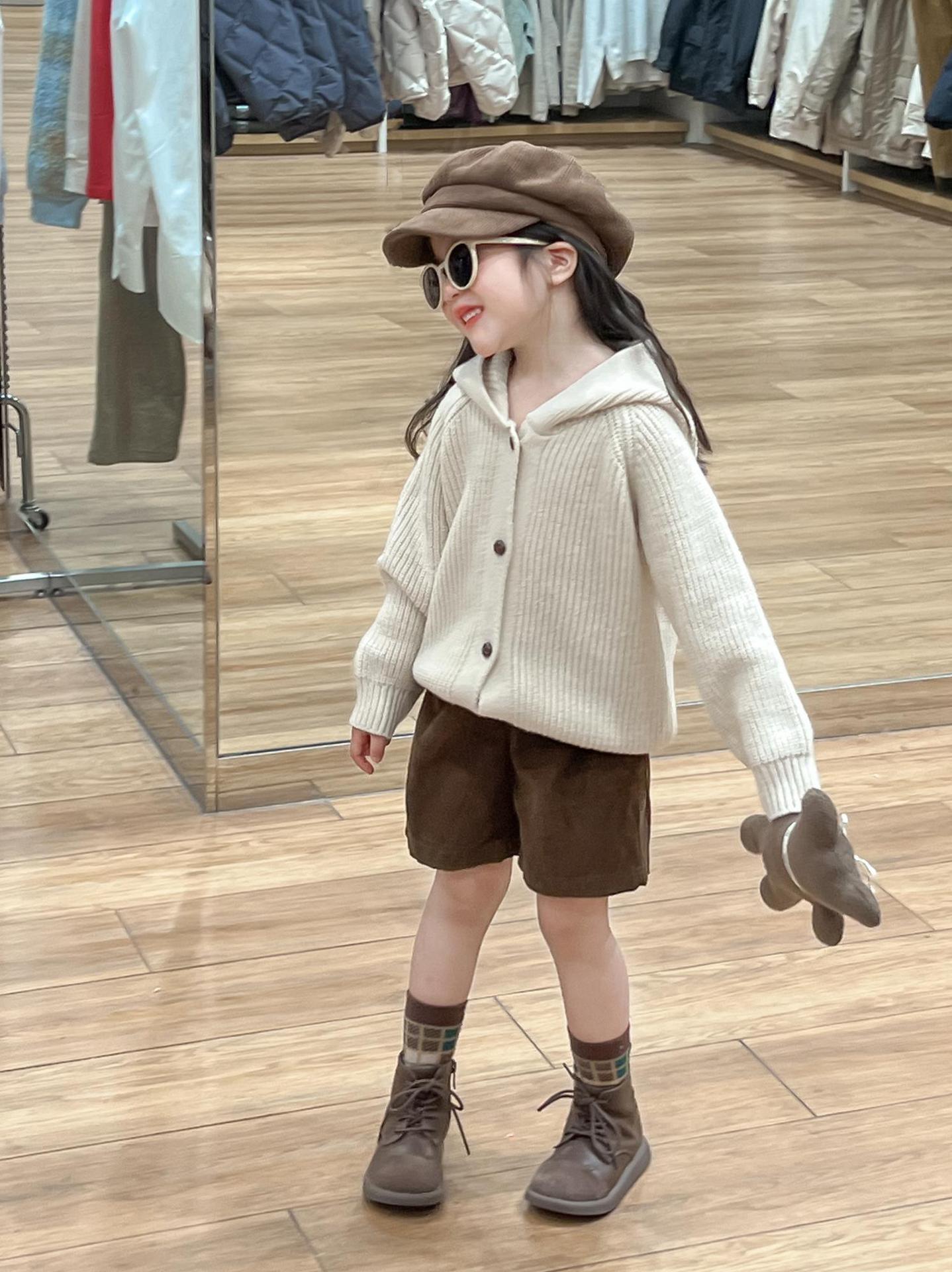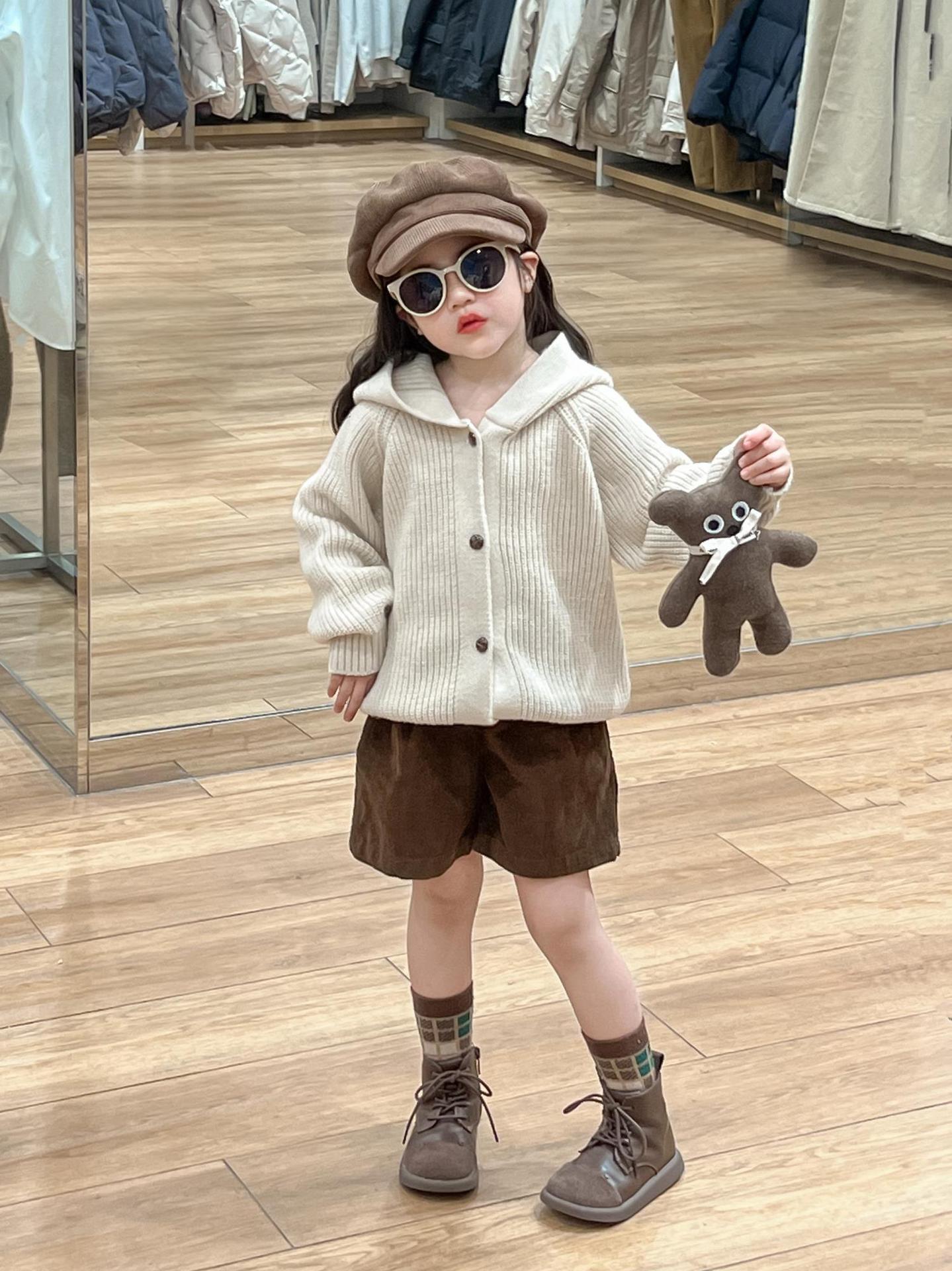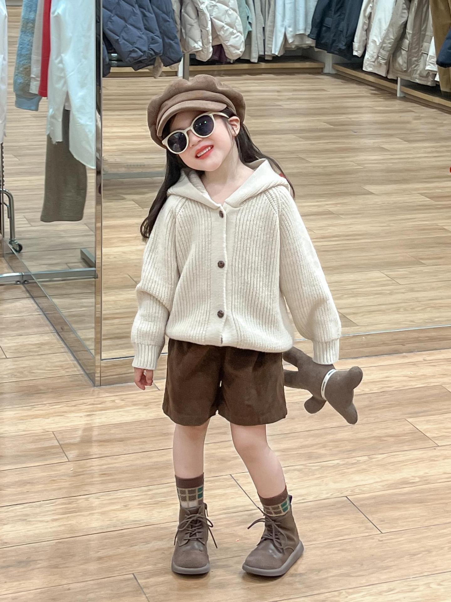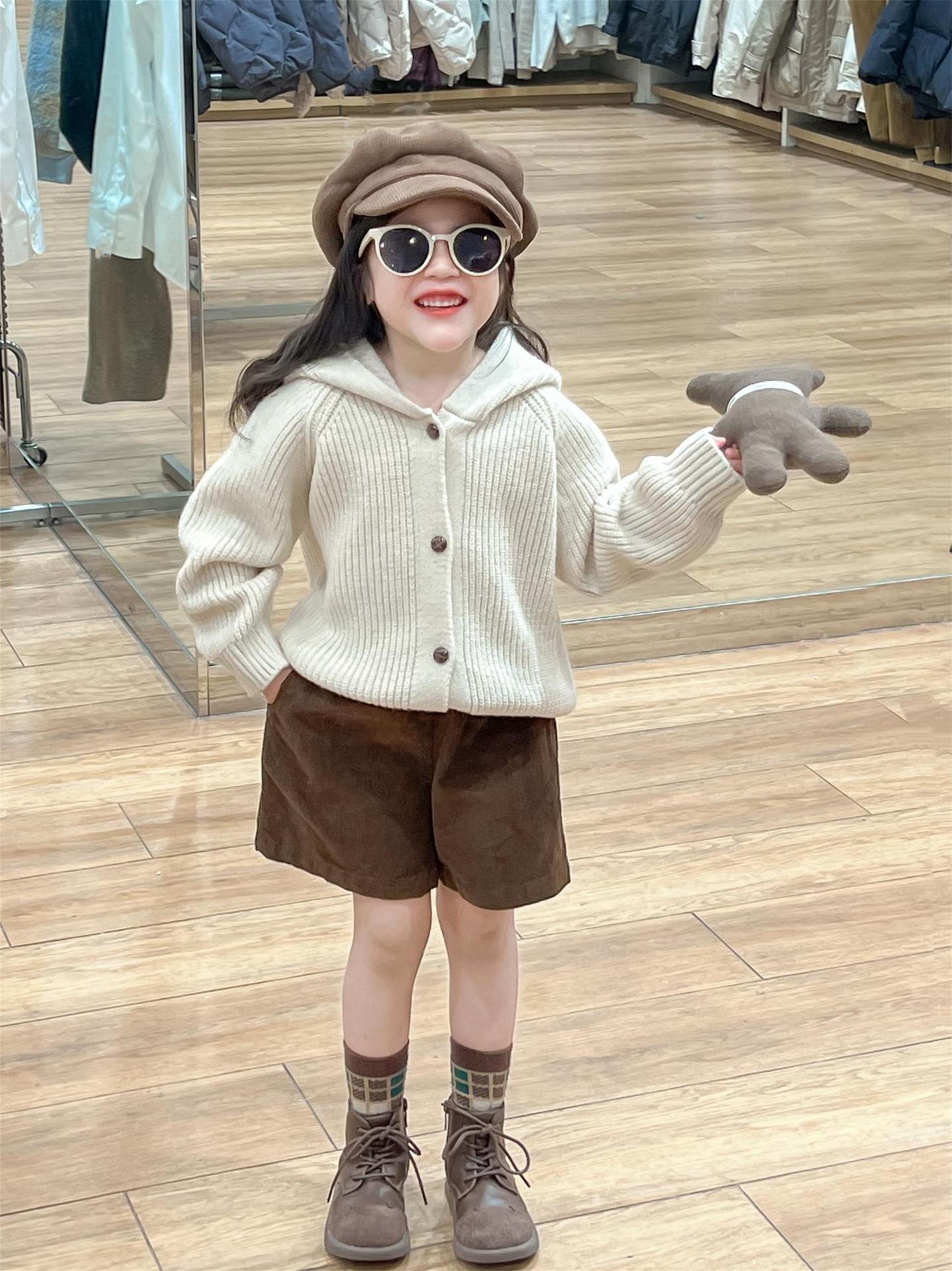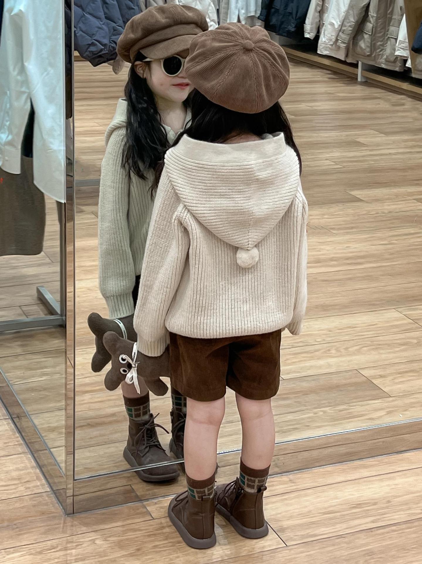 아기 소녀의 스웨터 카디건 2024 소녀의 가을과 겨울 솔리드 컬러 올 매치 후드 모피 볼 싱글 브레스트 니트 자켓스토어 가기