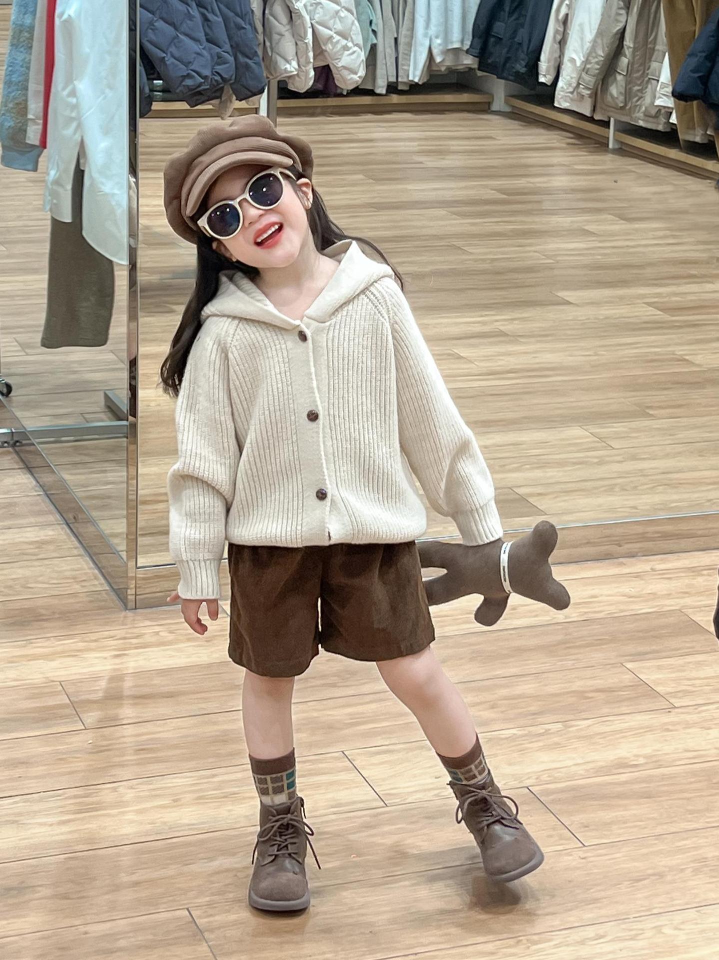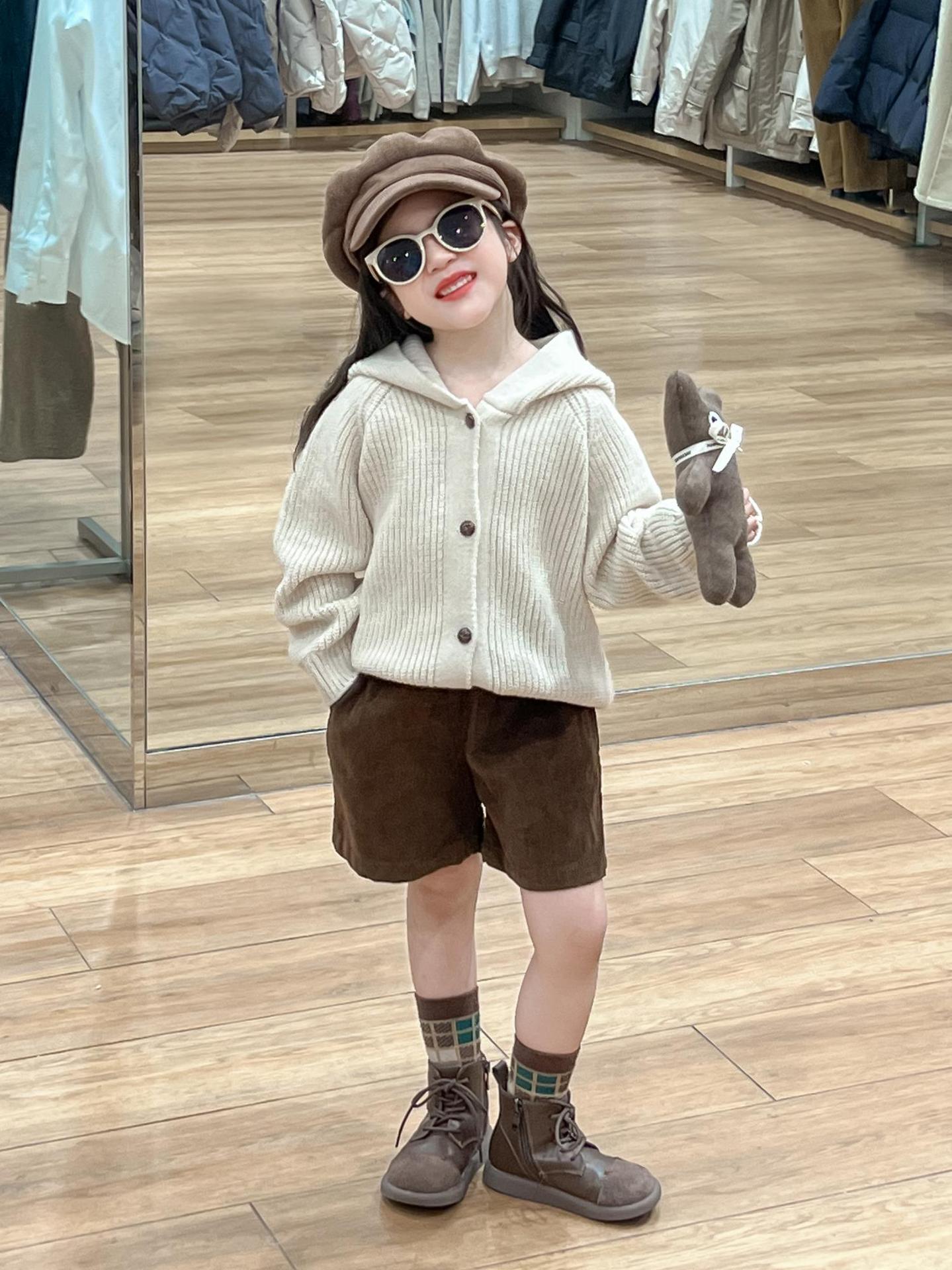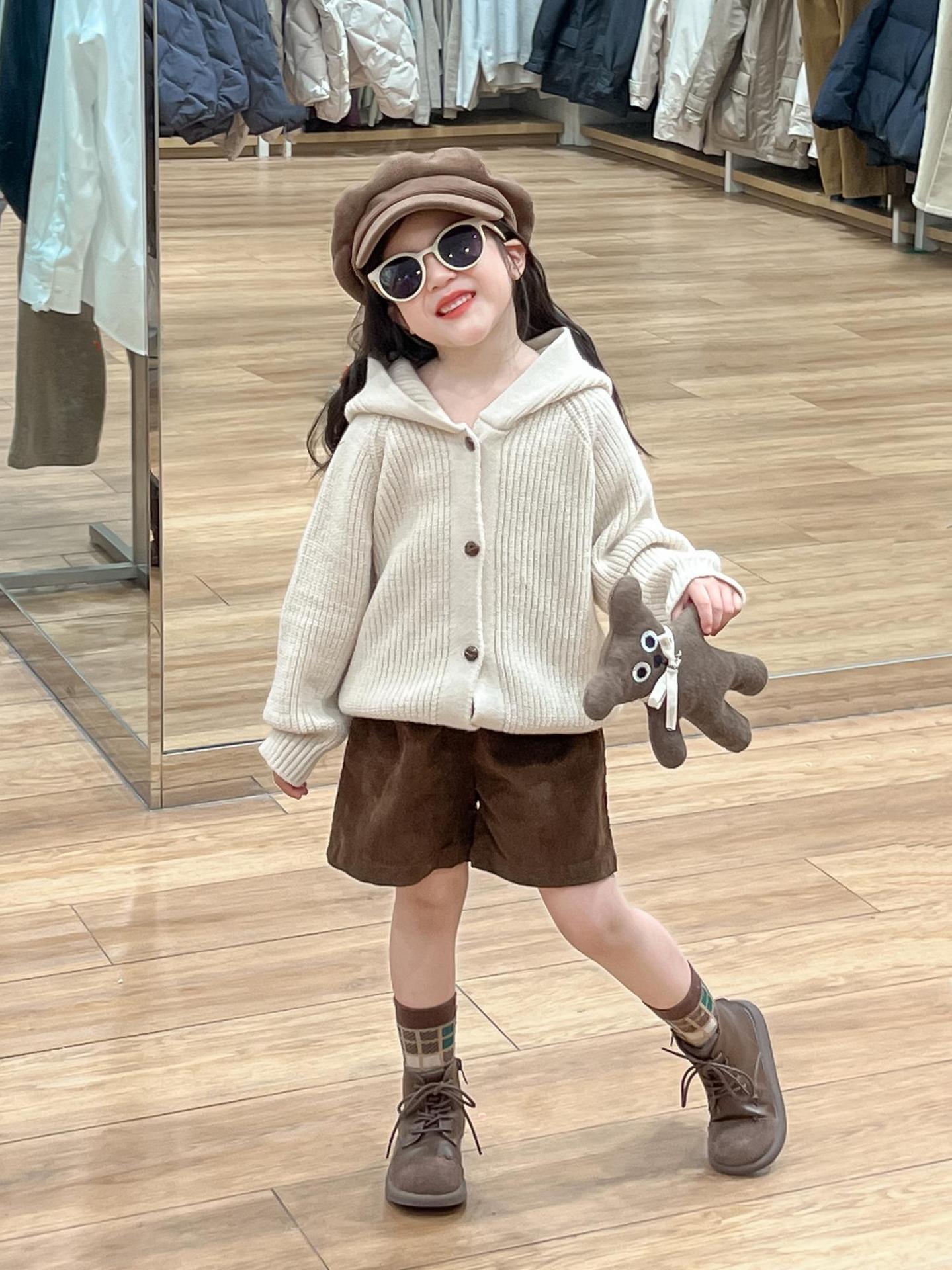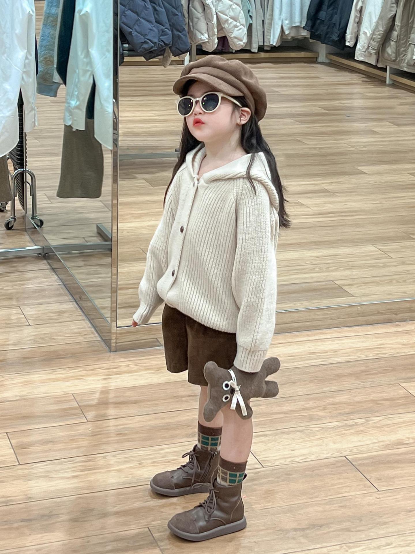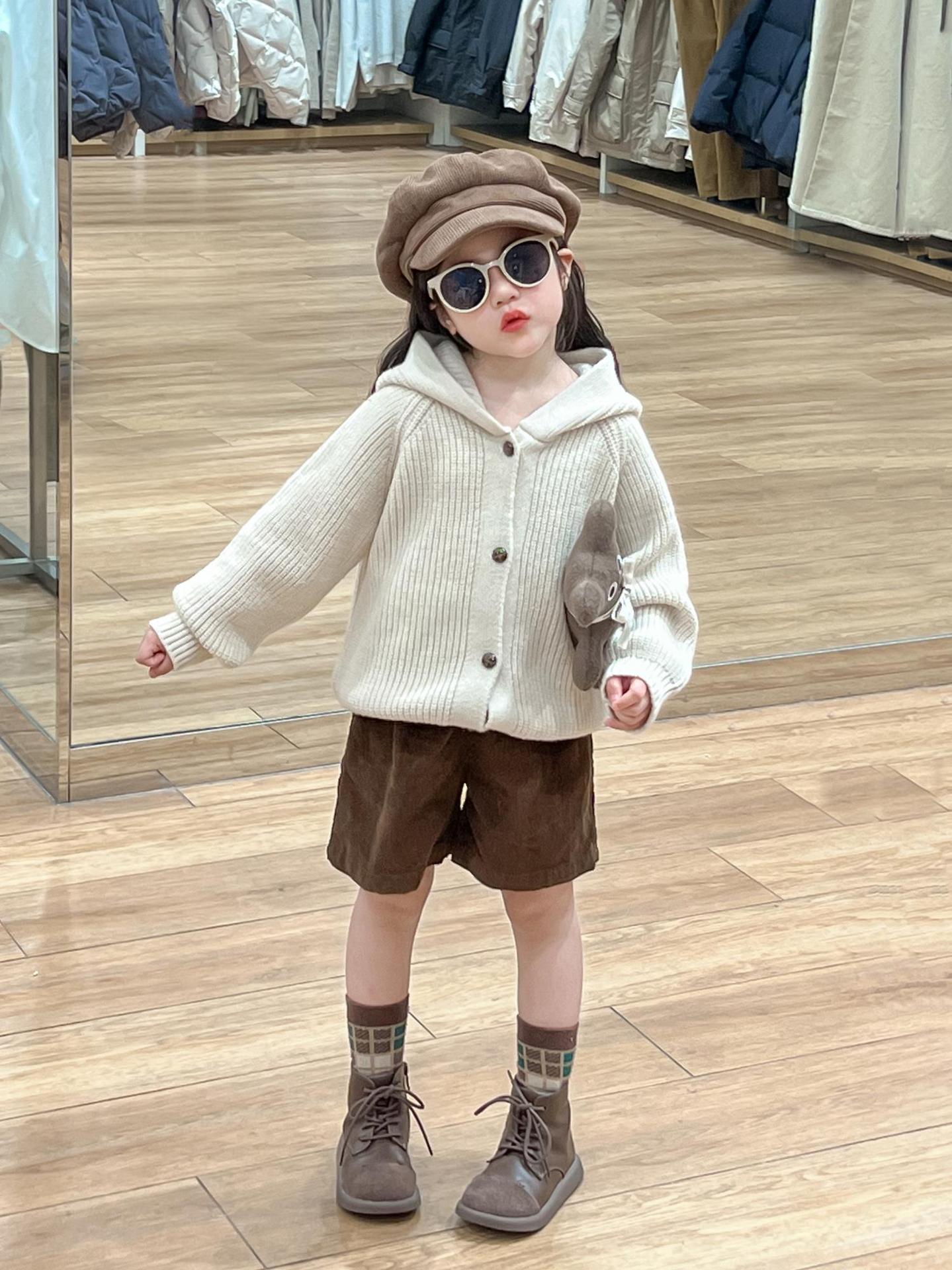 아기 소녀의 스웨터 카디건 2024 소녀의 가을과 겨울 솔리드 컬러 올 매치 후드 모피 볼 싱글 브레스트 니트 자켓스토어 가기