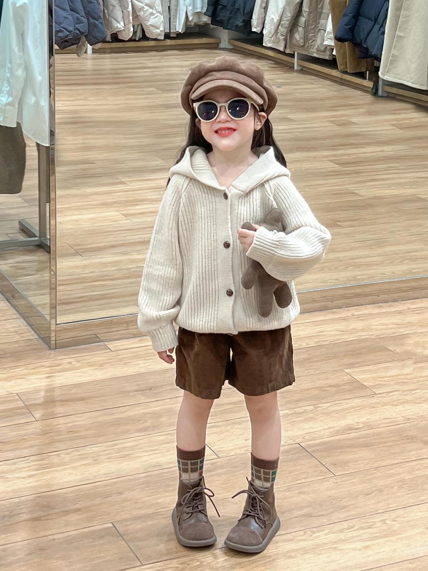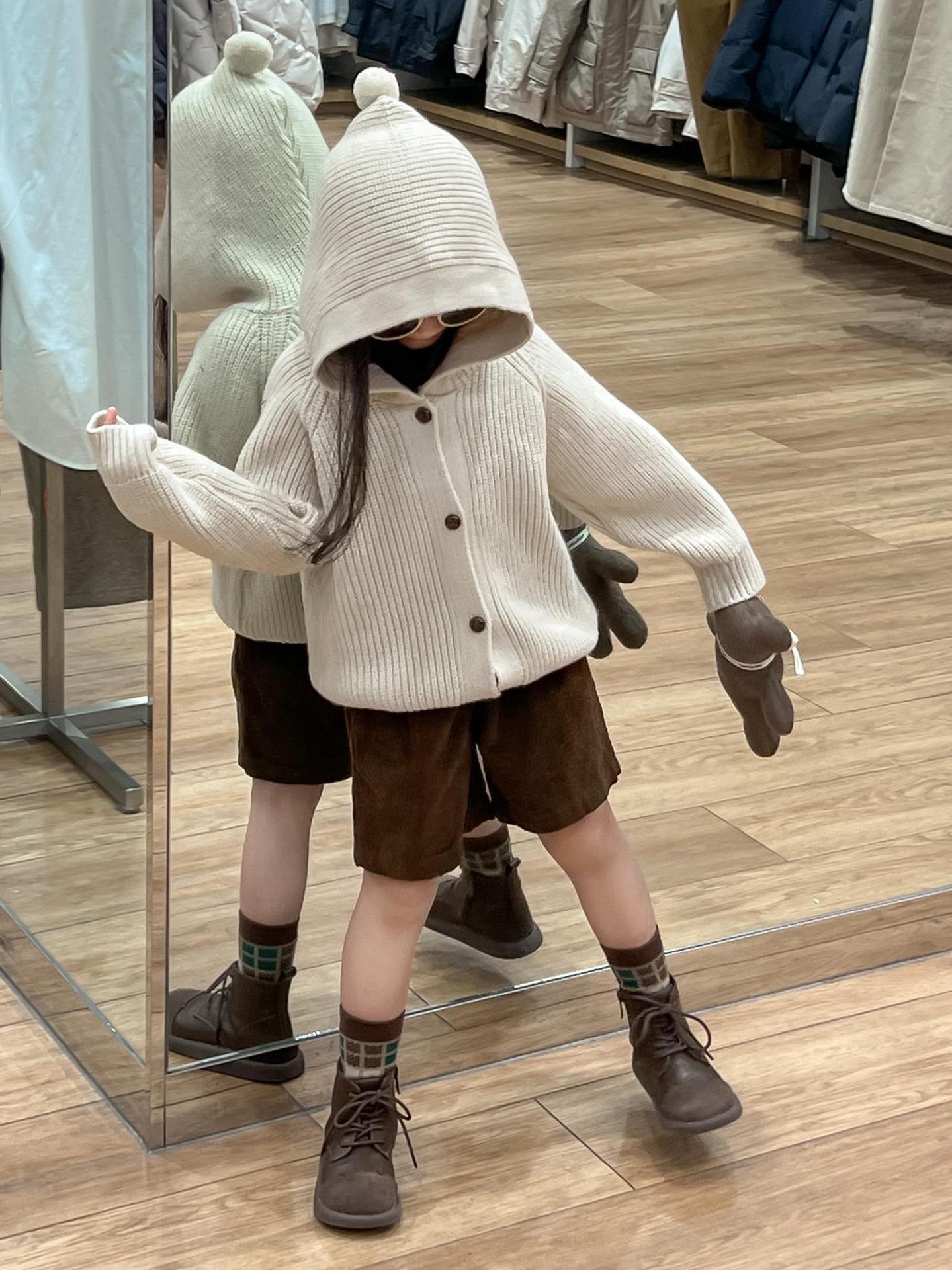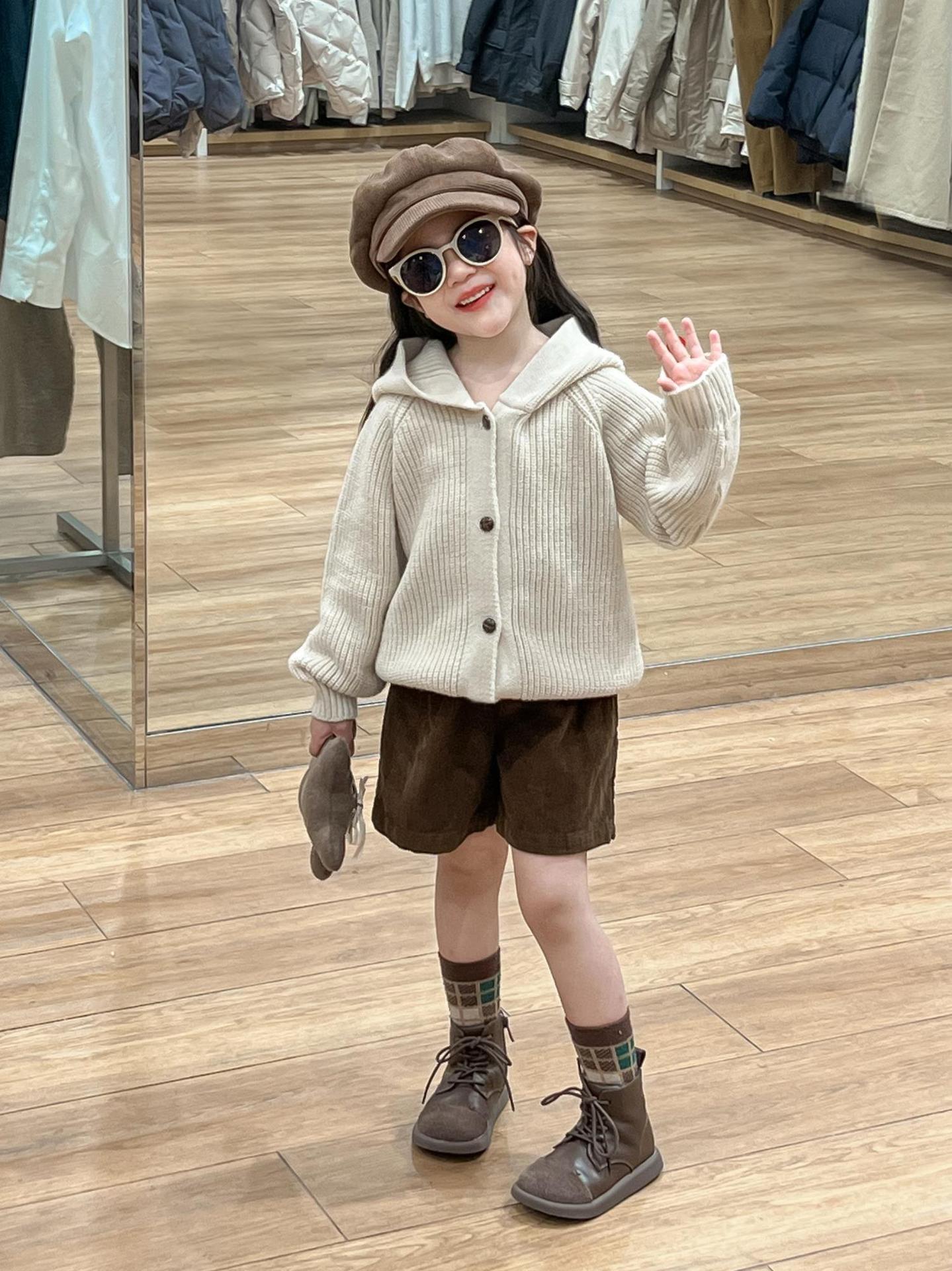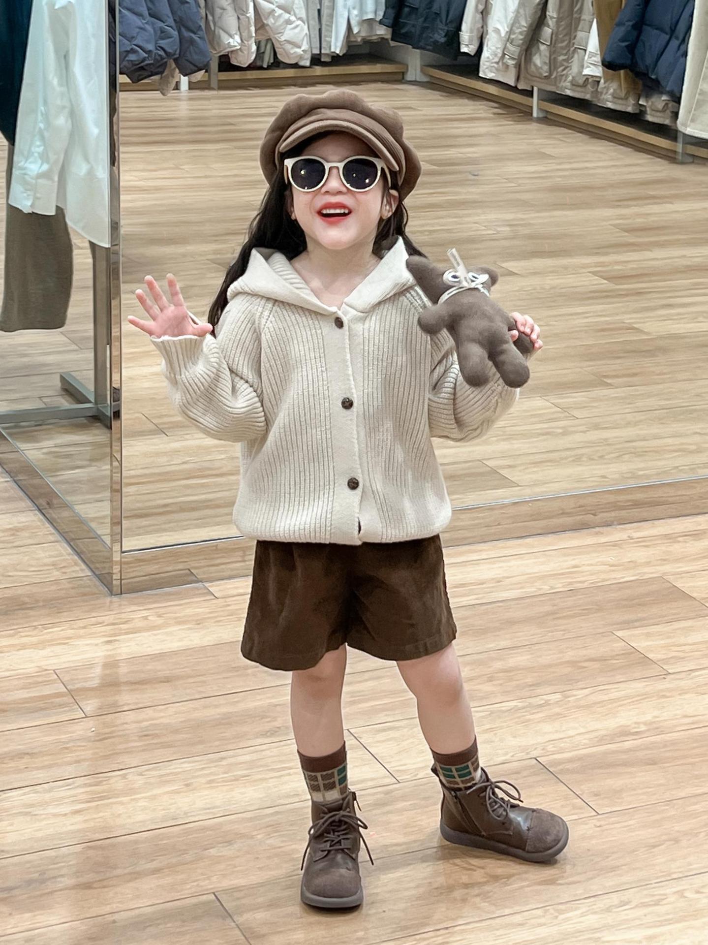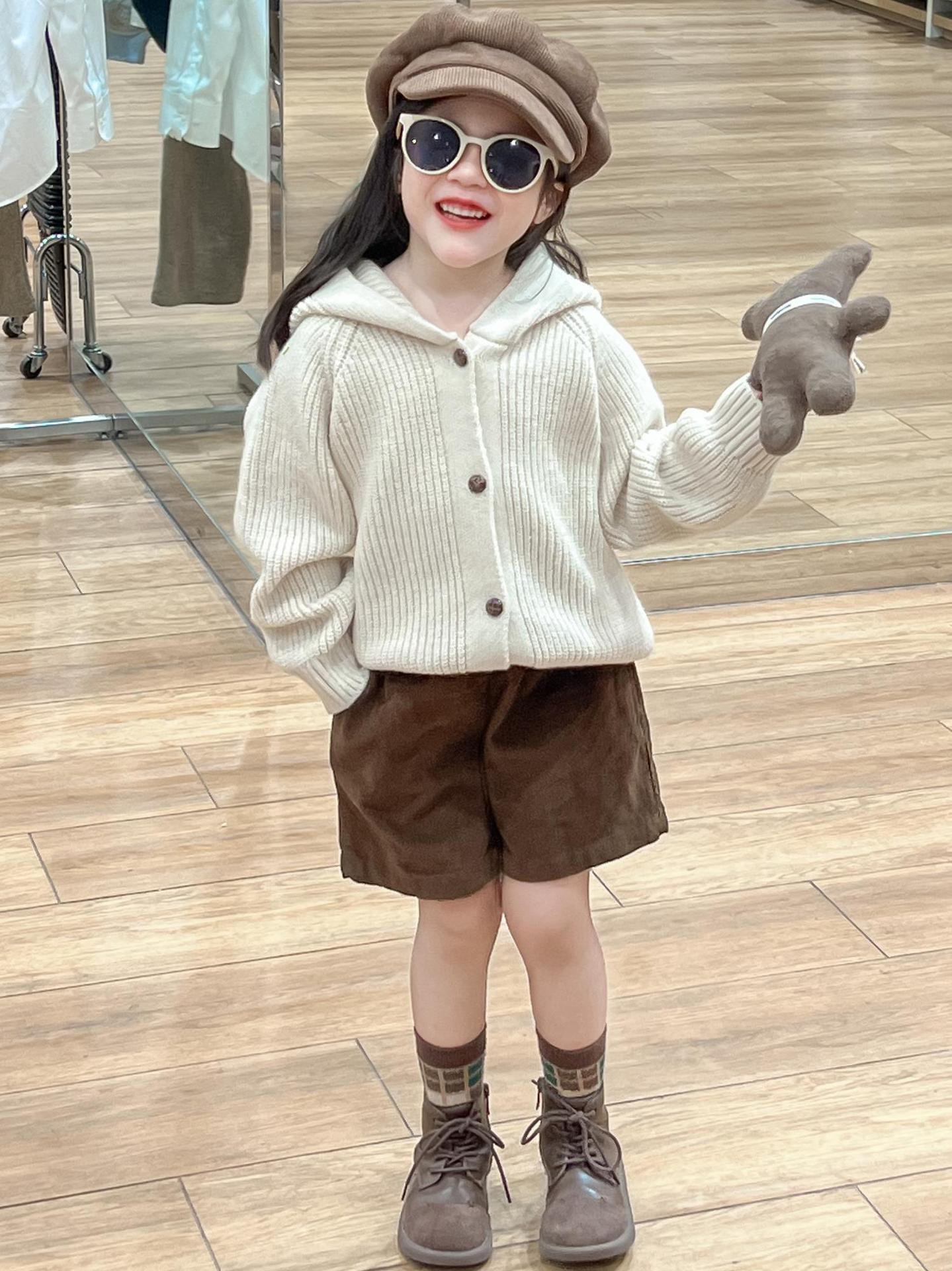 아기 소녀의 스웨터 카디건 2024 소녀의 가을과 겨울 솔리드 컬러 올 매치 후드 모피 볼 싱글 브레스트 니트 자켓스토어 가기