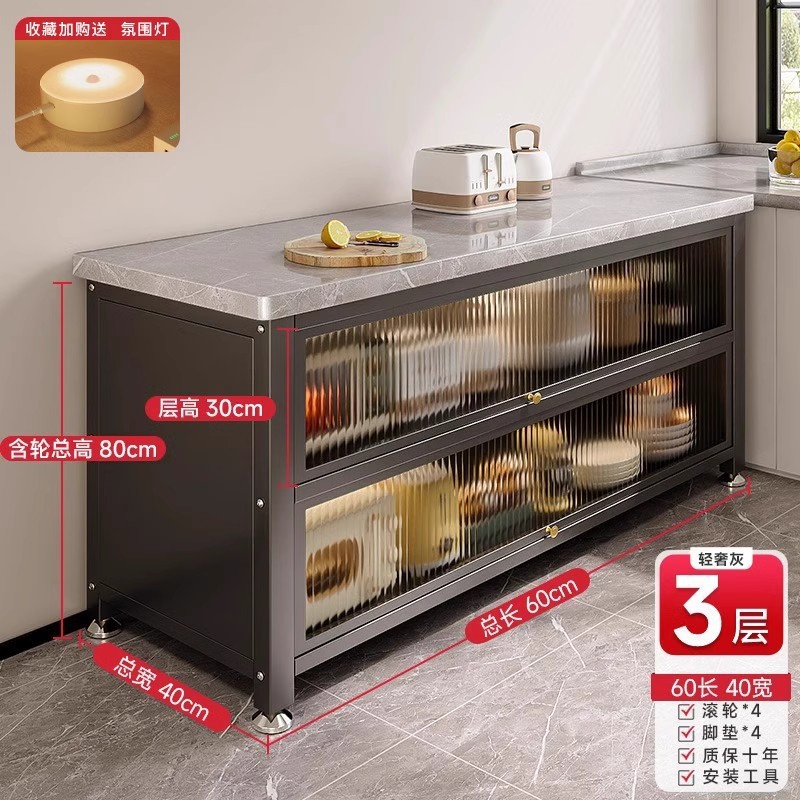 厨房置物架落地多层岩板橱柜收纳柜多功能切菜柜子储物柜靠墙一体
