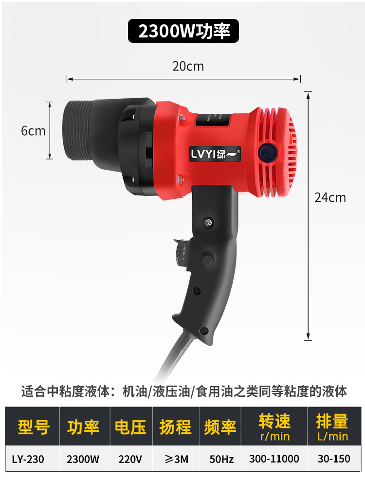 • 오일 펌프 알루미늄 튜브 [2300W 속도 조절 유형] - 프리 3m 튜브 - 중간 점도 액체/무단계 속도 조절/산성 및 알칼리성 액체