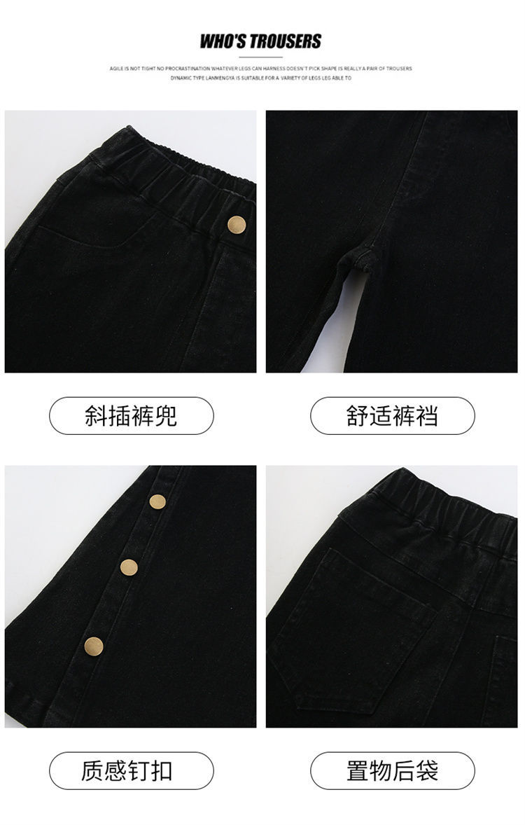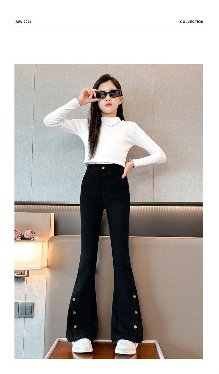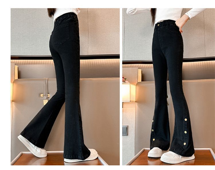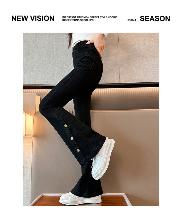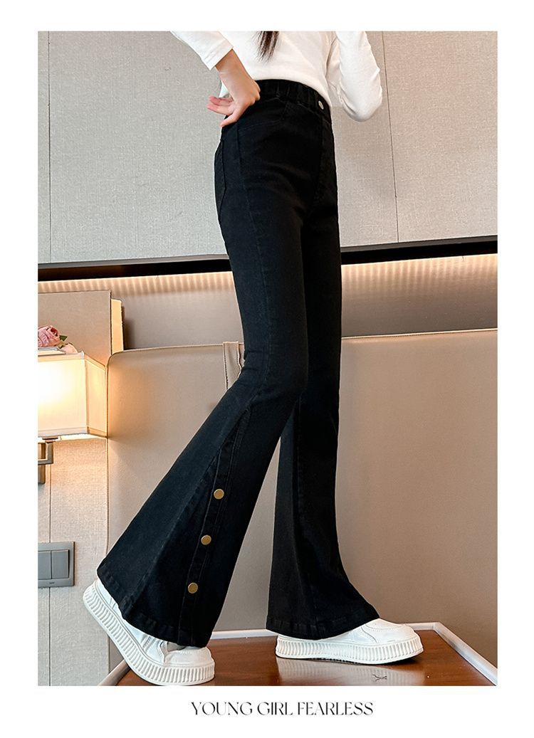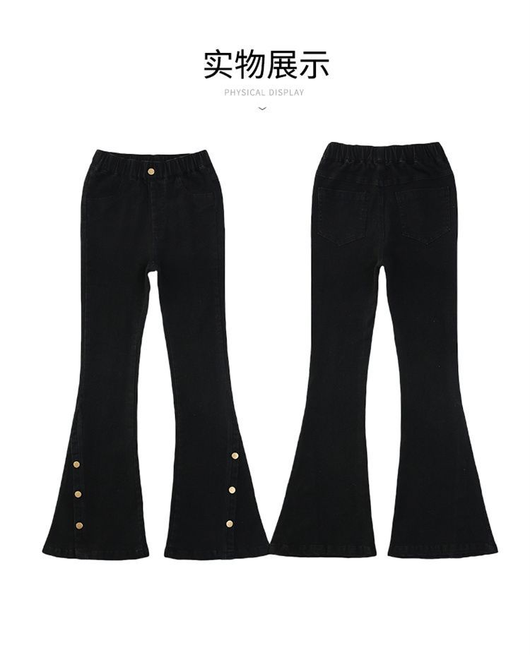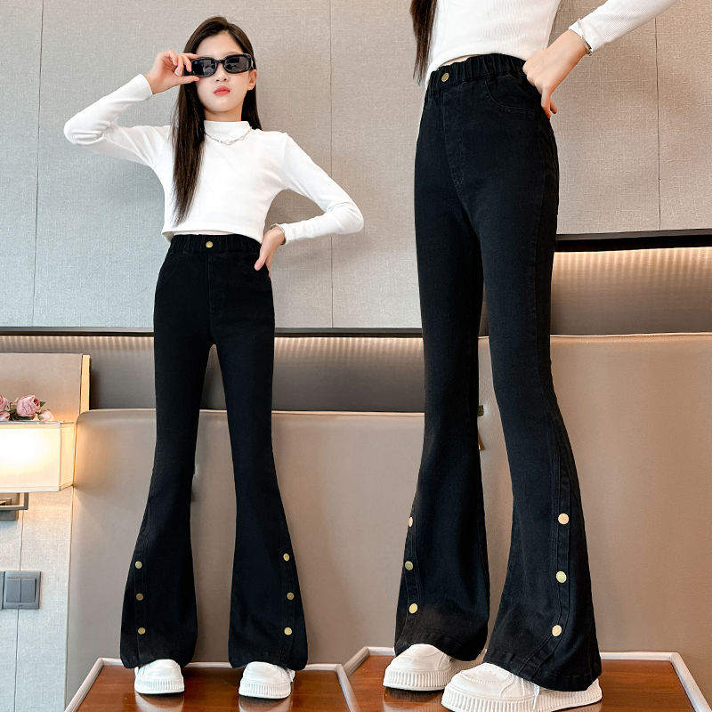 여아 청바지 봄, 가을 스타일 중대형 아동 나팔바지 2025 봄, 가을 스타일 슬림 아동 아우터 블랙 청바지