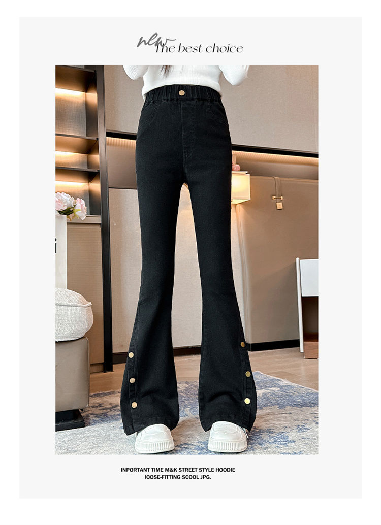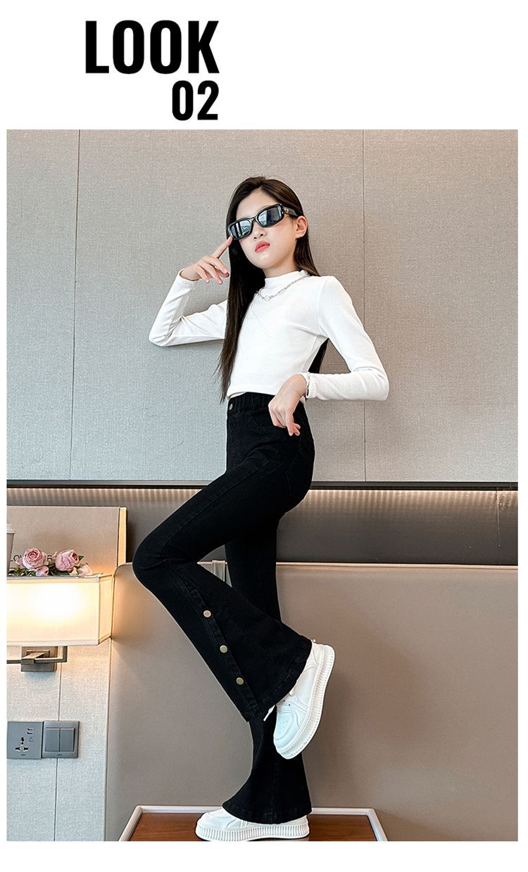 여아 청바지 봄, 가을 스타일 중대형 아동 나팔바지 2025 봄, 가을 스타일 슬림 아동 아우터 블랙 청바지스토어 가기