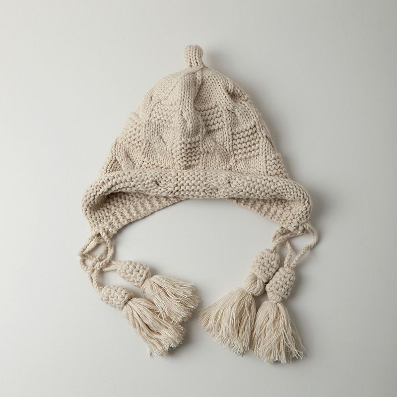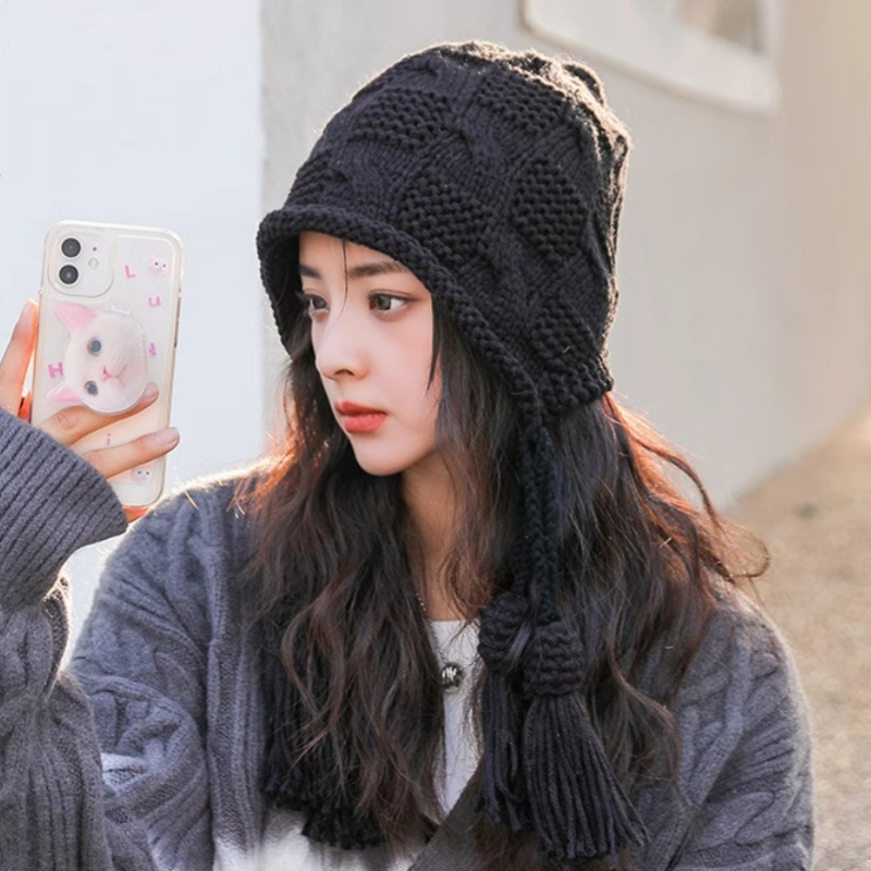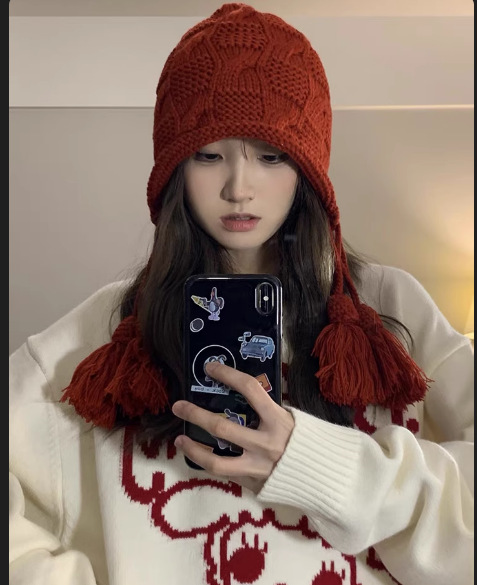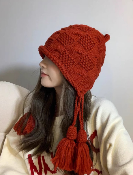 빨간 귀 보호 모자 가을과 겨울 따뜻한 국가 스타일 술 모자 캐주얼 손으로 니트 모자 학생 울 모자