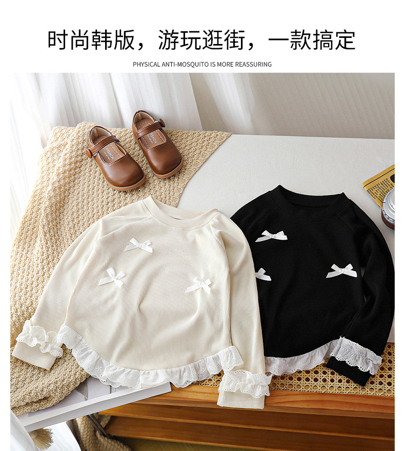 여아 긴팔 티셔츠 2025 새로운 스타일의 나비 매듭 레이스 한국 아동복 아동 봄, 가을 바닥 셔츠 아동복스토어 가기