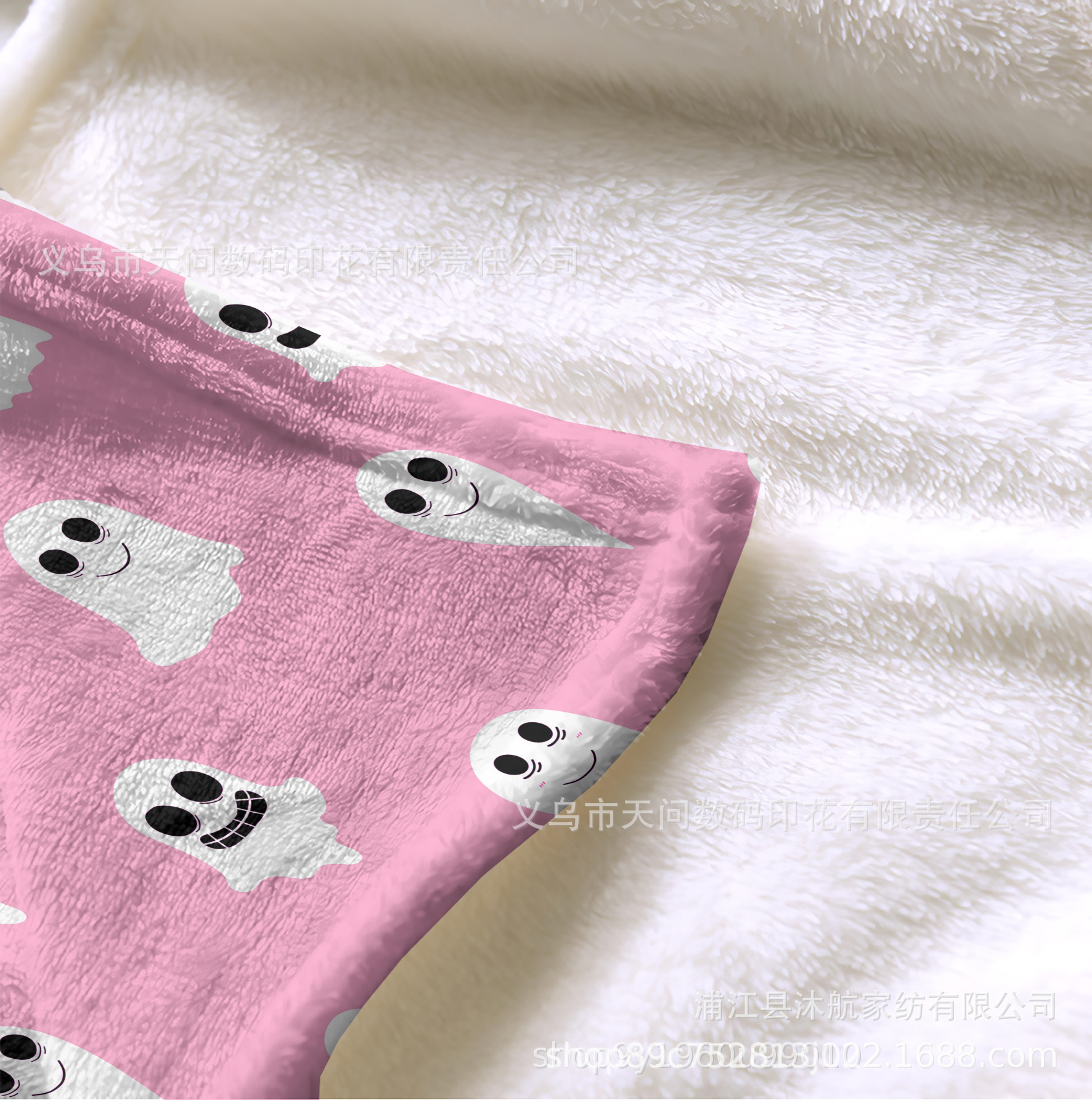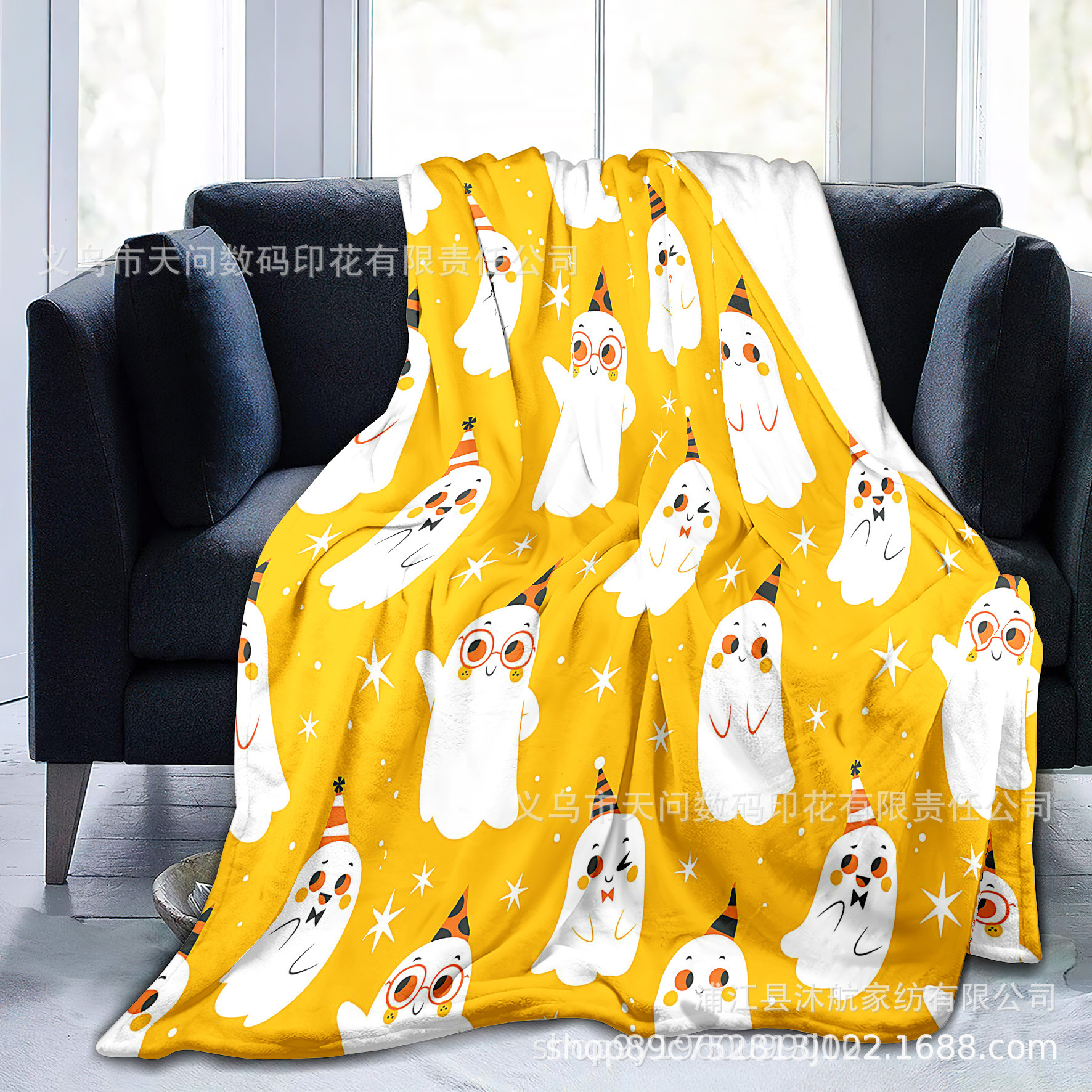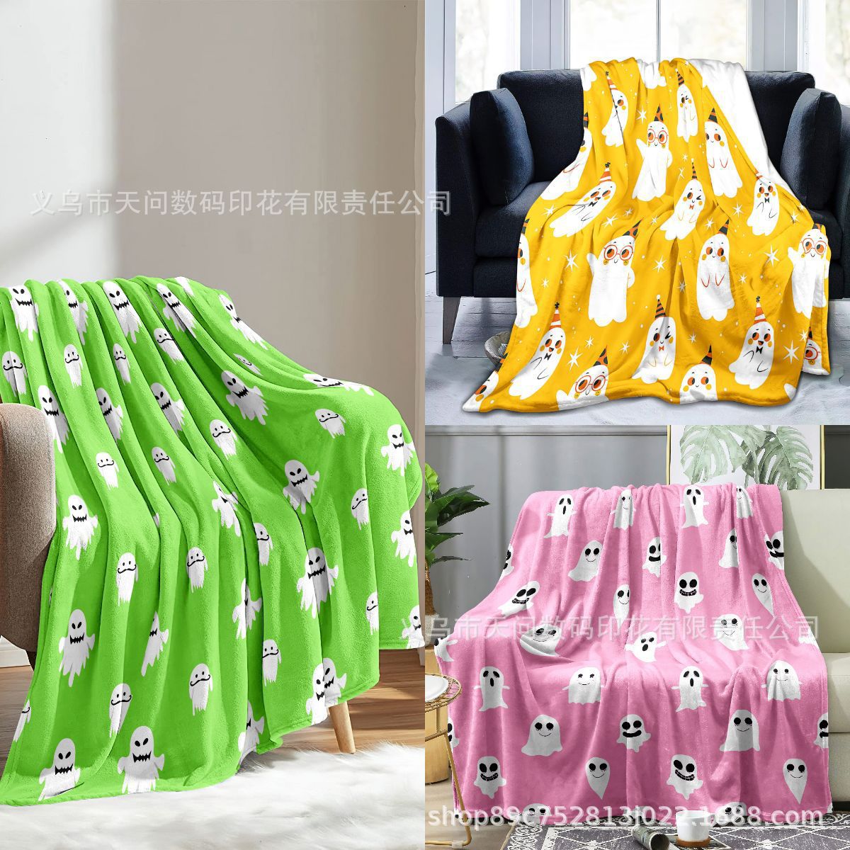 국경을 넘는 새로운 플란넬 담요, 할로윈 귀여운 흰색 유령 축제 분위기 숄 담요, 낮잠 담요스토어 가기