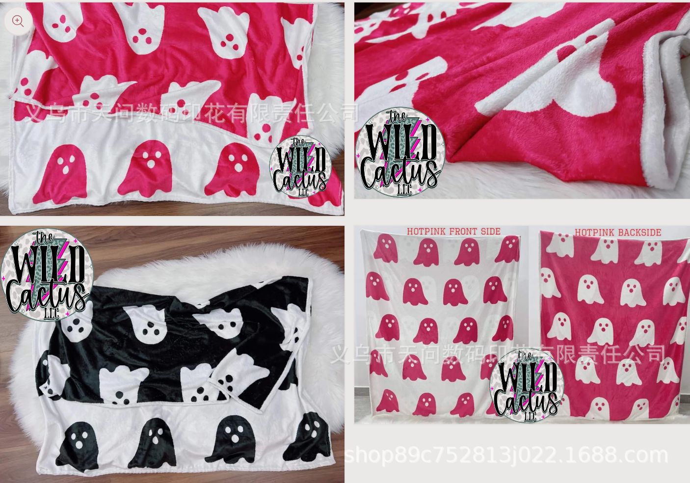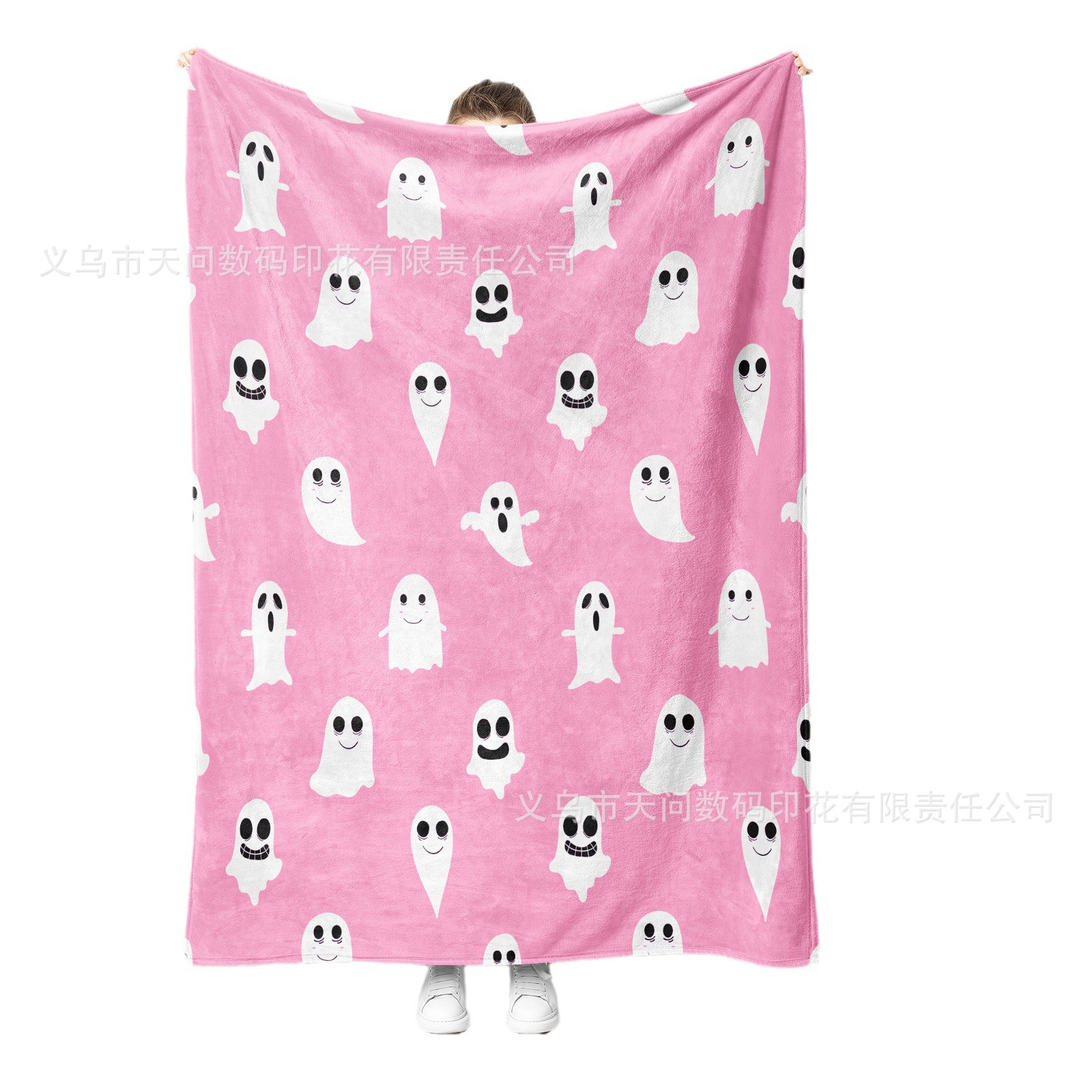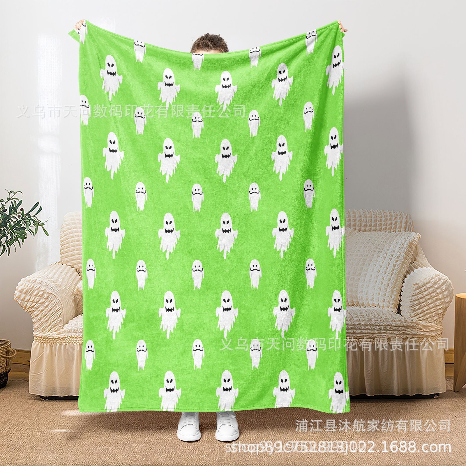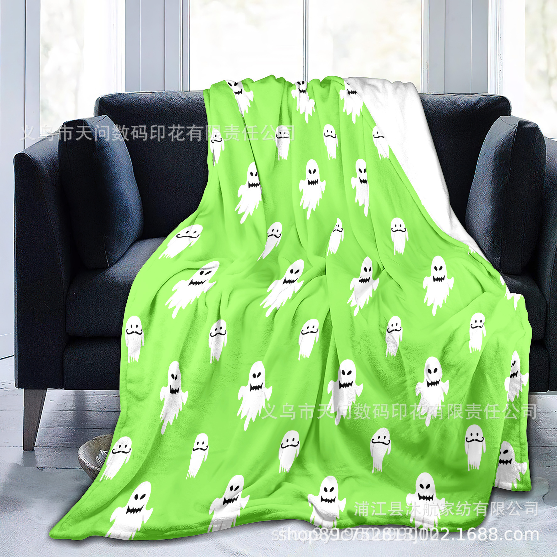 국경을 넘는 새로운 플란넬 담요, 할로윈 귀여운 흰색 유령 축제 분위기 숄 담요, 낮잠 담요스토어 가기