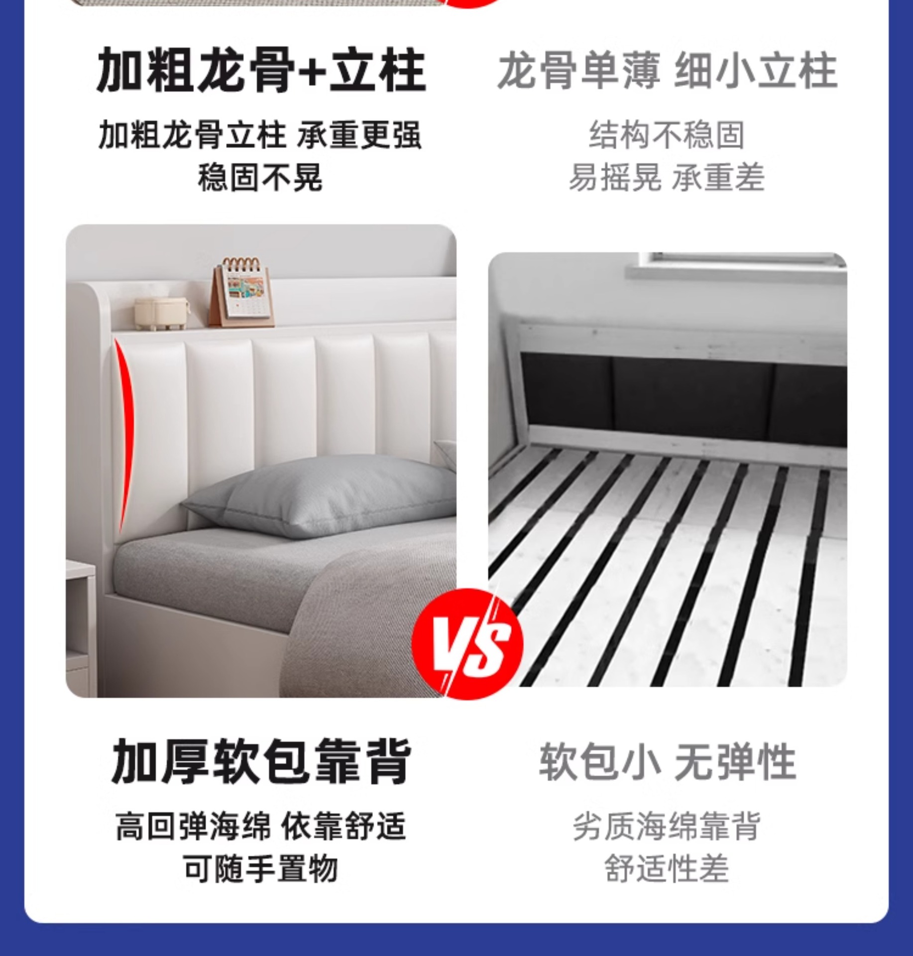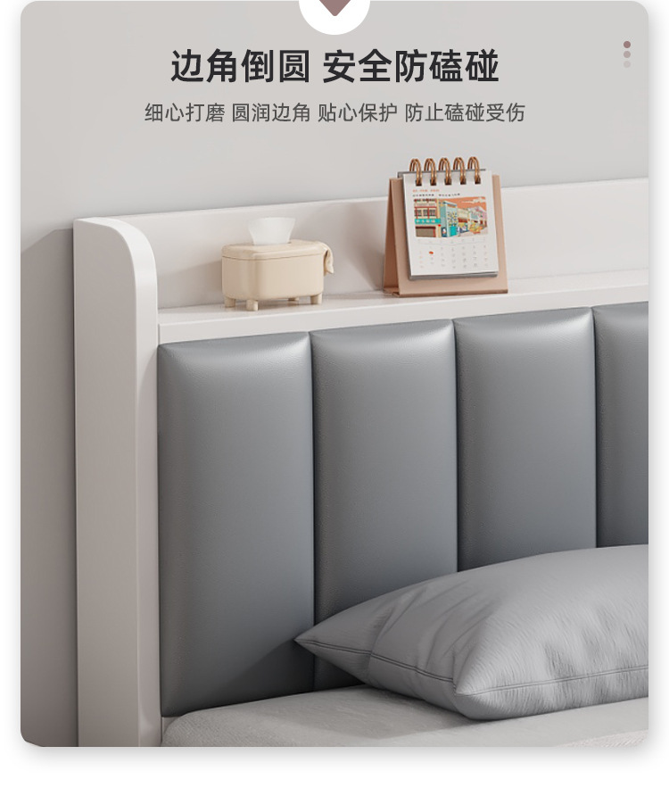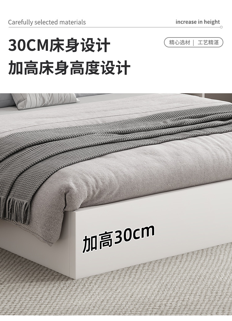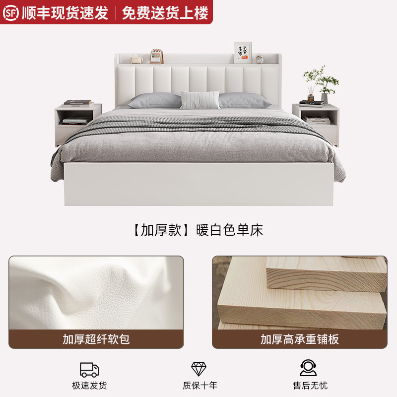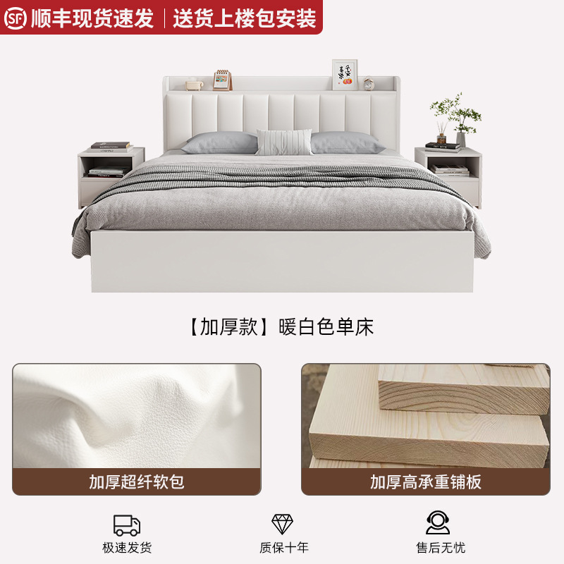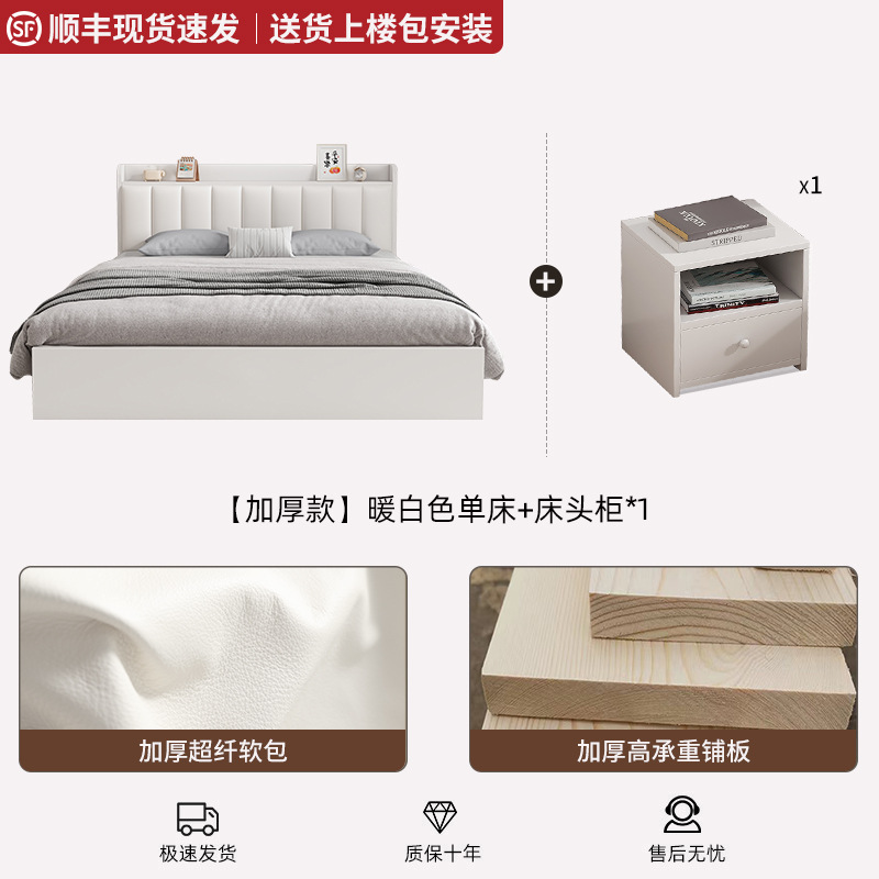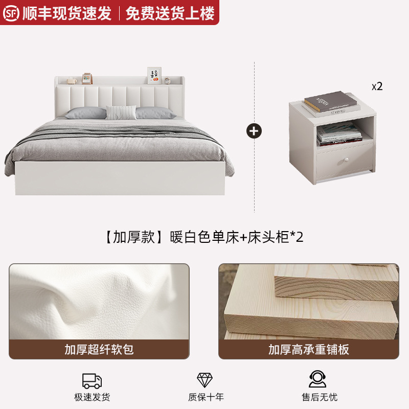 • [두꺼운 모델] 따뜻한 흰색 싱글 침대 + 침대 옆 탁자*2 [위층 배송]