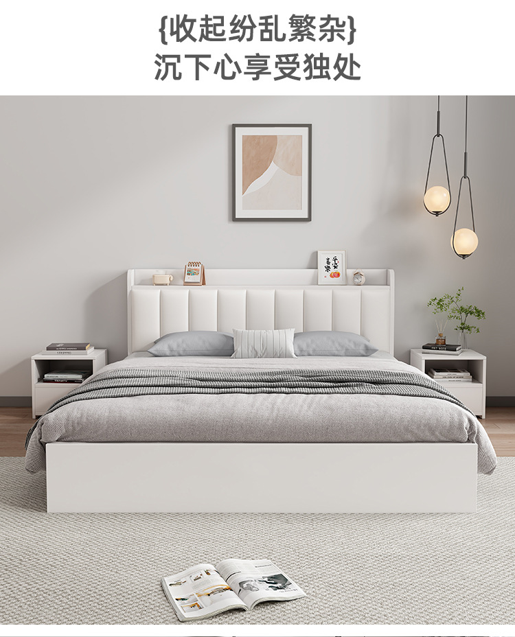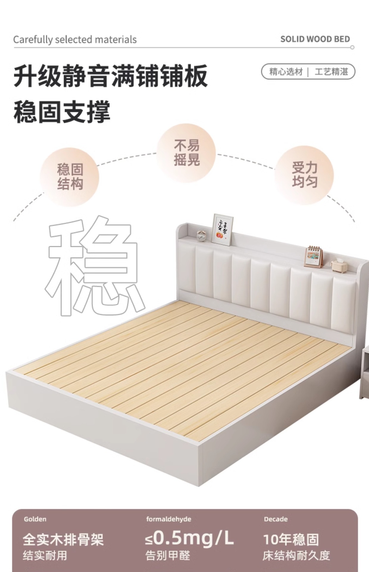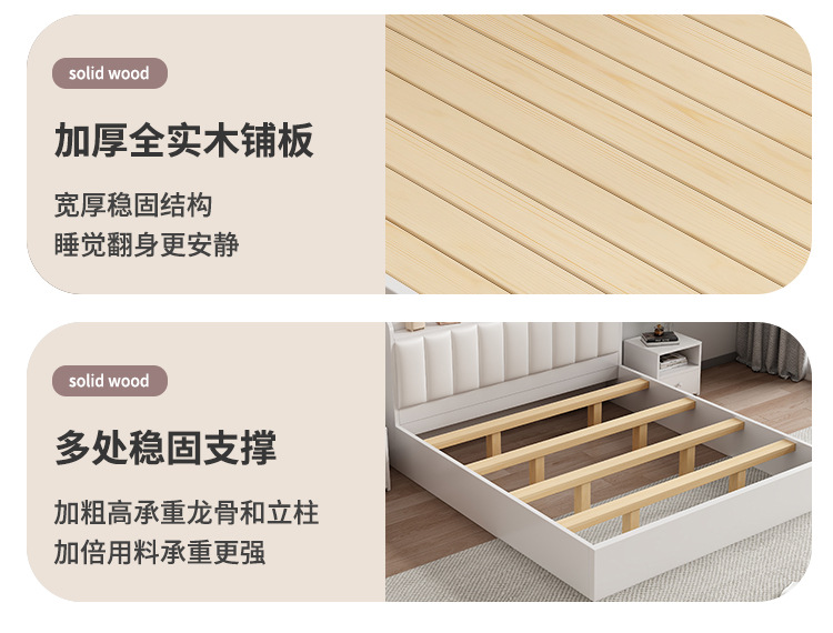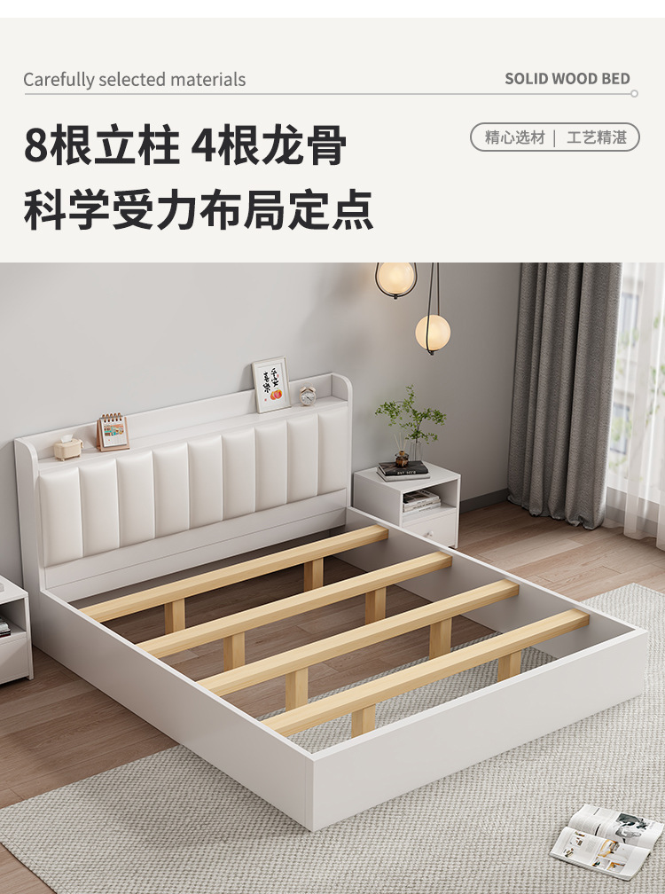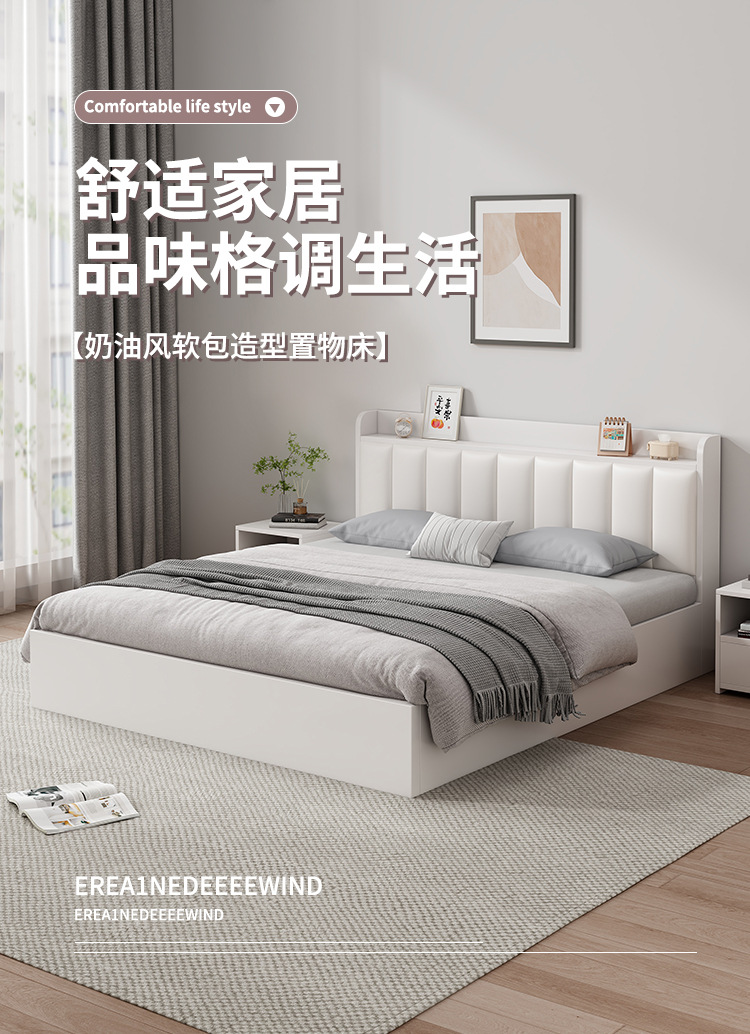 침대 단단한 나무 간단한 현대 가정용 크림 스타일 1.5 싱글 침대 임대 룸 1.8 다다미 저장 더블 침대스토어 가기