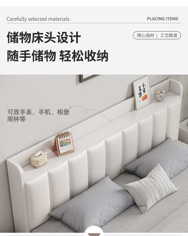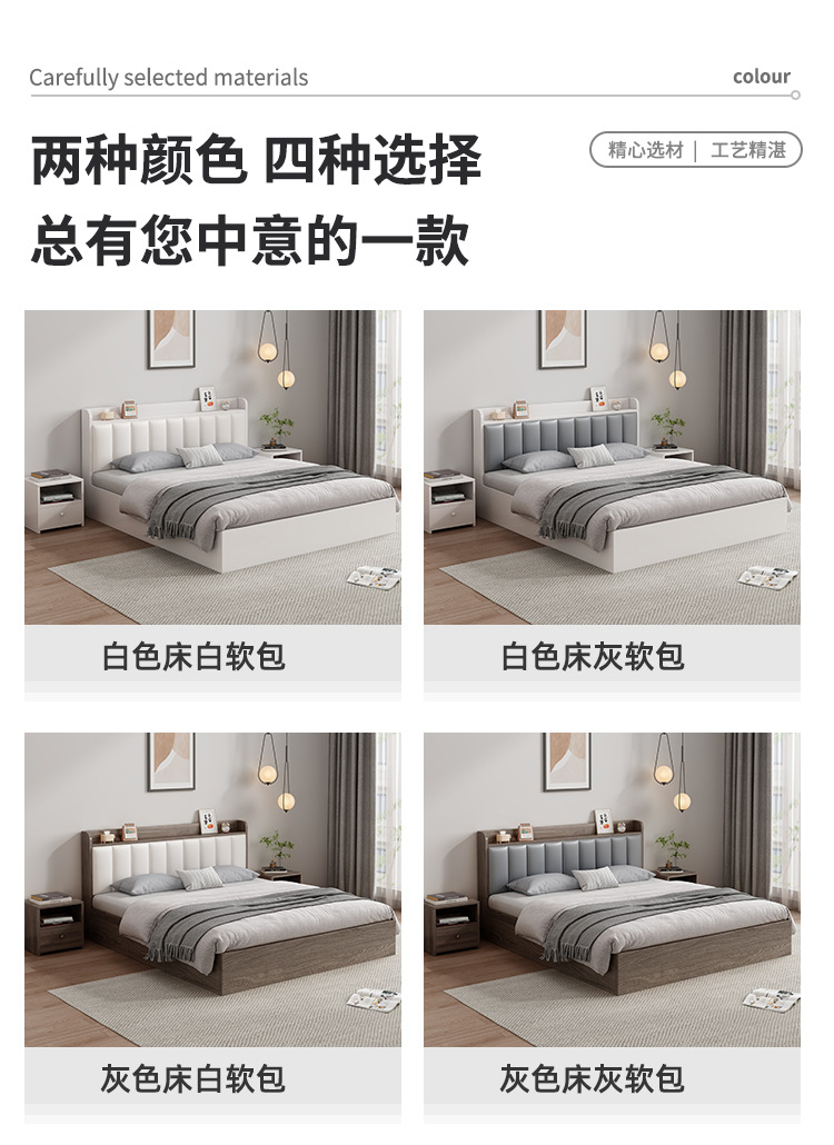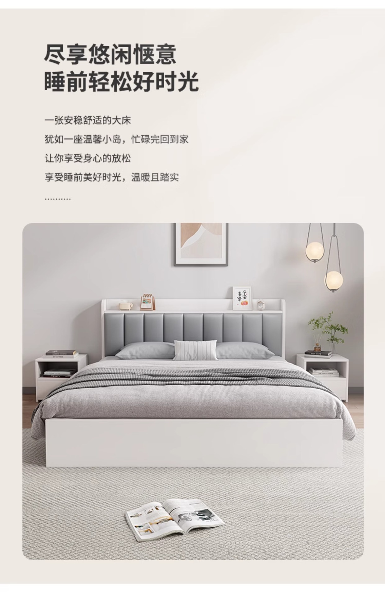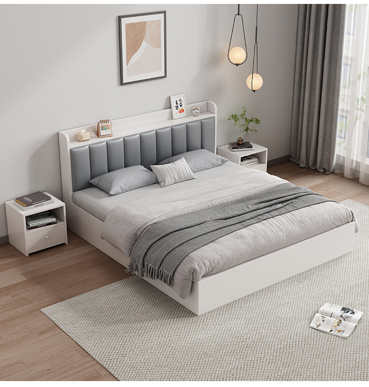 침대 단단한 나무 간단한 현대 가정용 크림 스타일 1.5 싱글 침대 임대 룸 1.8 다다미 저장 더블 침대스토어 가기