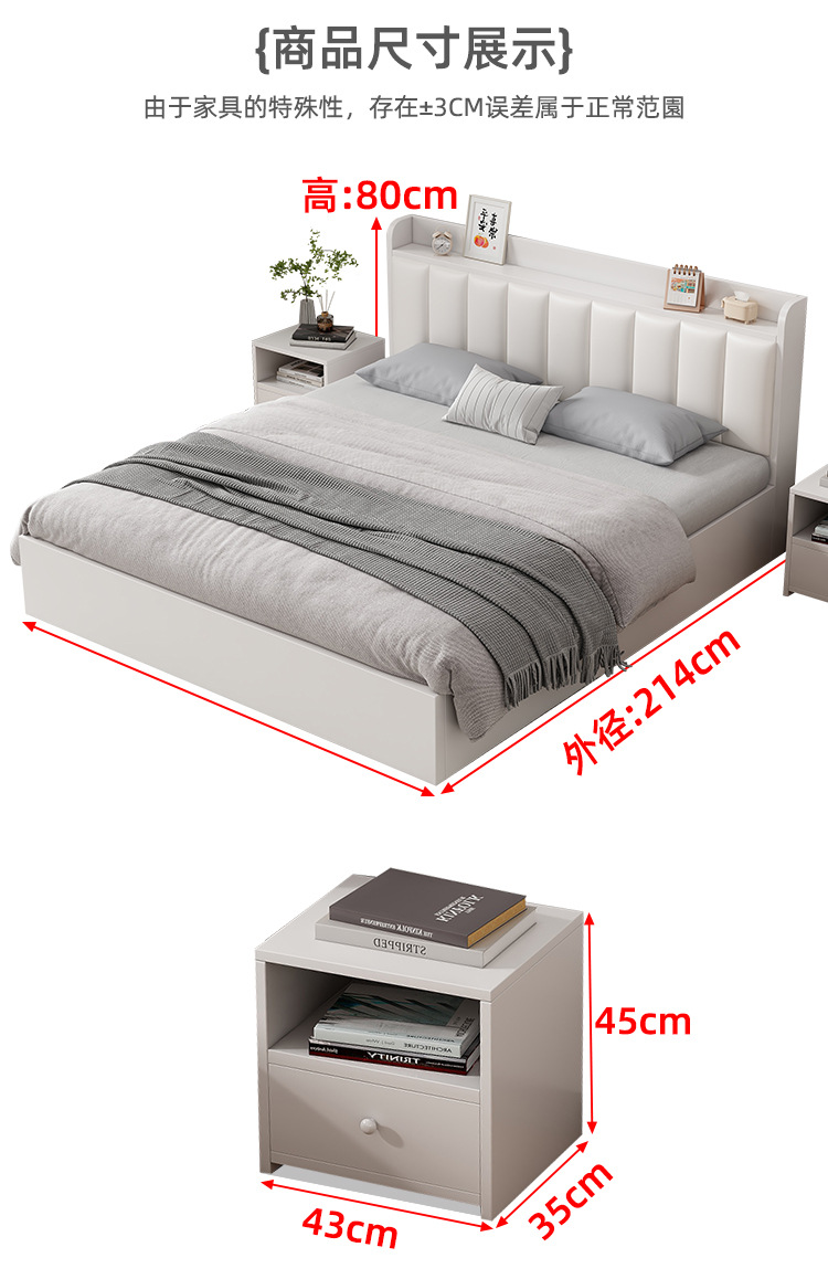 • [두꺼운 모델] 따뜻한 흰색 싱글 침대 + 20cm 매트리스 + 침대 옆 탁자 * 2 [위층 배송]