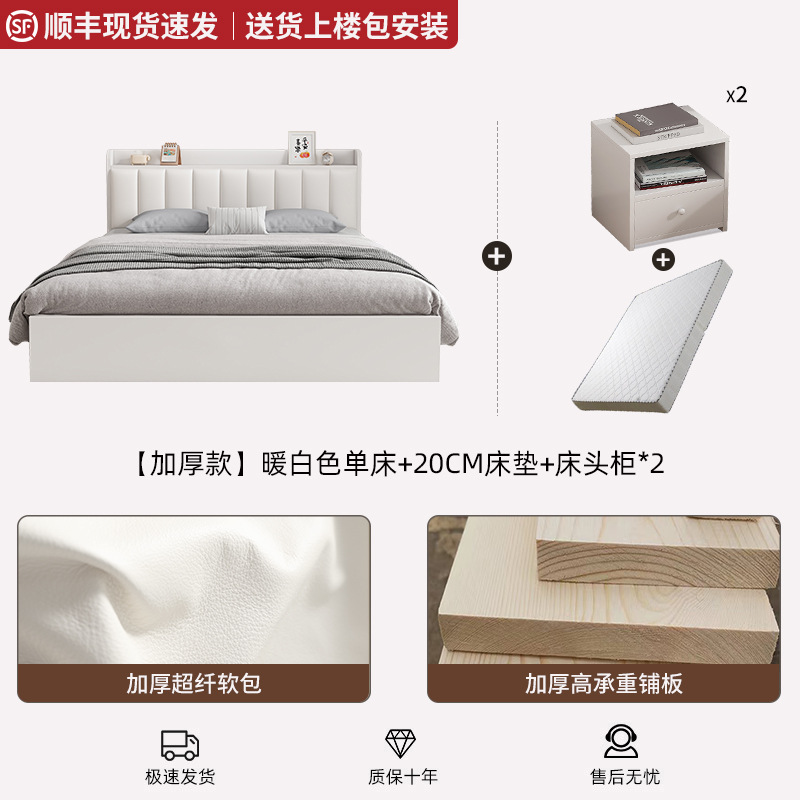 • [두꺼운 모델] 따뜻한 흰색 싱글 침대 + 20cm 매트리스 + 침대 옆 탁자 * 1 [위층 배송]