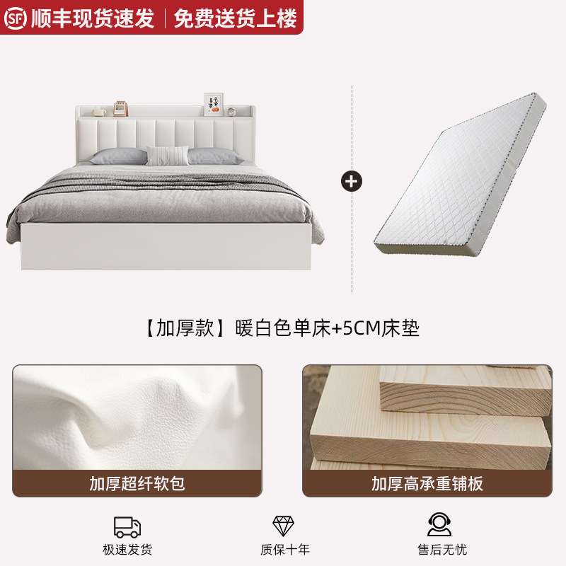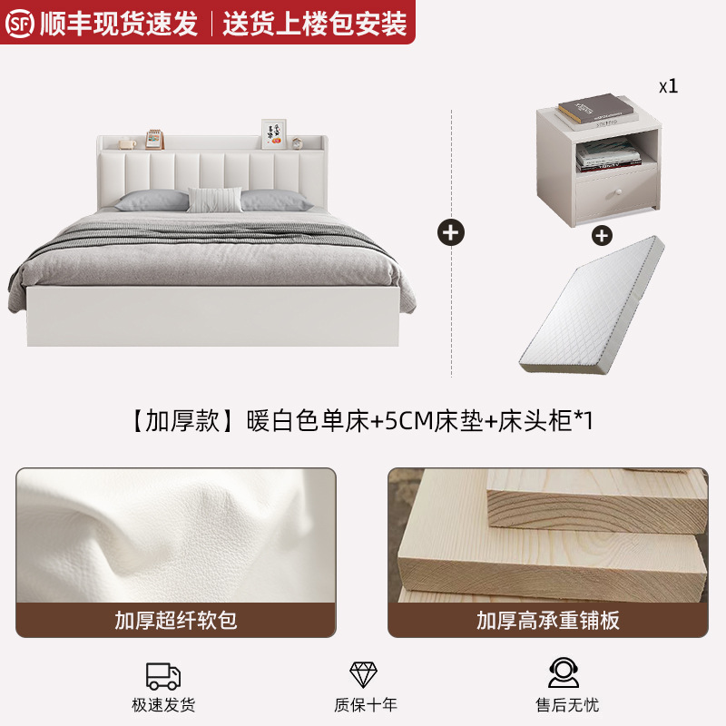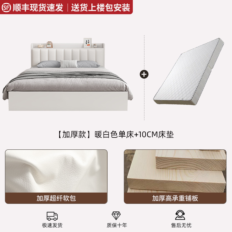 • [두꺼운 모델] 따뜻한 흰색 싱글 침대 + 10cm 매트리스 + 침대 옆 탁자 * 1 [위층 배송]