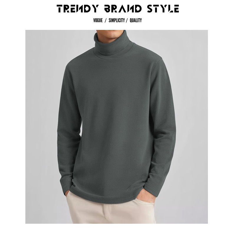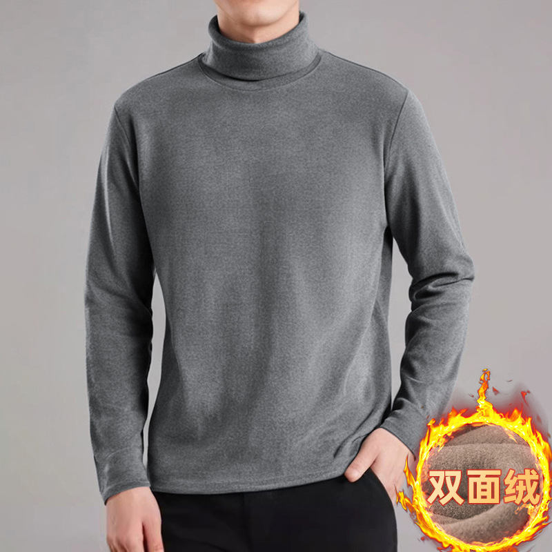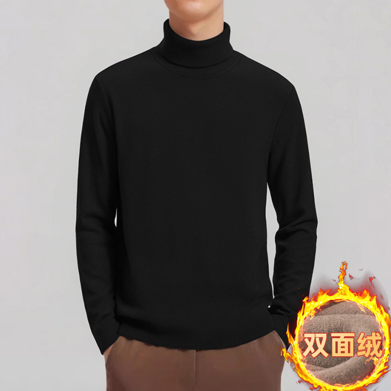 독일 벨벳 바닥 셔츠 양면 벨벳 하이 칼라 긴 소매 티셔츠 남자 가을과 겨울 기모 따뜻한 셔츠 단색 가을 옷