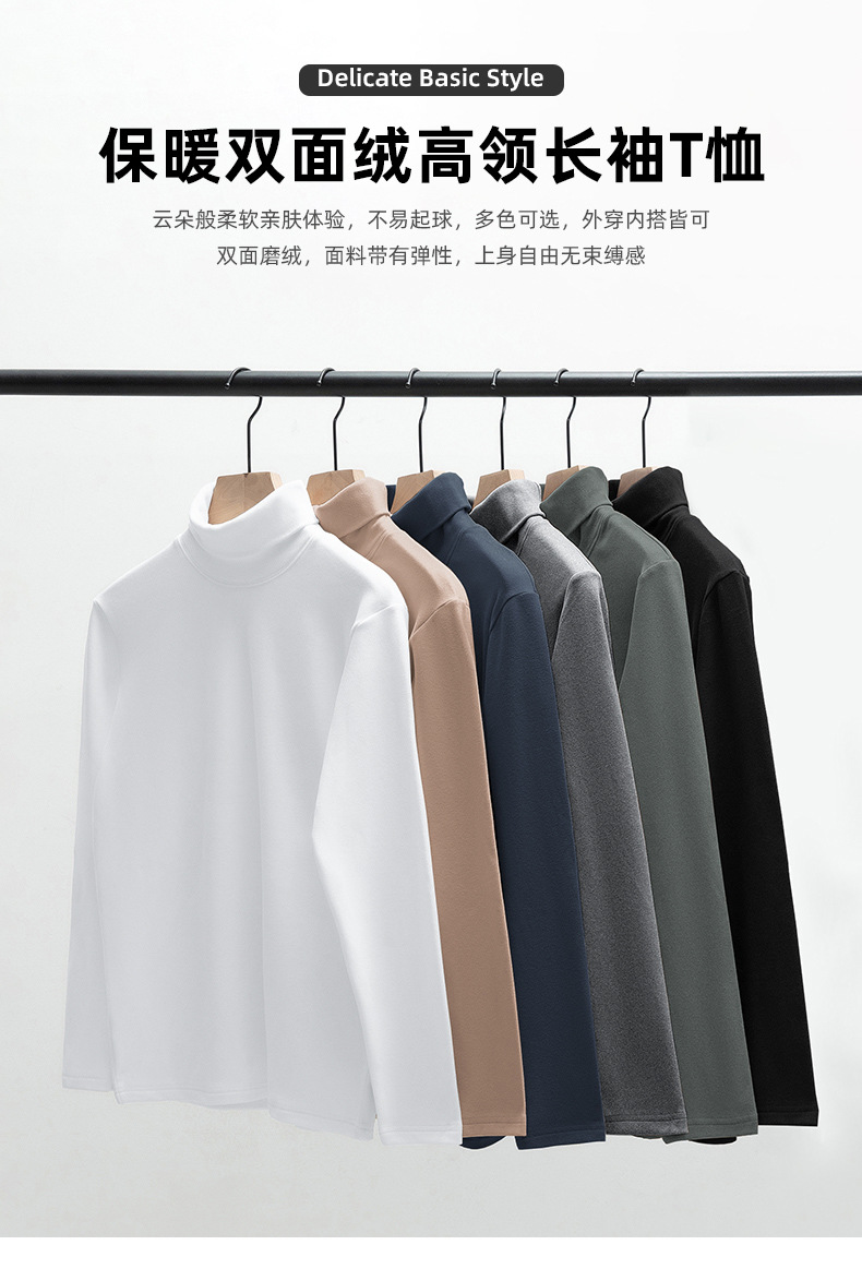 독일 벨벳 바닥 셔츠 양면 벨벳 하이 칼라 긴 소매 티셔츠 남자 가을과 겨울 기모 따뜻한 셔츠 단색 가을 옷스토어 가기