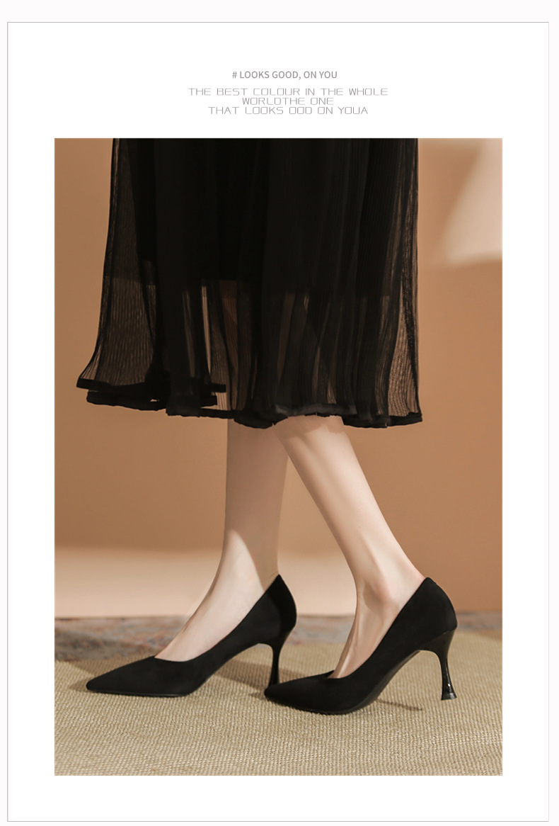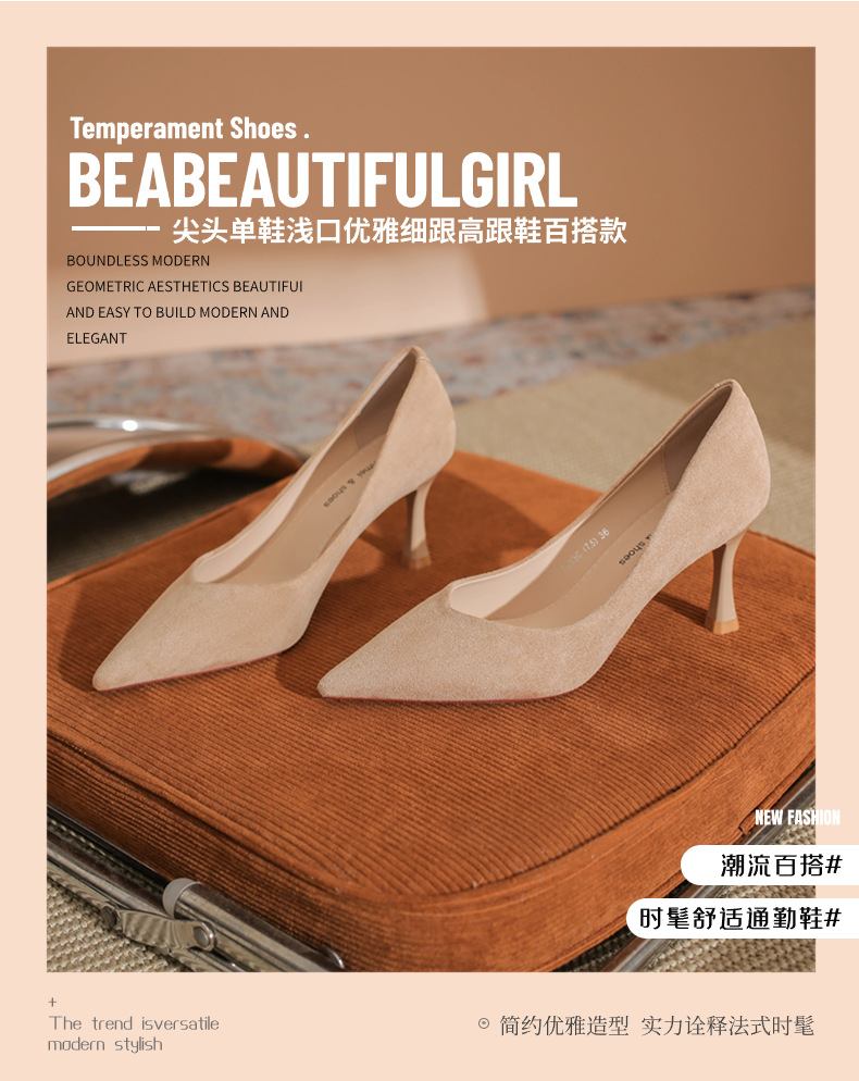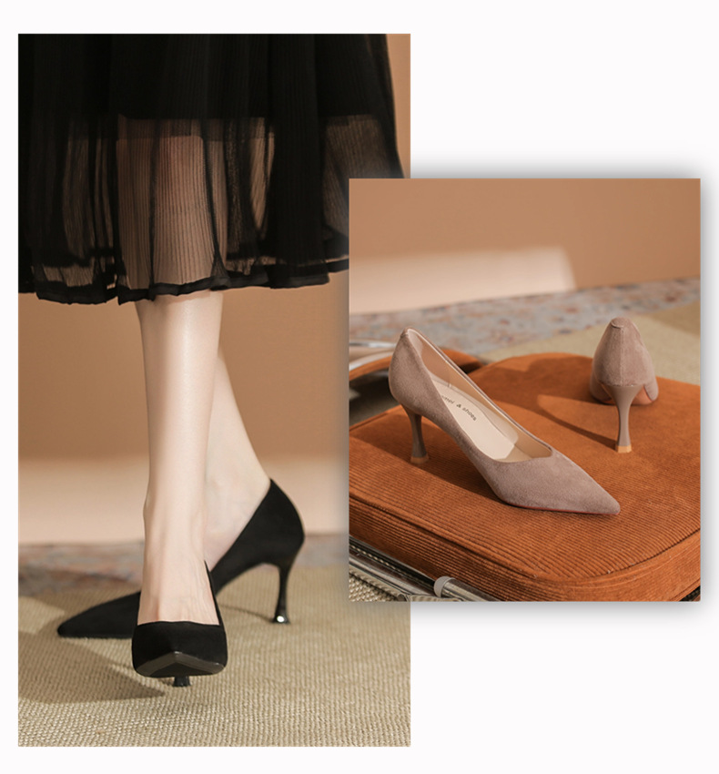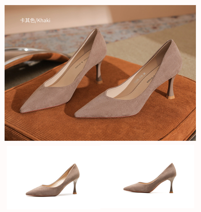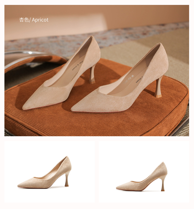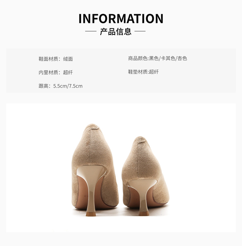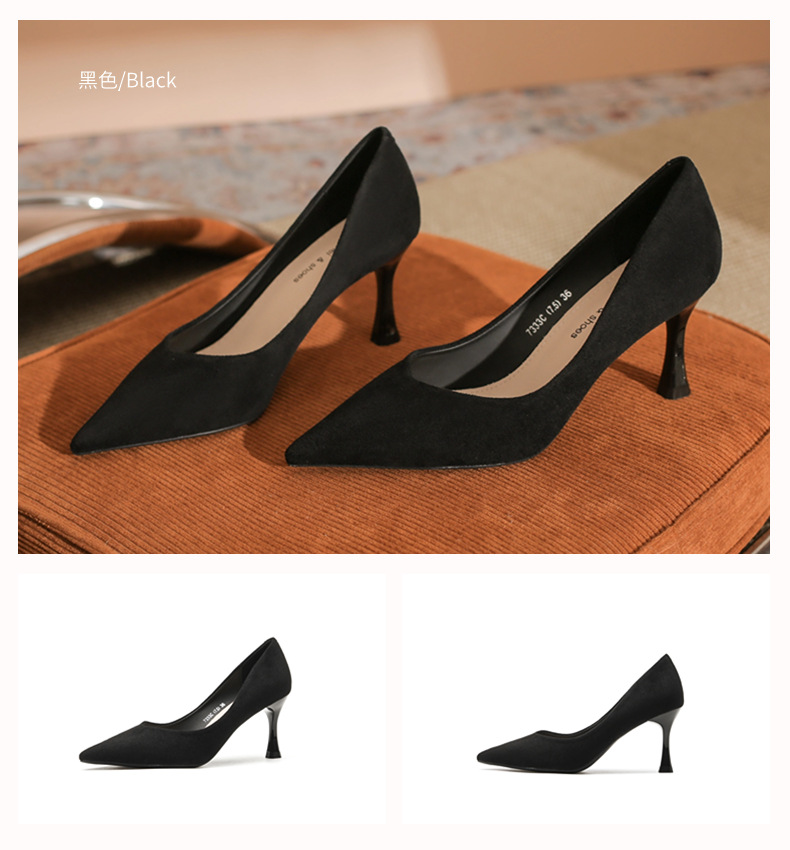 7333C 작은 V-입 스웨이드 스틸레토 힐 여성 신발 전문 신발 통근 프랑스 올 매치 우아한 스퀘어 힐 프리미엄 센스스토어 가기