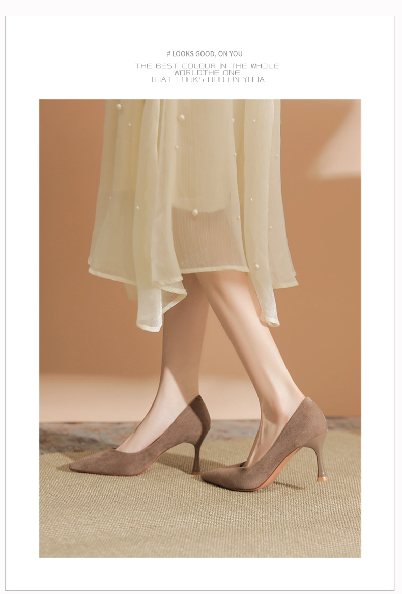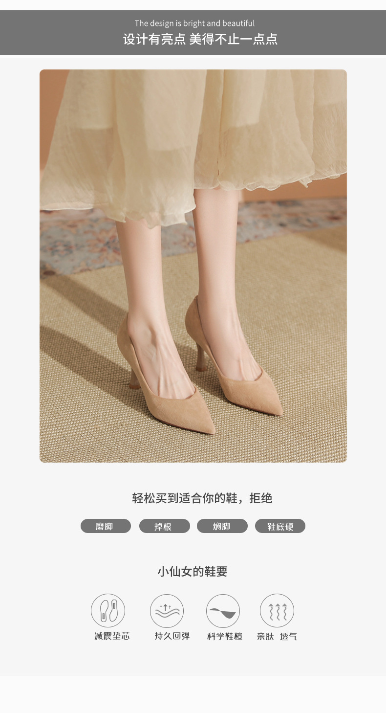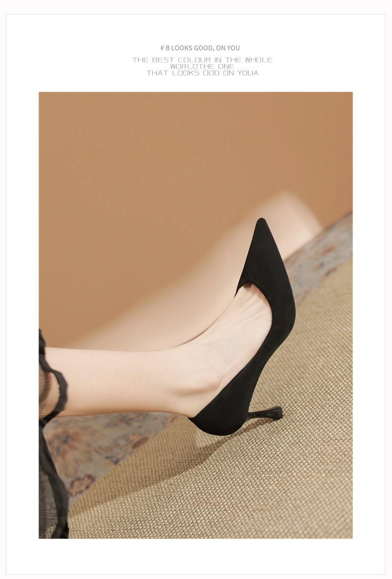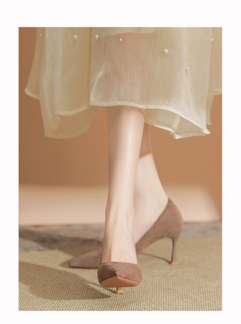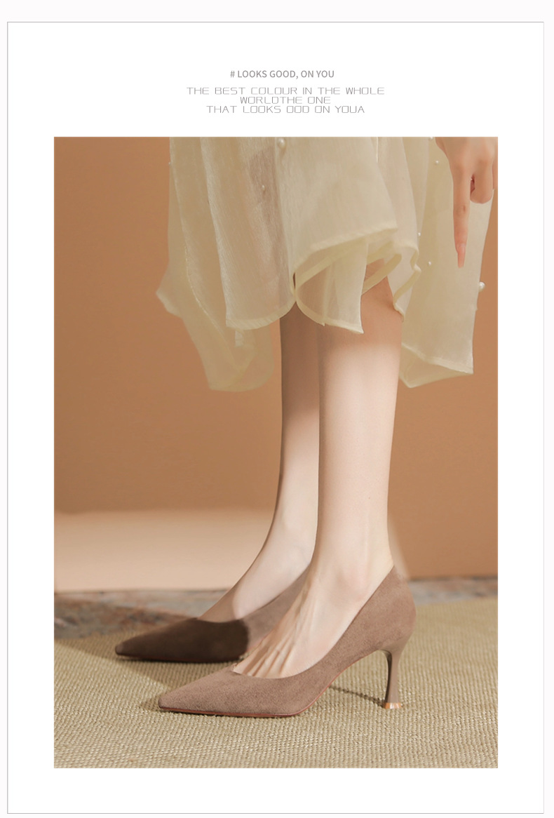 7333C 작은 V-입 스웨이드 스틸레토 힐 여성 신발 전문 신발 통근 프랑스 올 매치 우아한 스퀘어 힐 프리미엄 센스스토어 가기