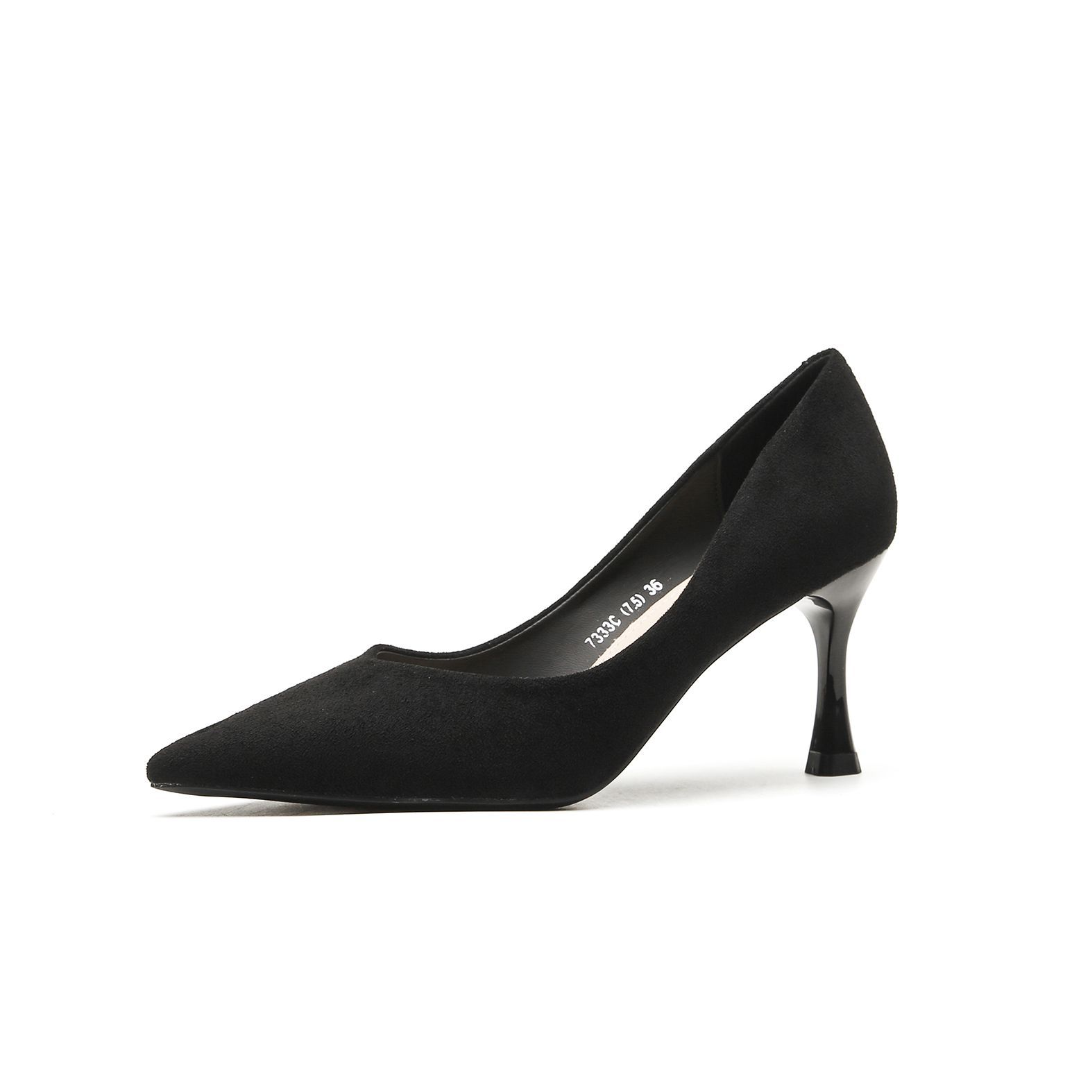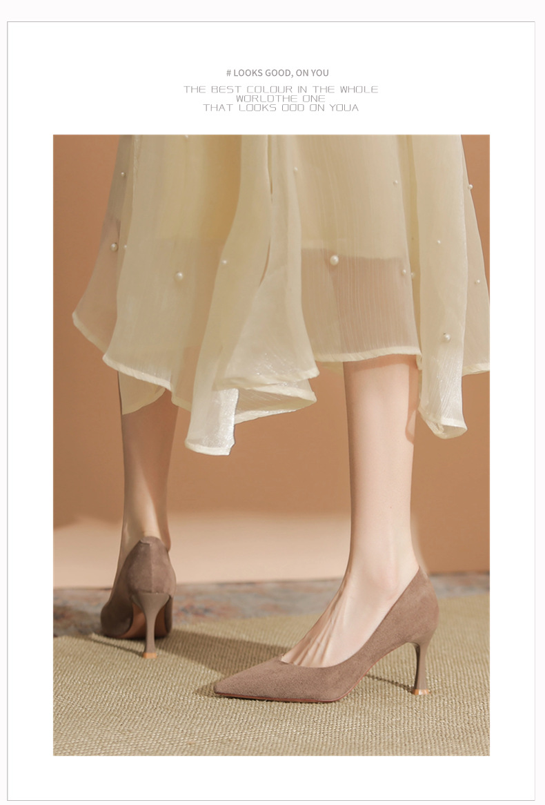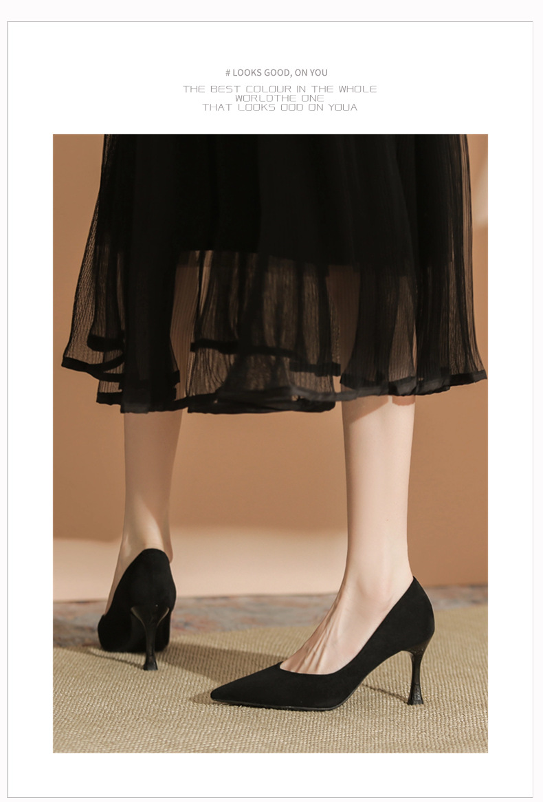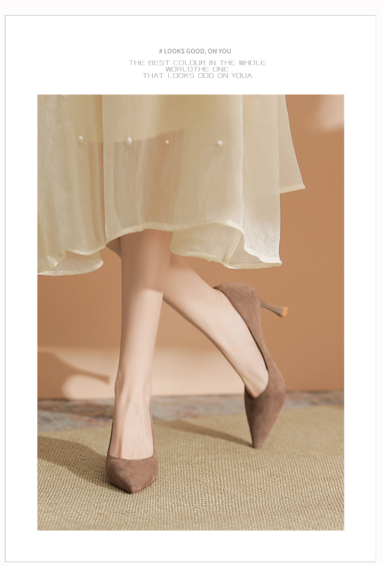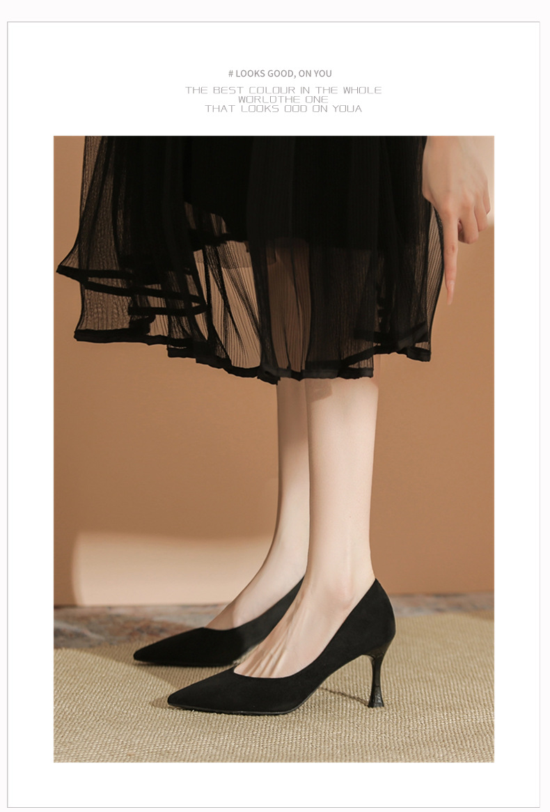 7333C 작은 V-입 스웨이드 스틸레토 힐 여성 신발 전문 신발 통근 프랑스 올 매치 우아한 스퀘어 힐 프리미엄 센스스토어 가기