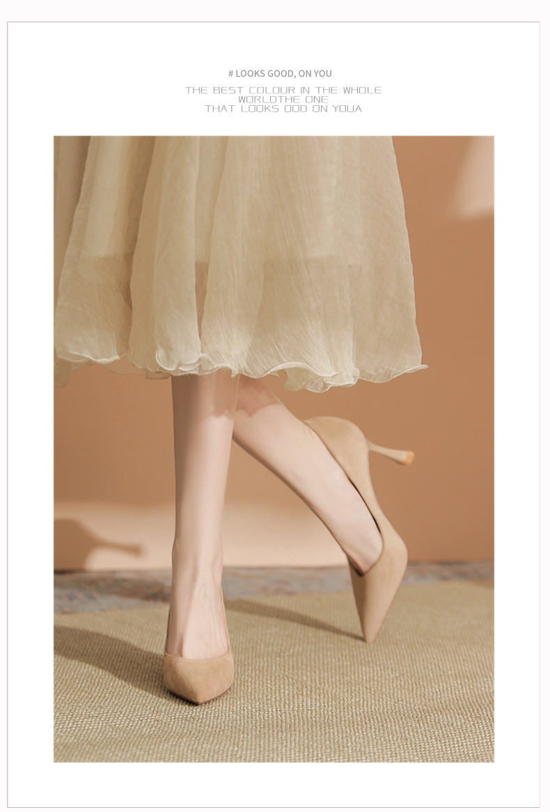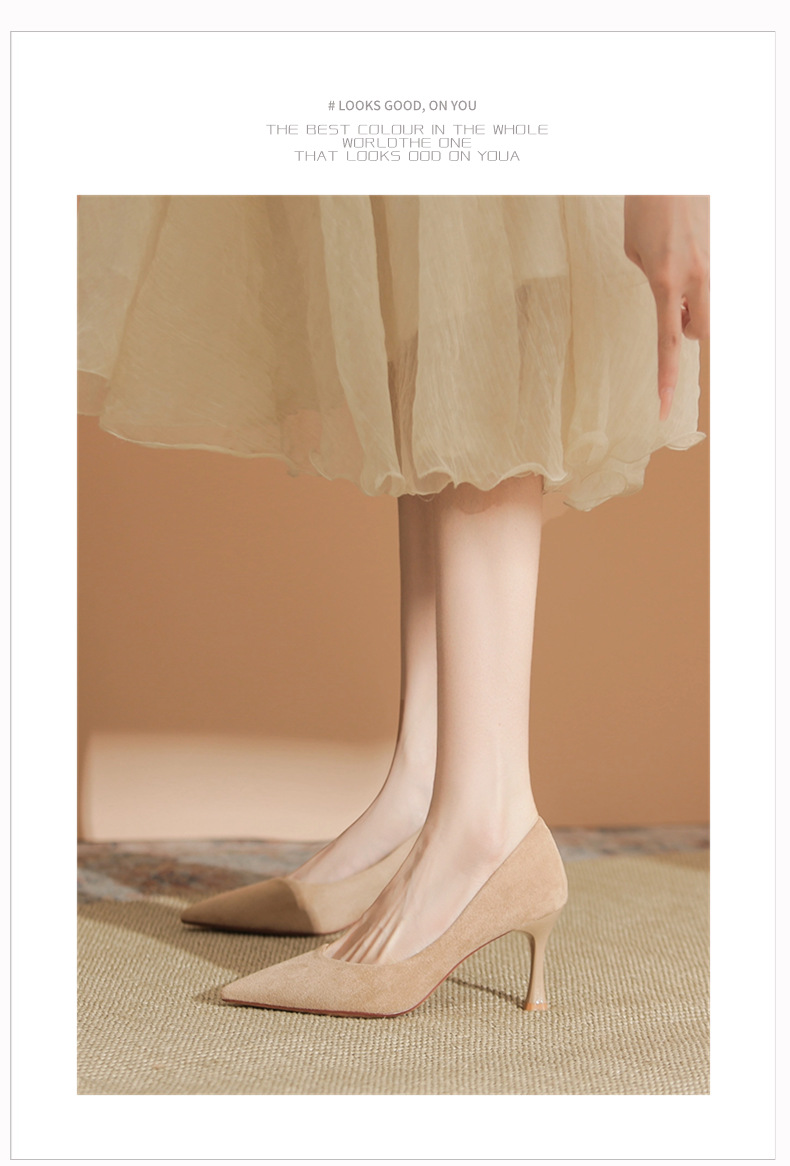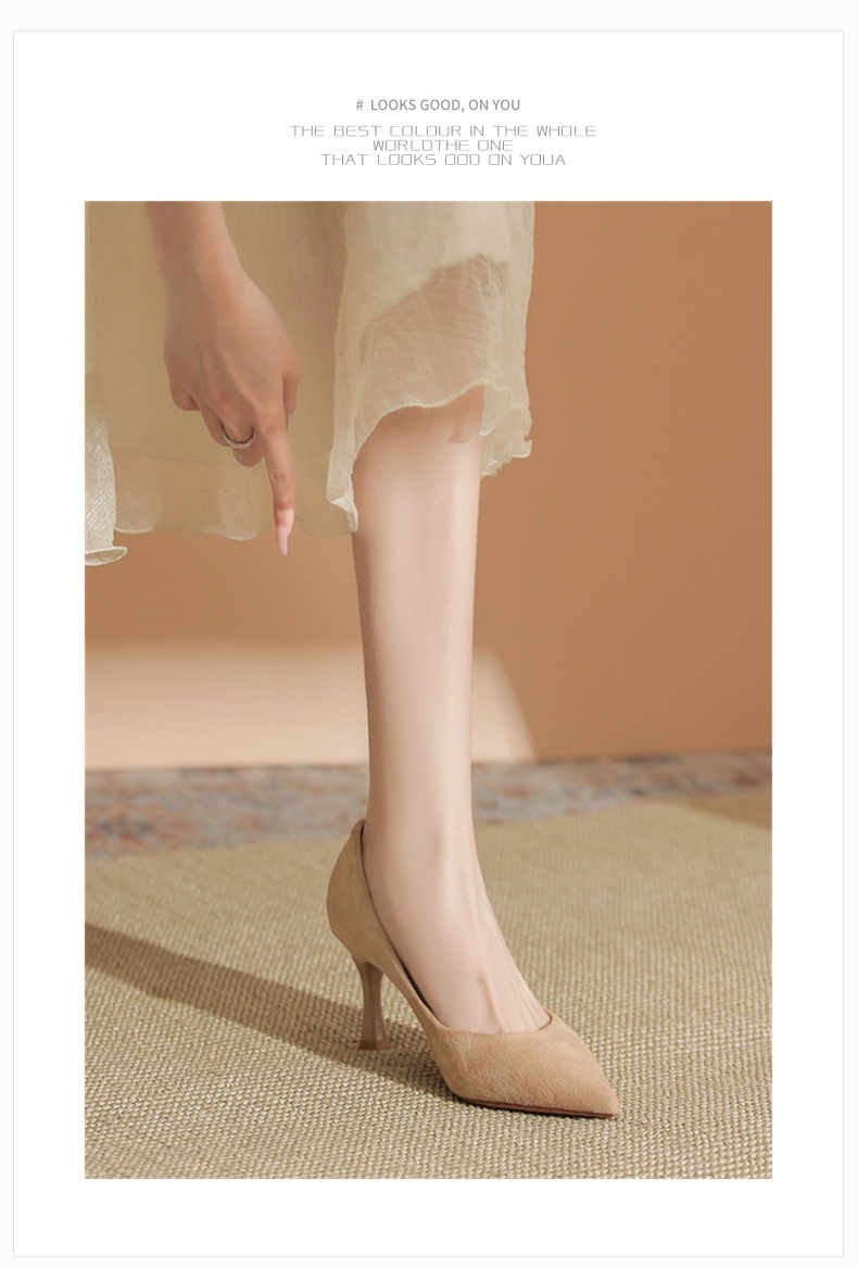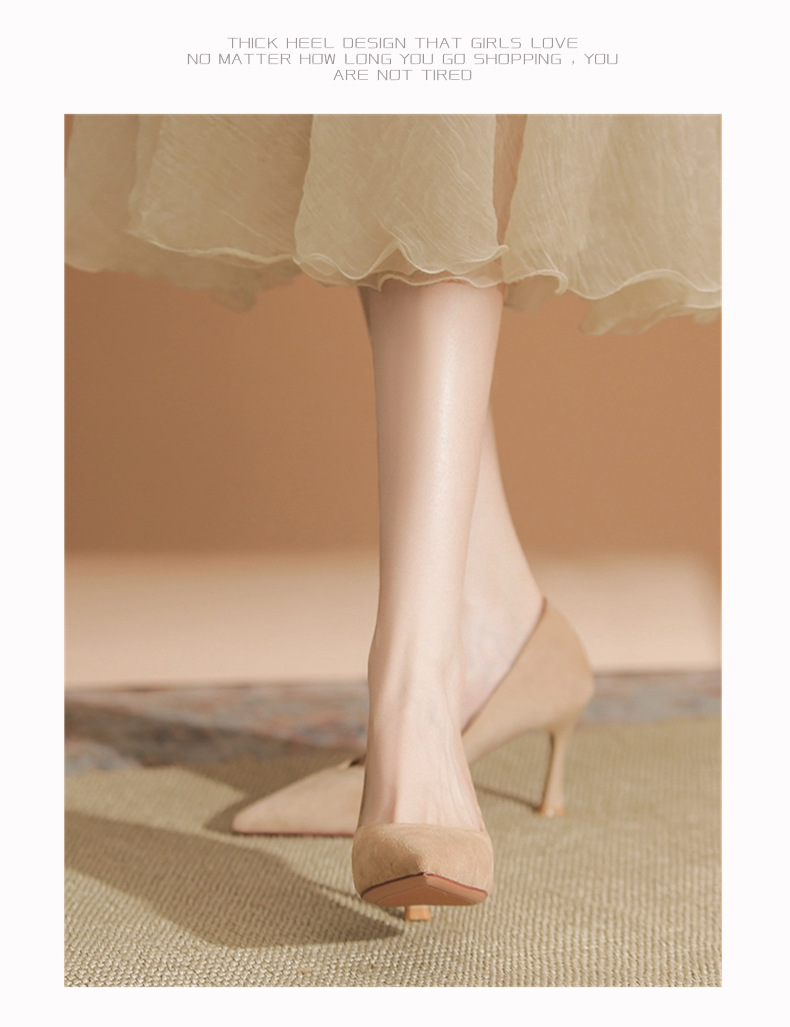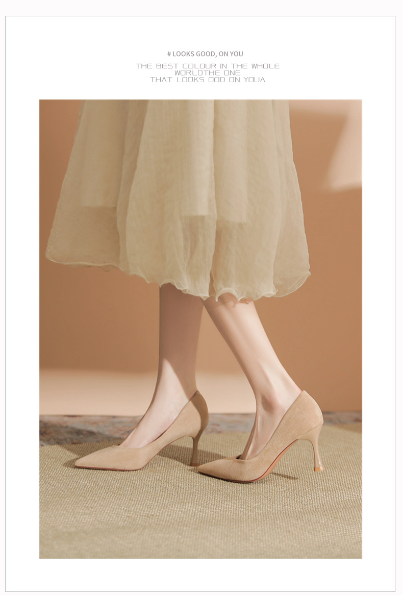 7333C 작은 V-입 스웨이드 스틸레토 힐 여성 신발 전문 신발 통근 프랑스 올 매치 우아한 스퀘어 힐 프리미엄 센스스토어 가기