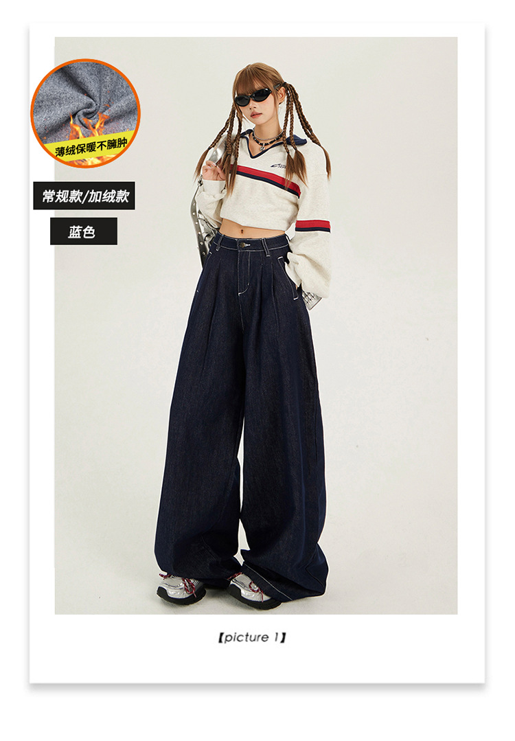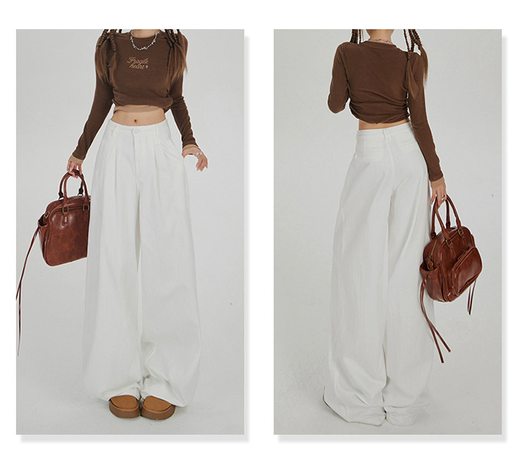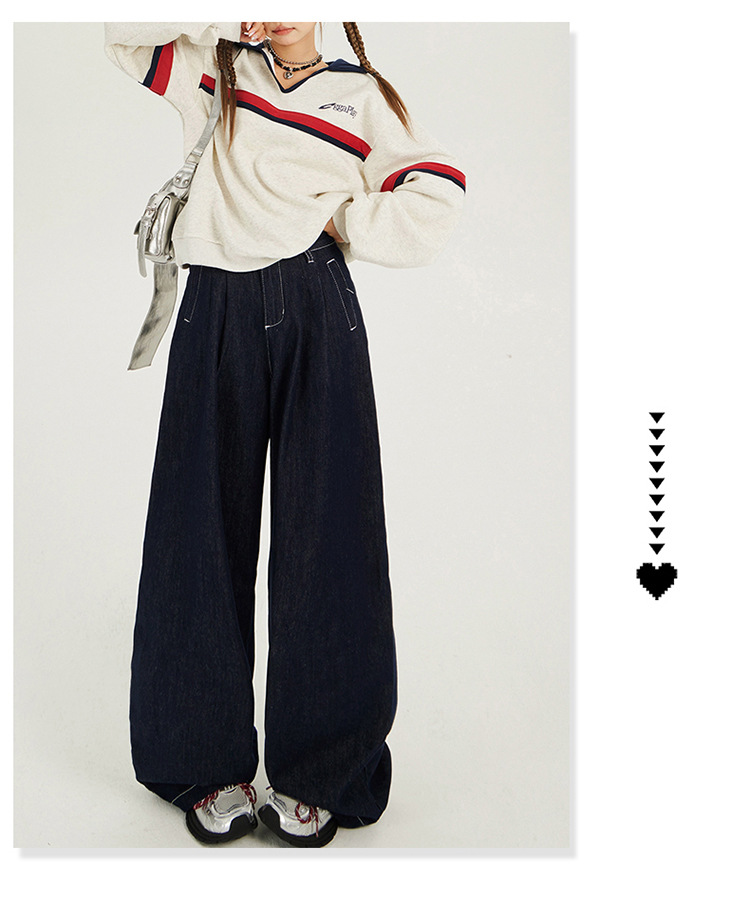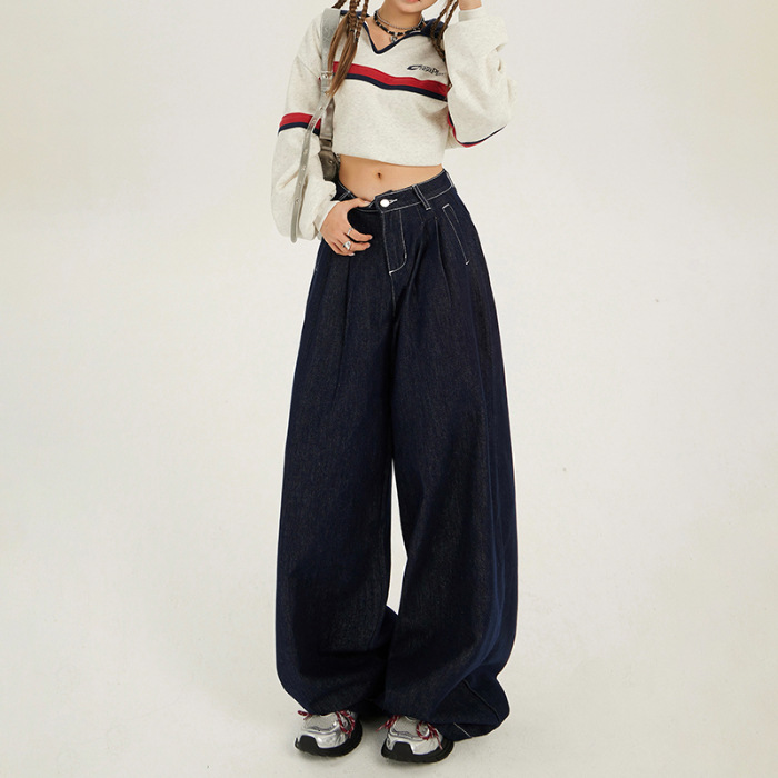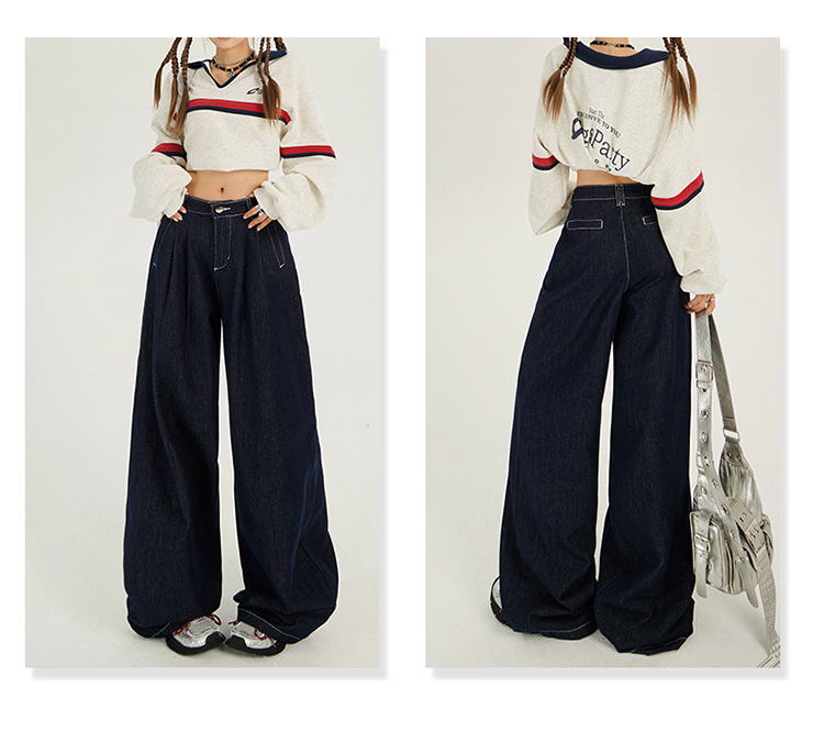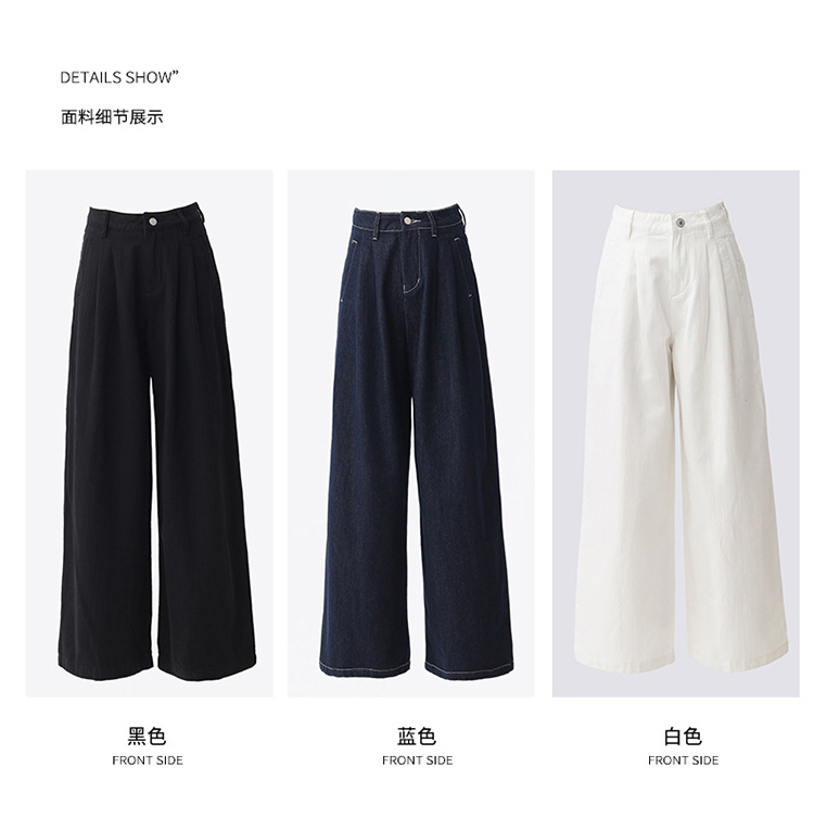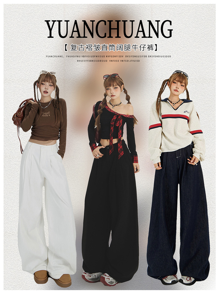 YC&3컬러 아메리칸 레트로 하이웨이스트 루즈핏 와이드 팬츠 플리츠 드레이프 스트레이트 데님 팬츠 여성&레귤러스토어 가기