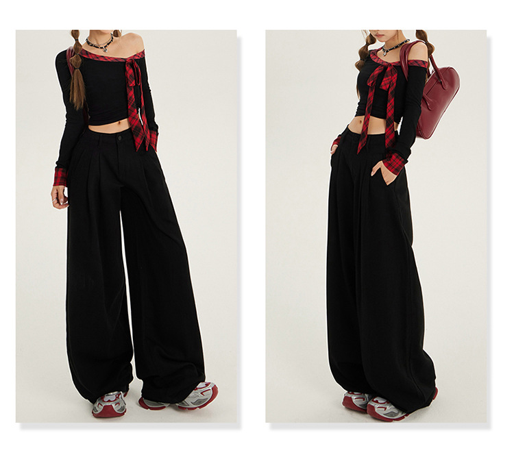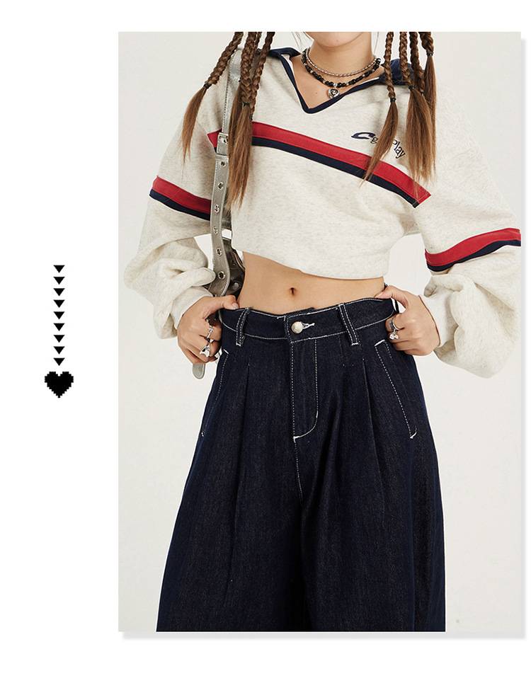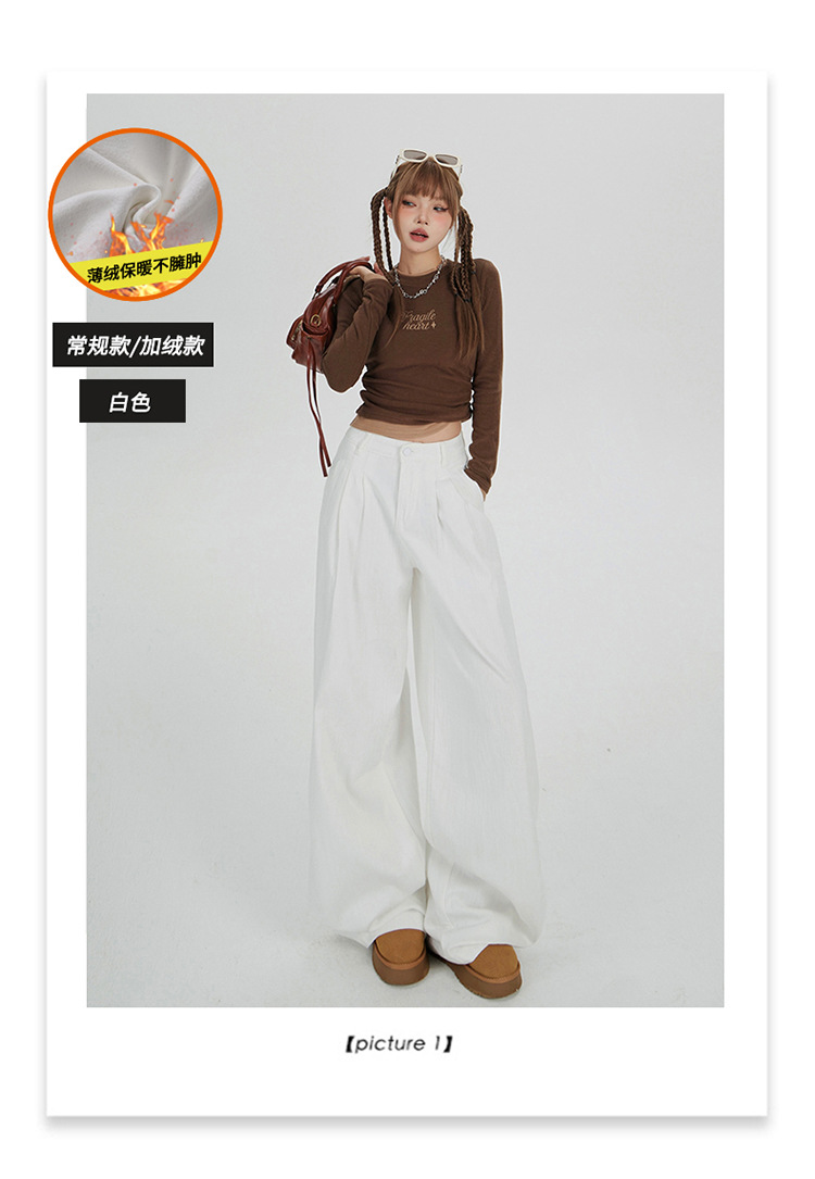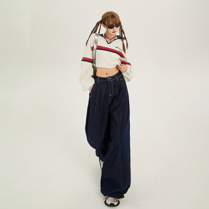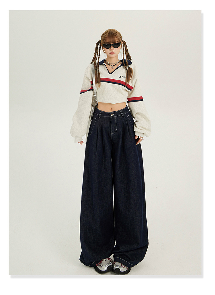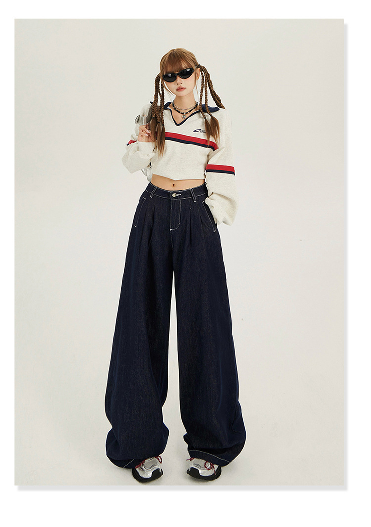 YC&3컬러 아메리칸 레트로 하이웨이스트 루즈핏 와이드 팬츠 플리츠 드레이프 스트레이트 데님 팬츠 여성&레귤러스토어 가기