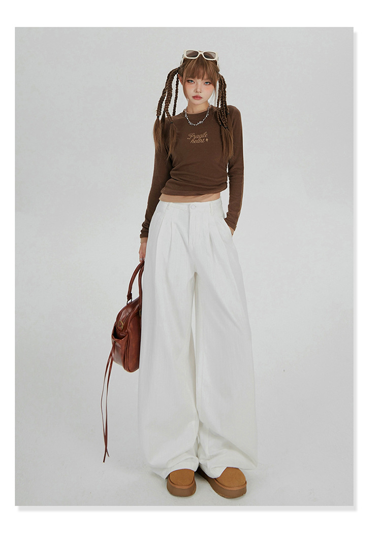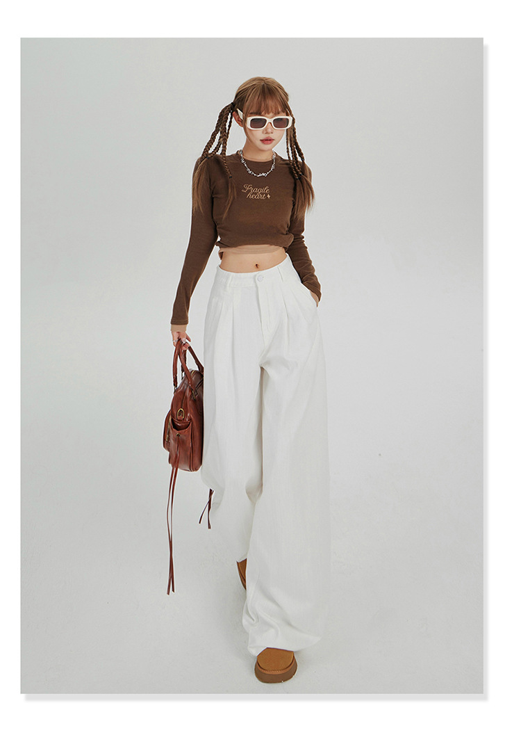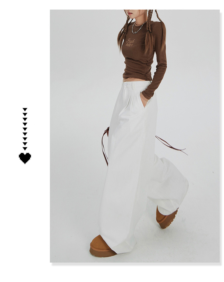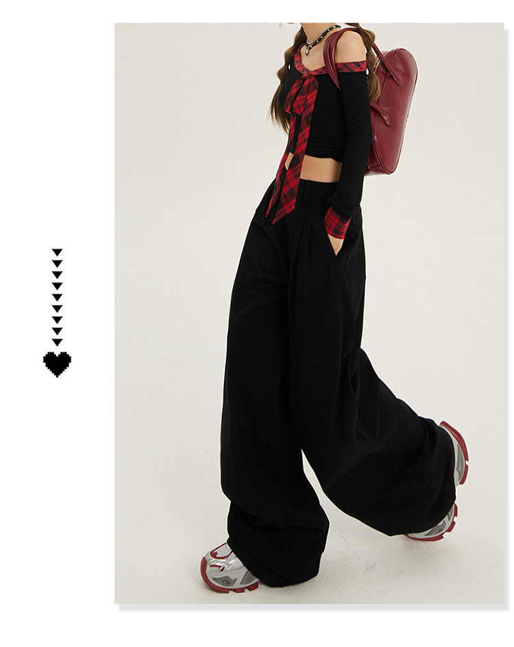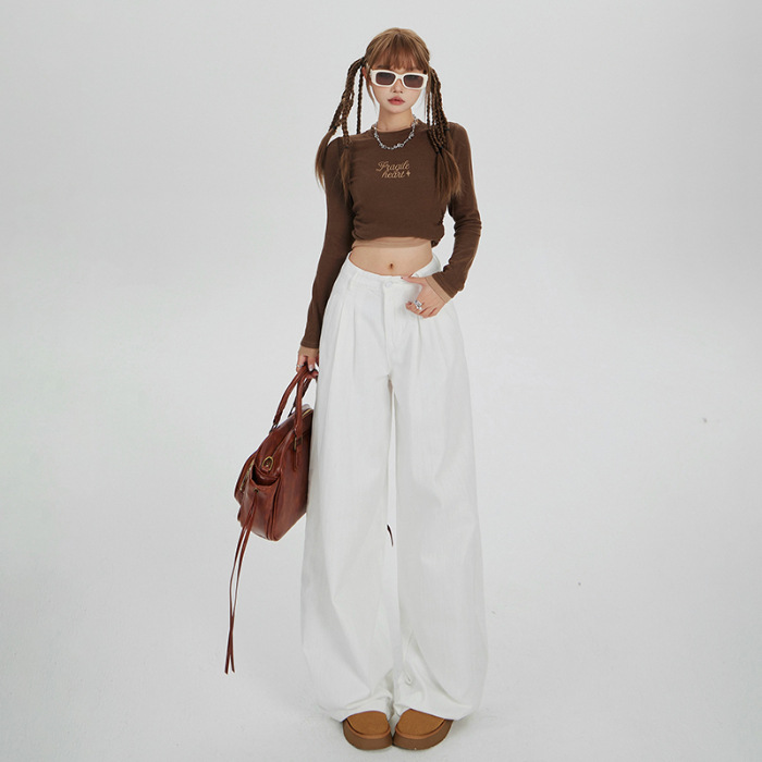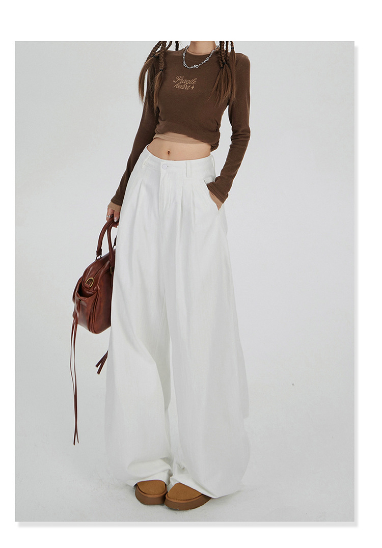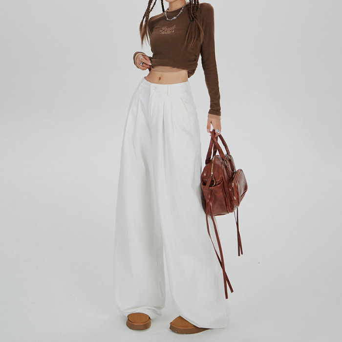 YC&3컬러 아메리칸 레트로 하이웨이스트 루즈핏 와이드 팬츠 플리츠 드레이프 스트레이트 데님 팬츠 여성&레귤러