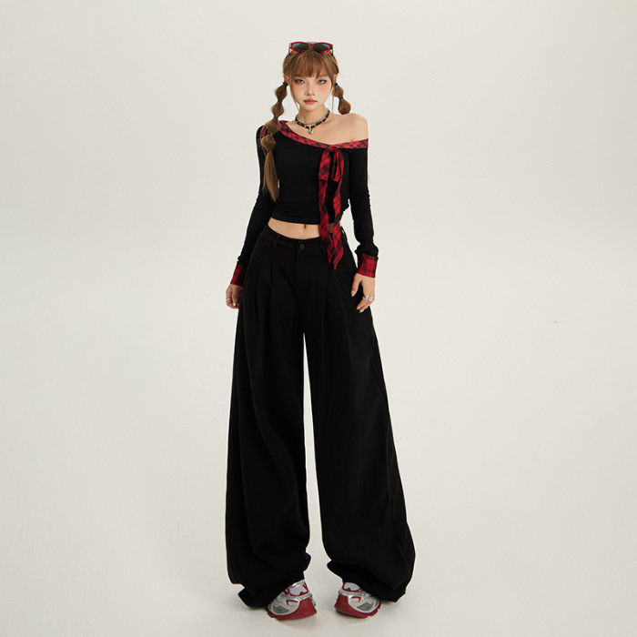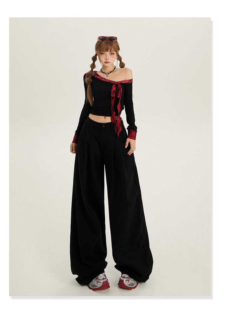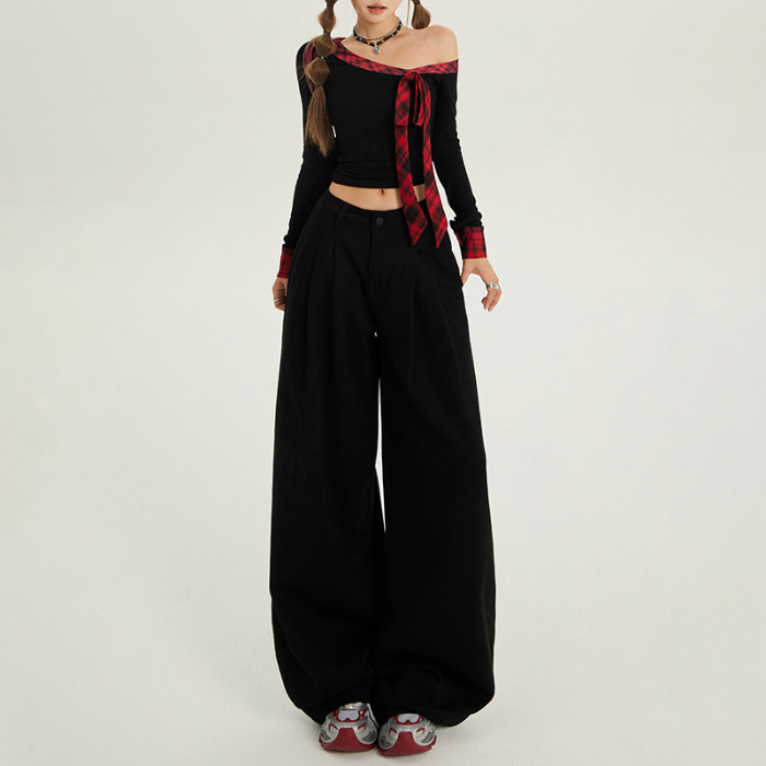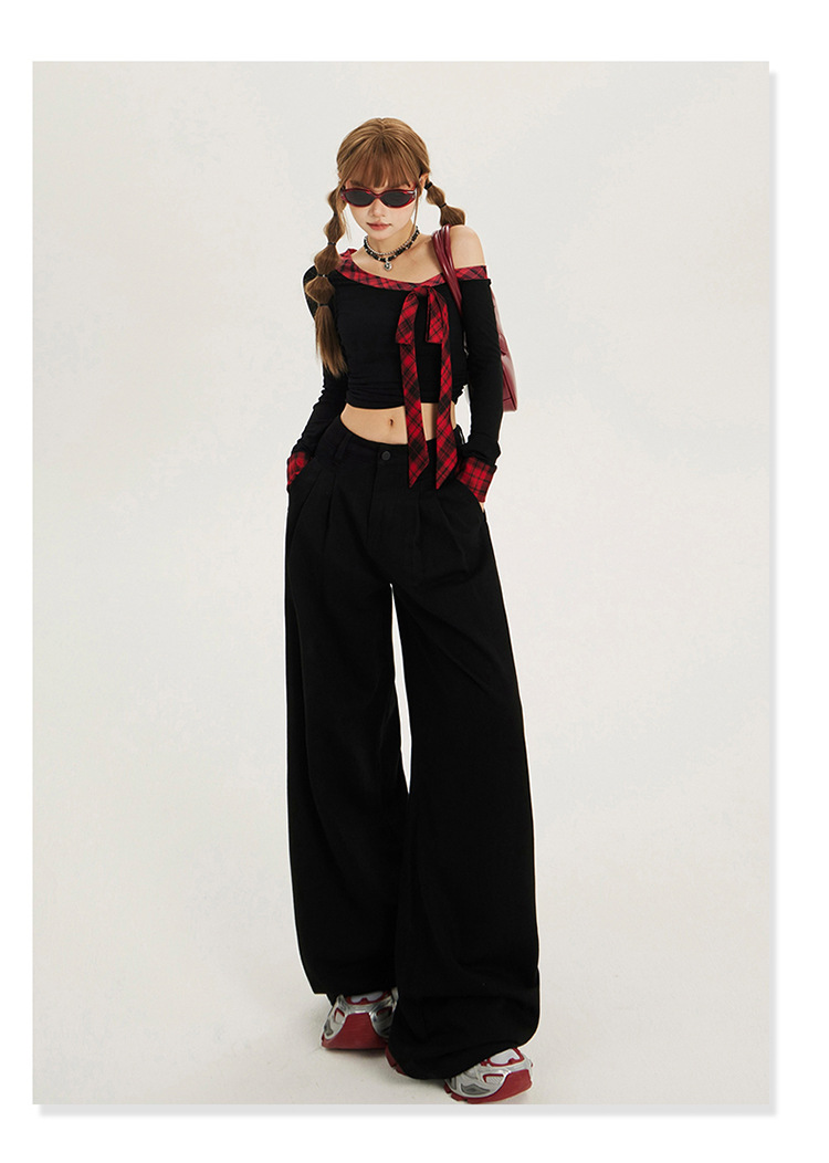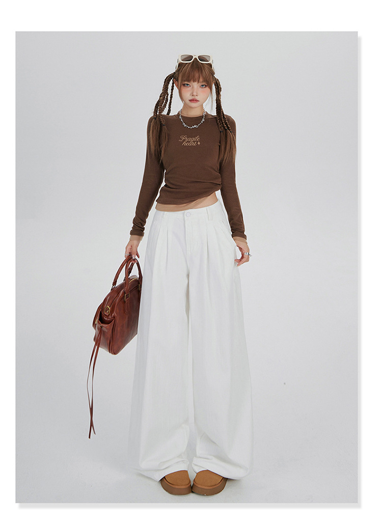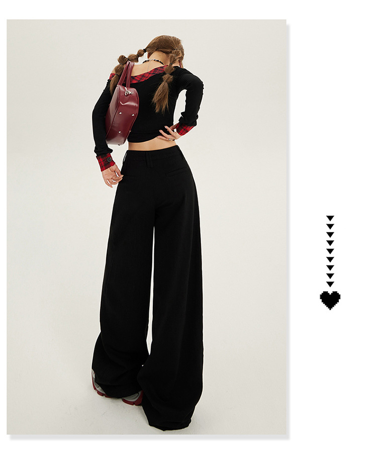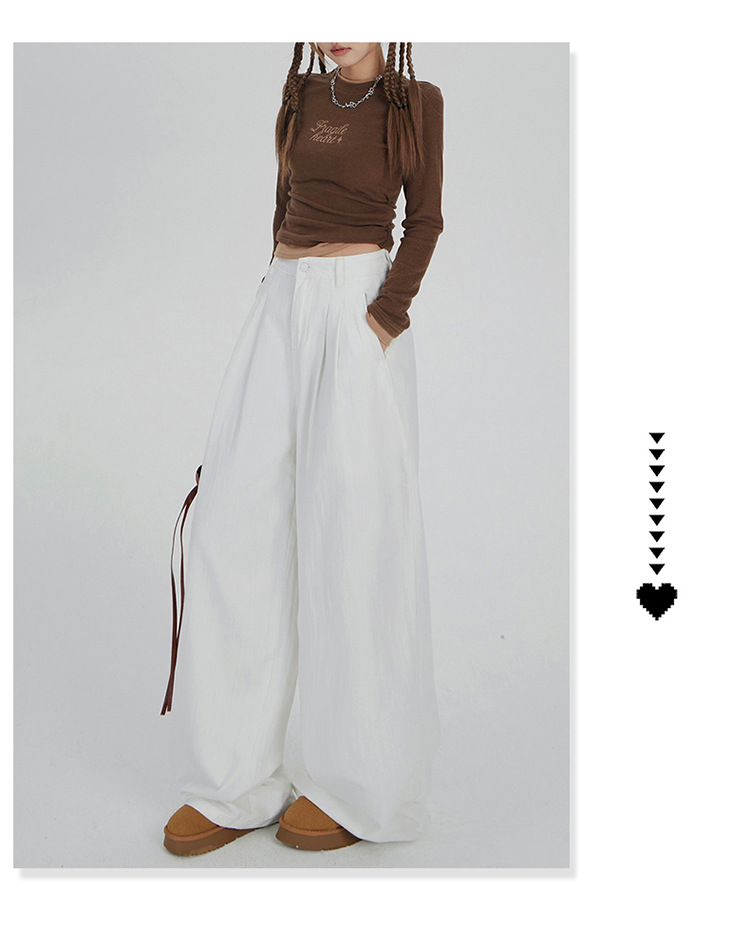 YC&3컬러 아메리칸 레트로 하이웨이스트 루즈핏 와이드 팬츠 플리츠 드레이프 스트레이트 데님 팬츠 여성&레귤러