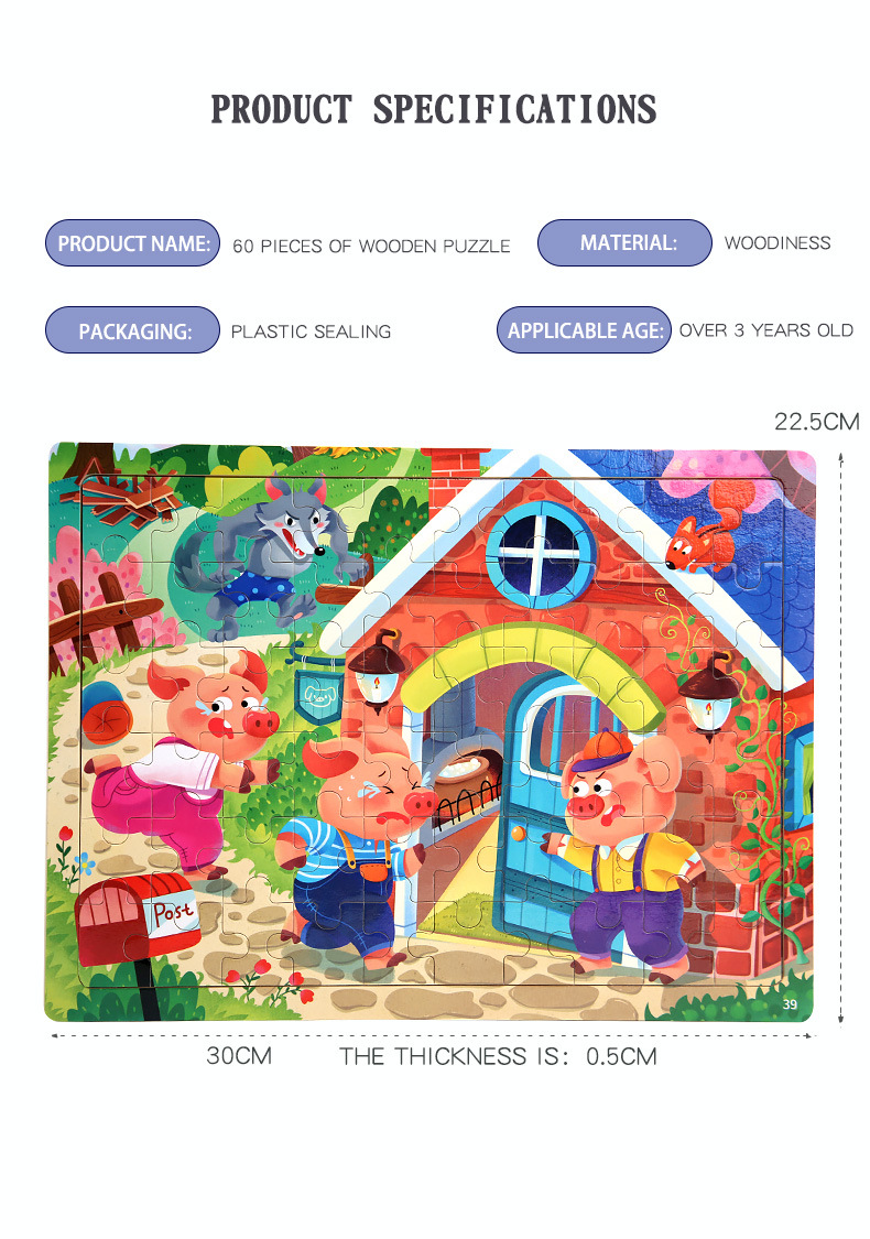 60片木制拼图12款 尺寸30*22.5*0.5cm 重量0.2kg 装箱数100套 装箱尺寸46.5*23.5*31.8cm