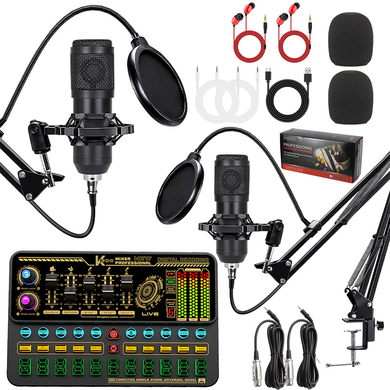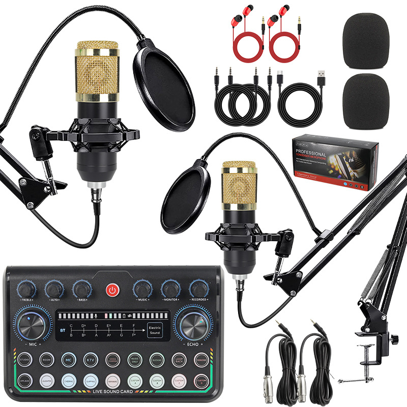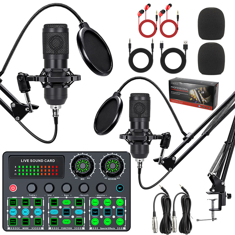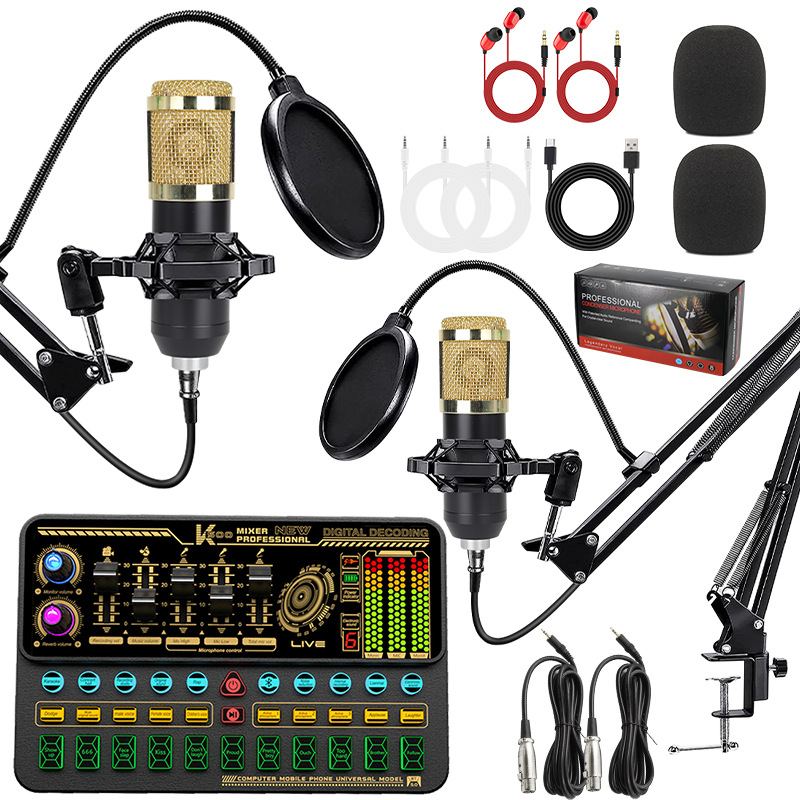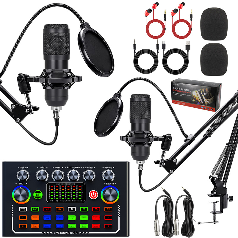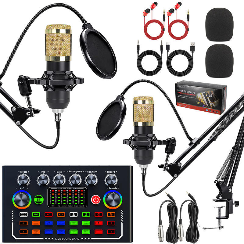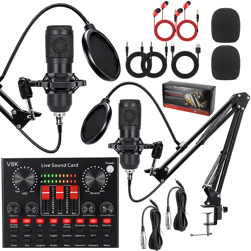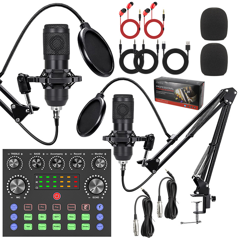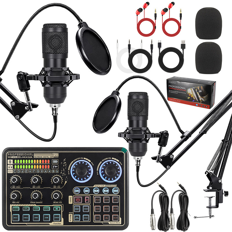 크로스보더 BM800 콘덴서 듀얼 마이크 v8s 마이크 영어 사운드 카드 장비 라이브 방송 풀세트 휴대폰 컴퓨터 녹음