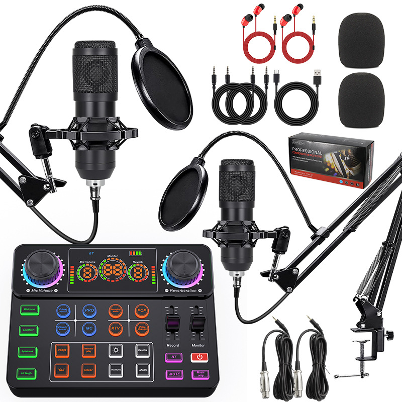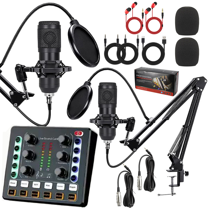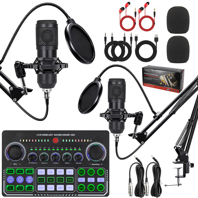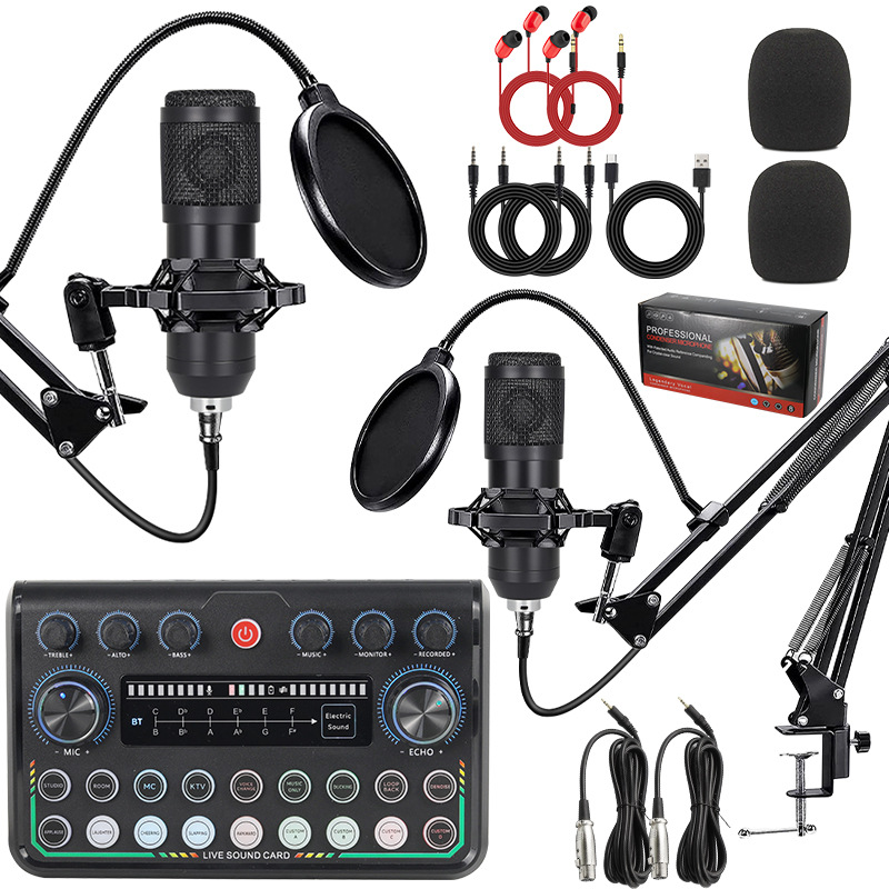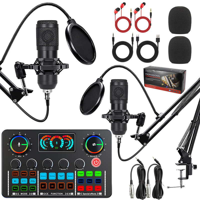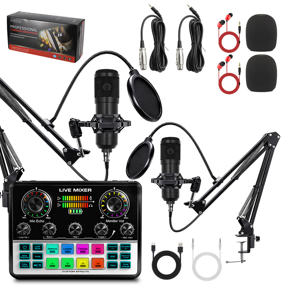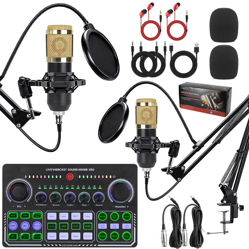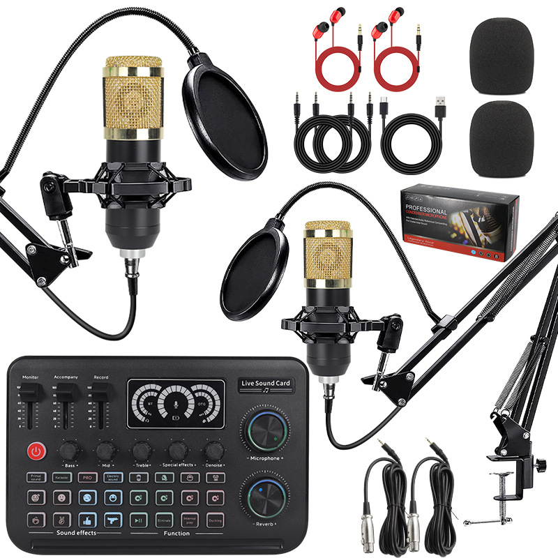크로스보더 BM800 콘덴서 듀얼 마이크 v8s 마이크 영어 사운드 카드 장비 라이브 방송 풀세트 휴대폰 컴퓨터 녹음
